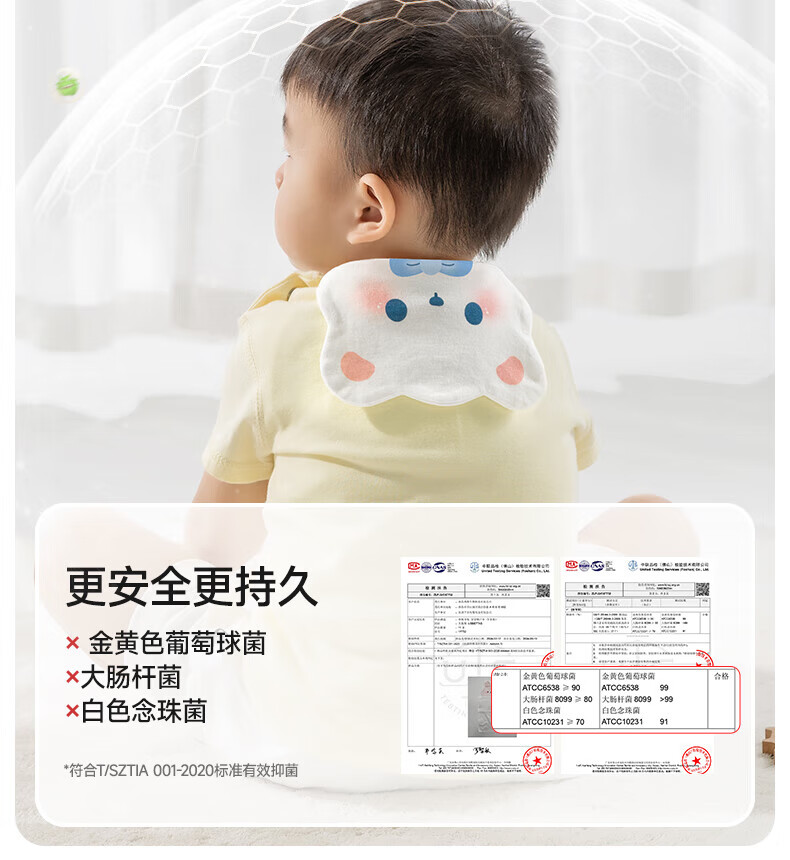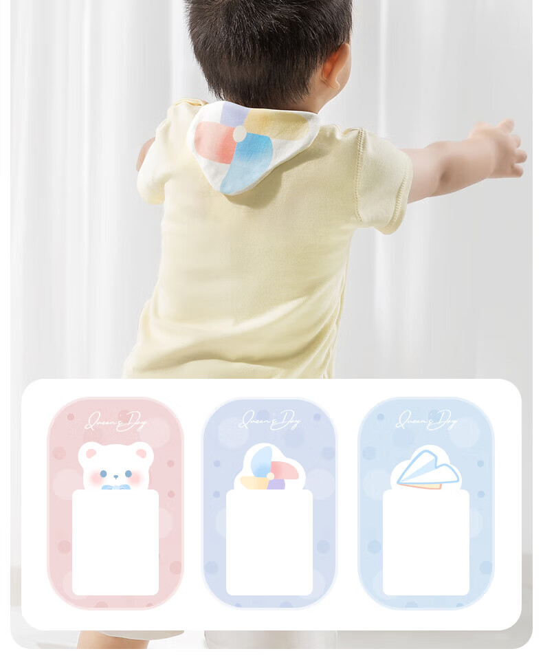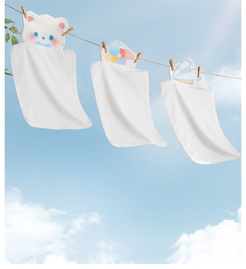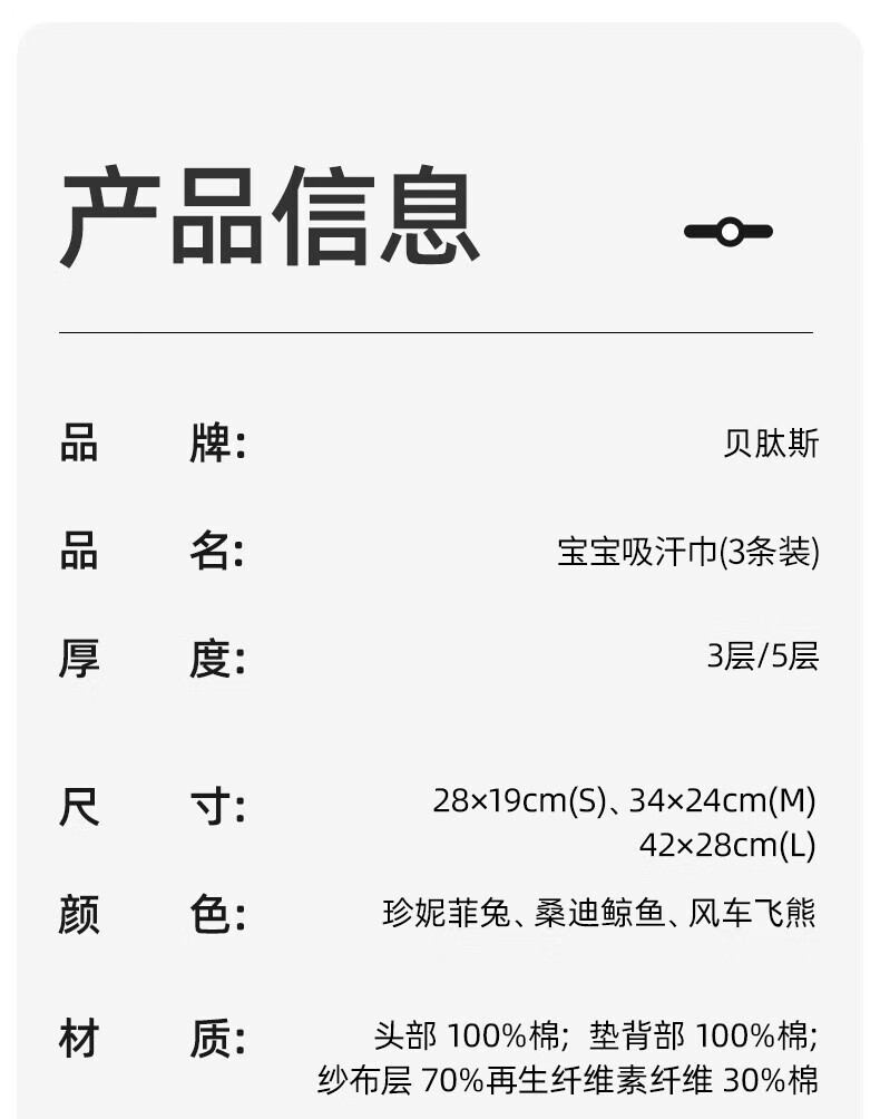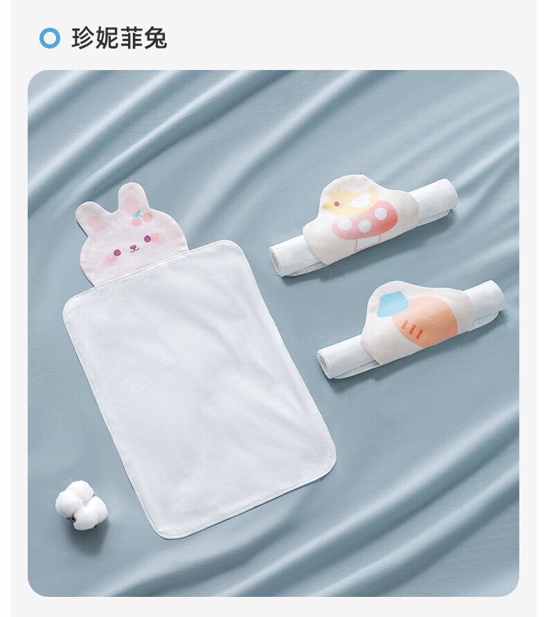 贝肽斯儿童隔汗巾薄款纯棉a类婴儿宝宝吸汗巾大号垫背幼儿园专用 珍妮菲兔【轻薄3层-导湿速干】 3条装 动物 S码【28*19cm】建议0-1岁