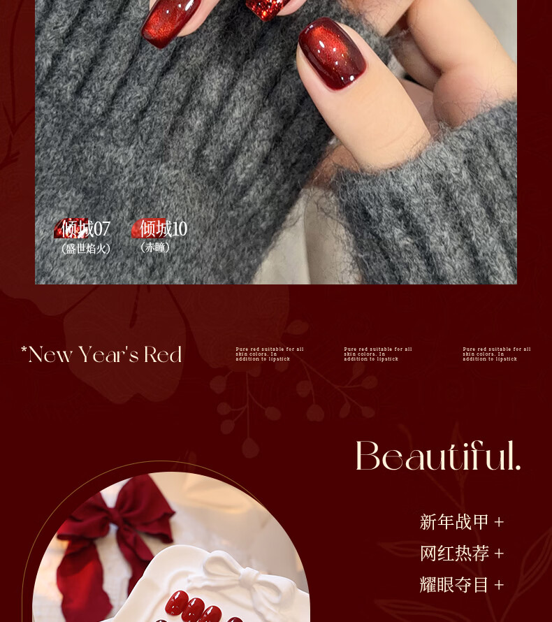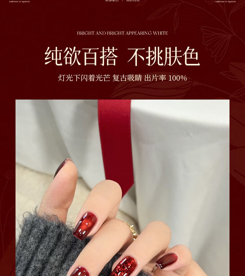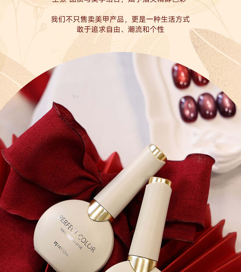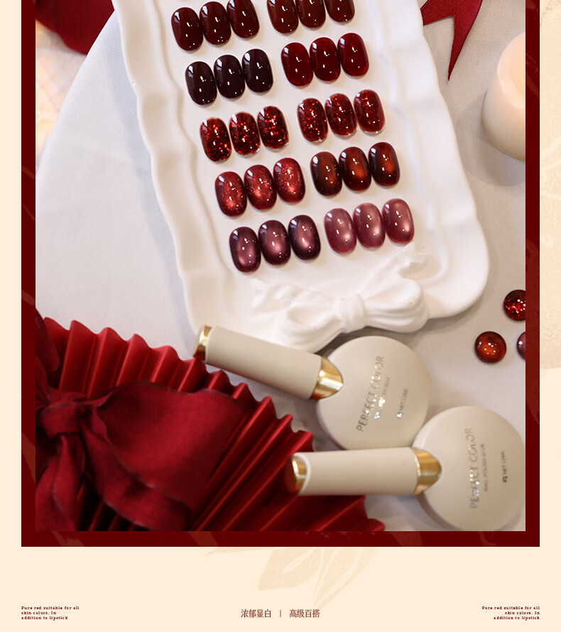 PERFECT COLOR【新年红】倾城系列红指甲油胶2025新款秋冬显白玻璃珠猫眼美甲 倾城12-煮红酒