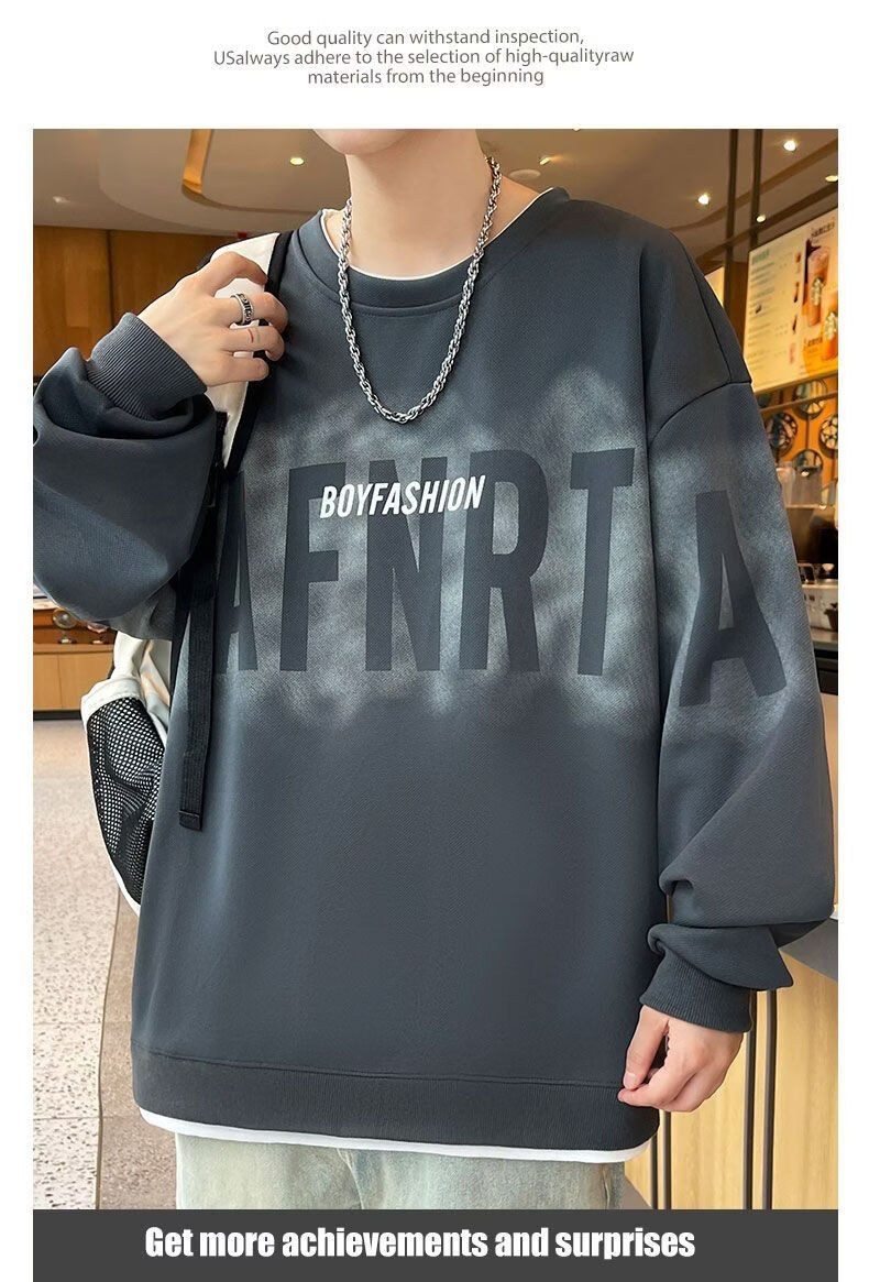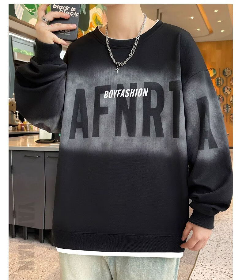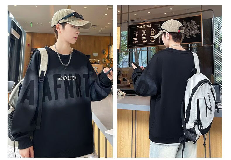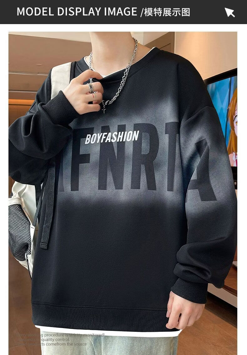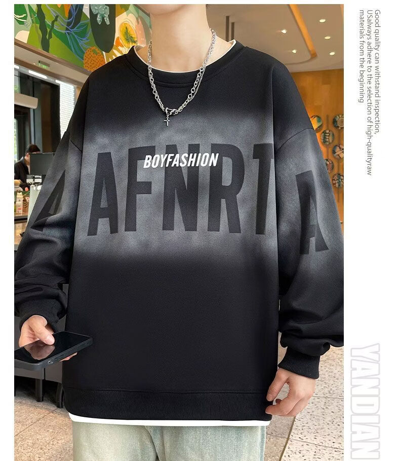 真维斯(Jeanswest)2026春季新款美式圆领长袖卫衣潮牌宽松百搭休闲打底长袖上衣男 黑色 M