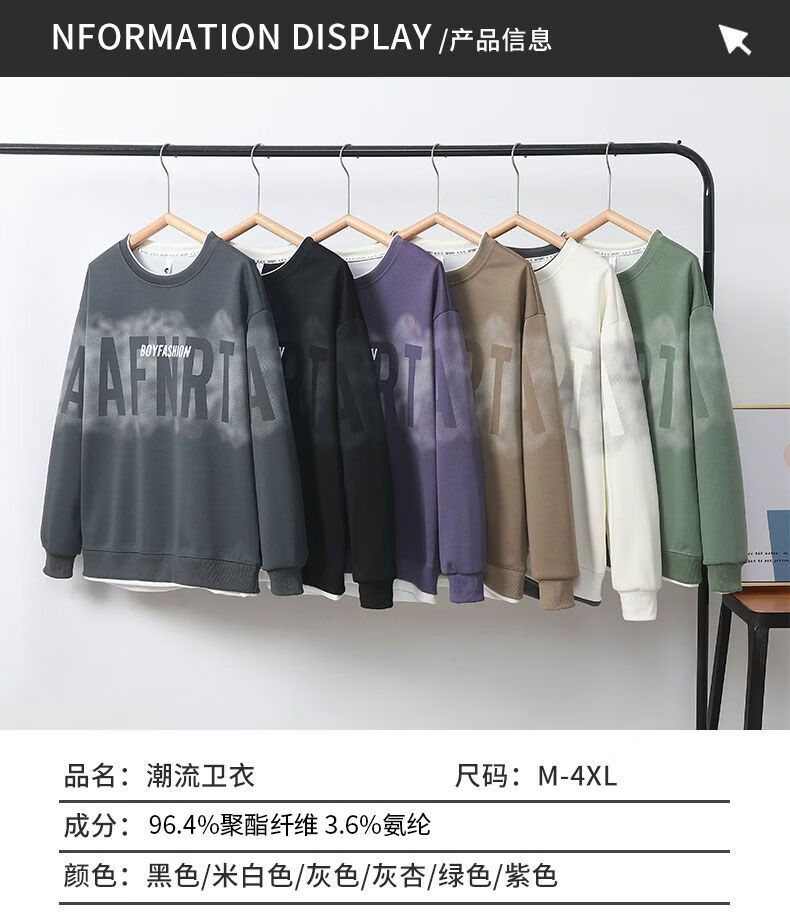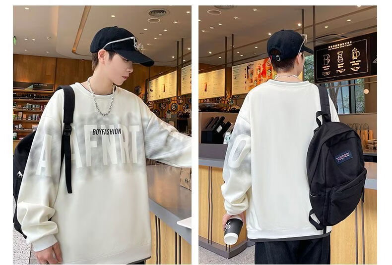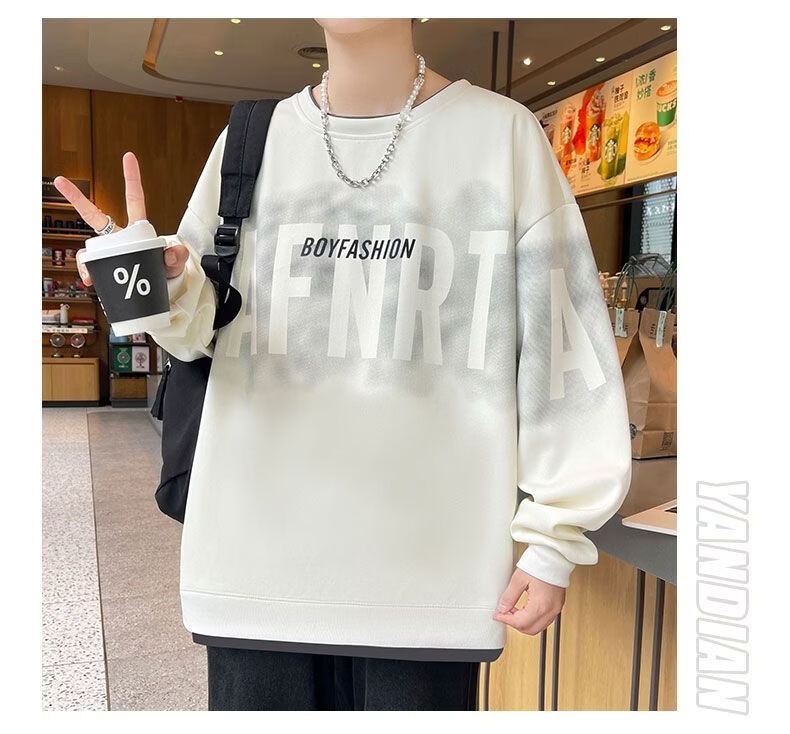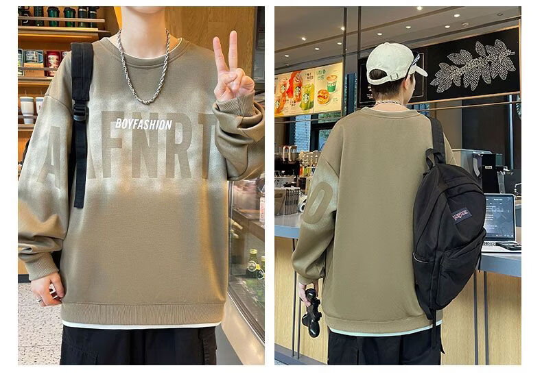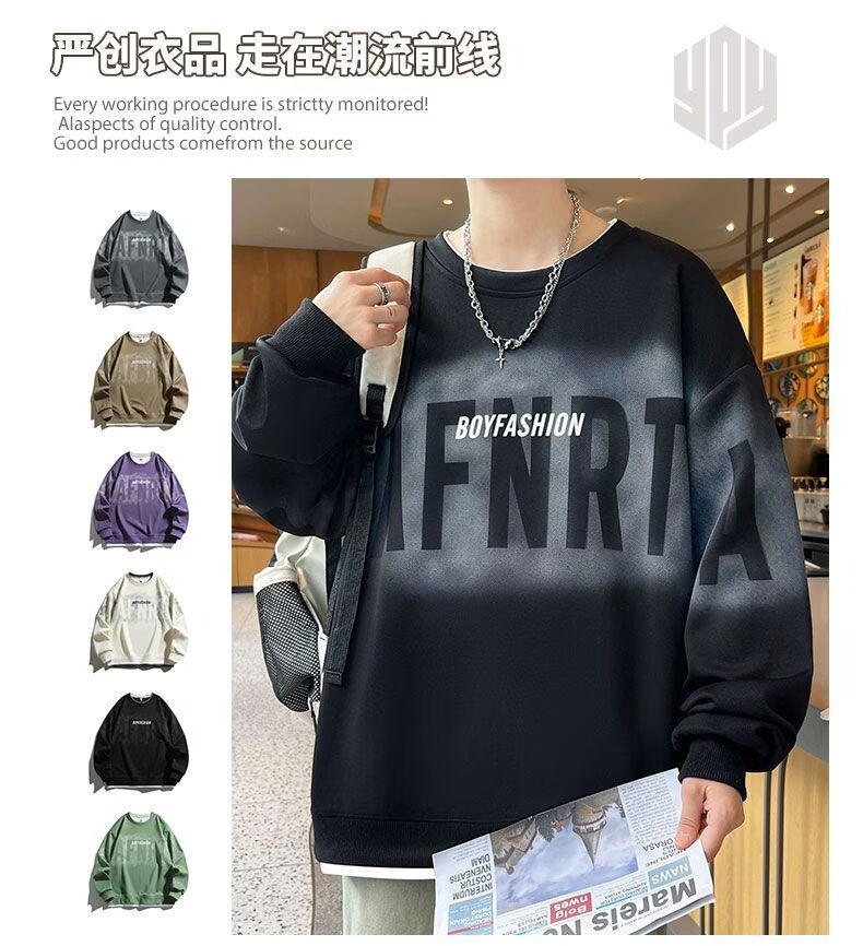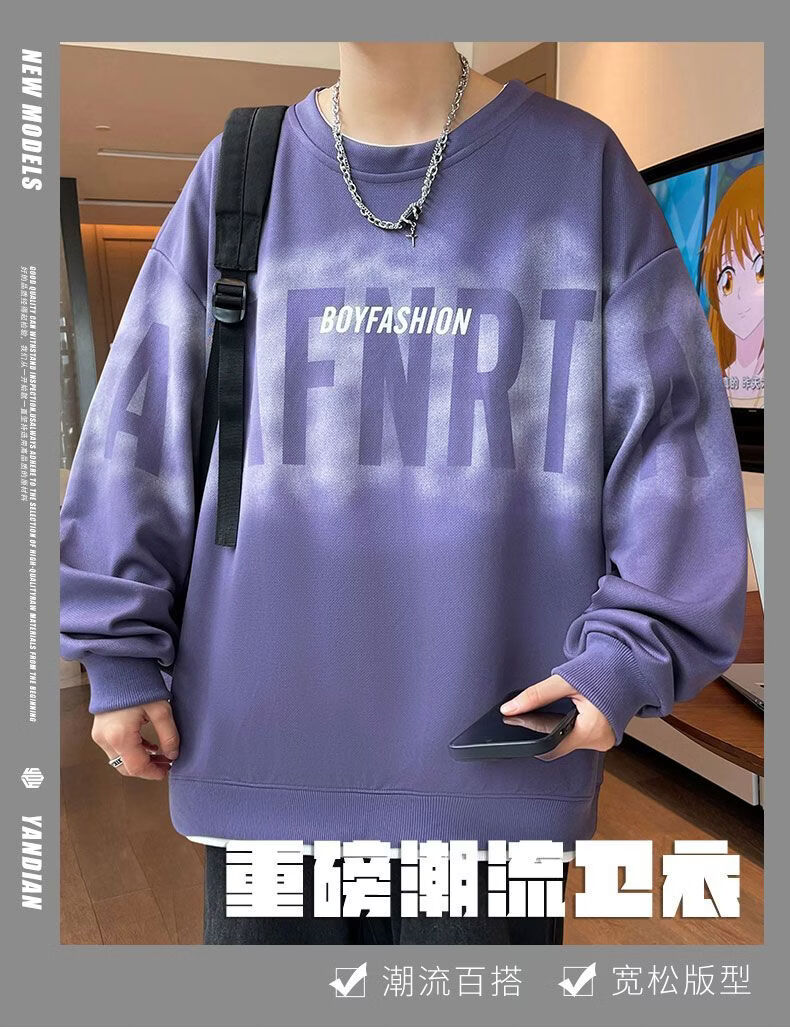 真维斯(Jeanswest)2026春季新款美式圆领长袖卫衣潮牌宽松百搭休闲打底长袖上衣男 黑色 M
