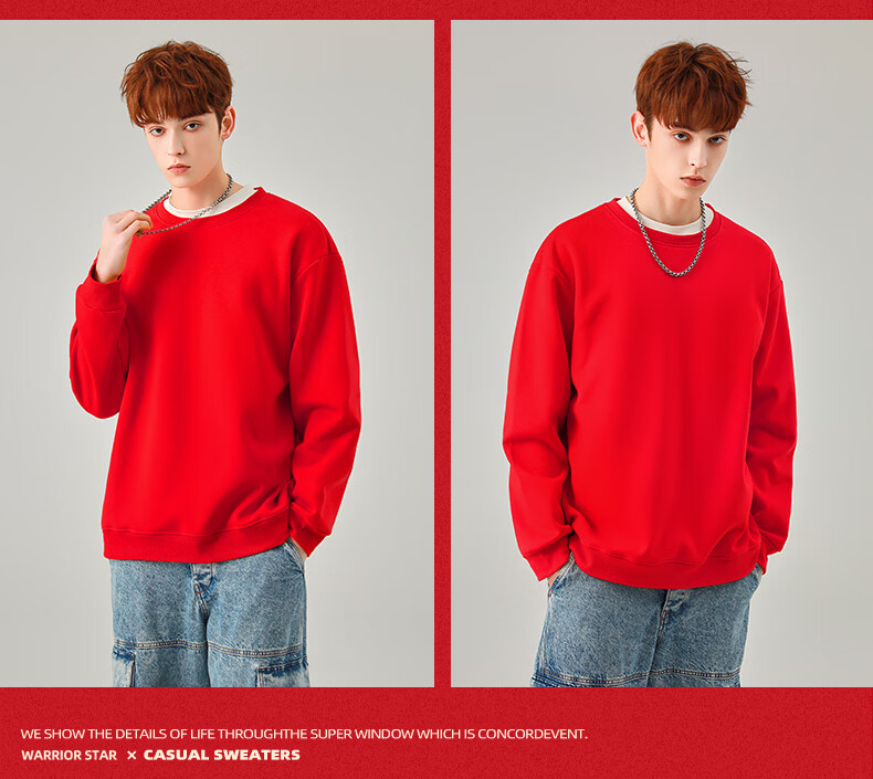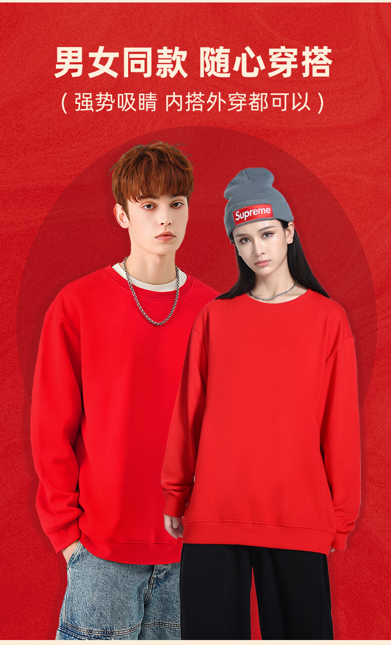 真维斯(Jeanswest)酒红色圆领卫衣男女款上衣2026马年本命年加绒保暖新年情侣款外套 红色 幸运多彩马 L