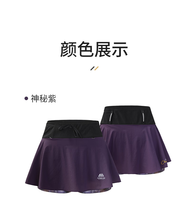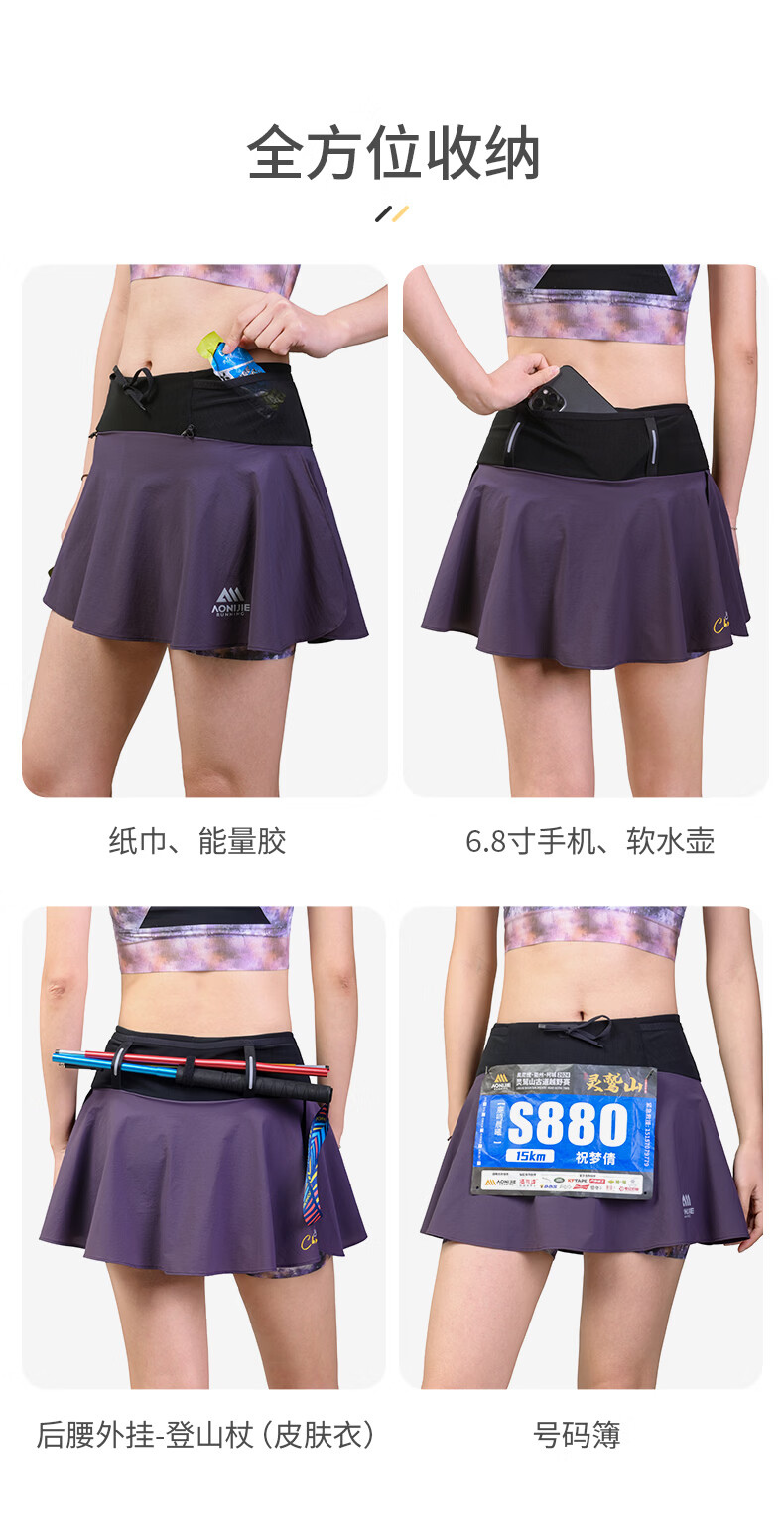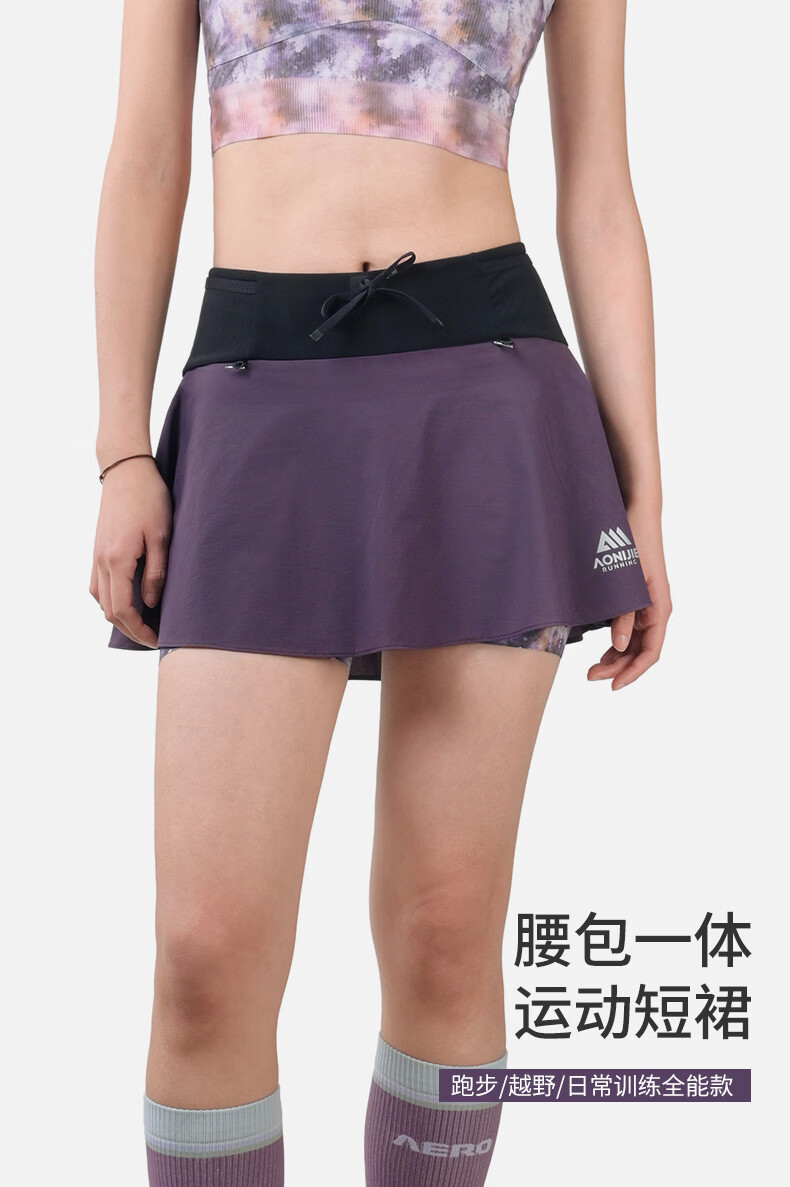 奥尼捷运动短裙女春夏腰包一体速干透气半身裙马拉松越野跑步专用 神秘紫 M