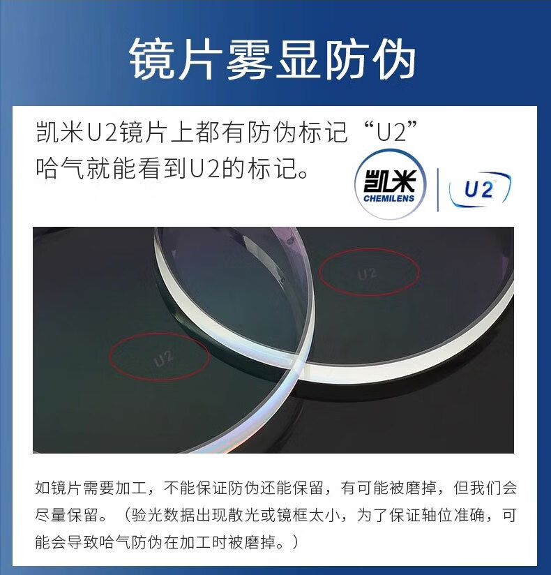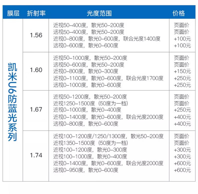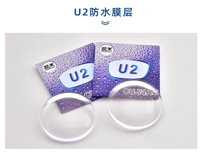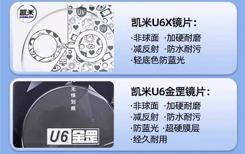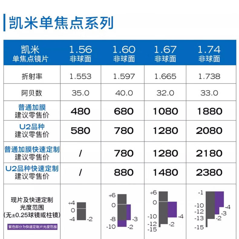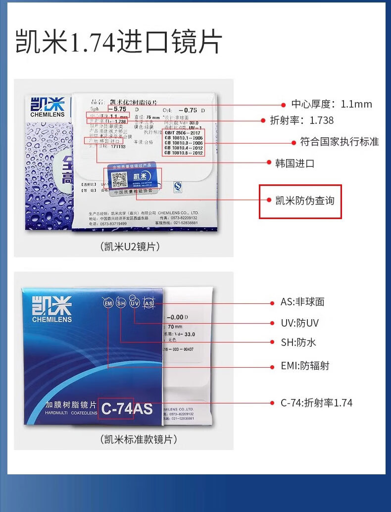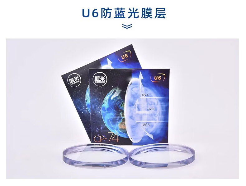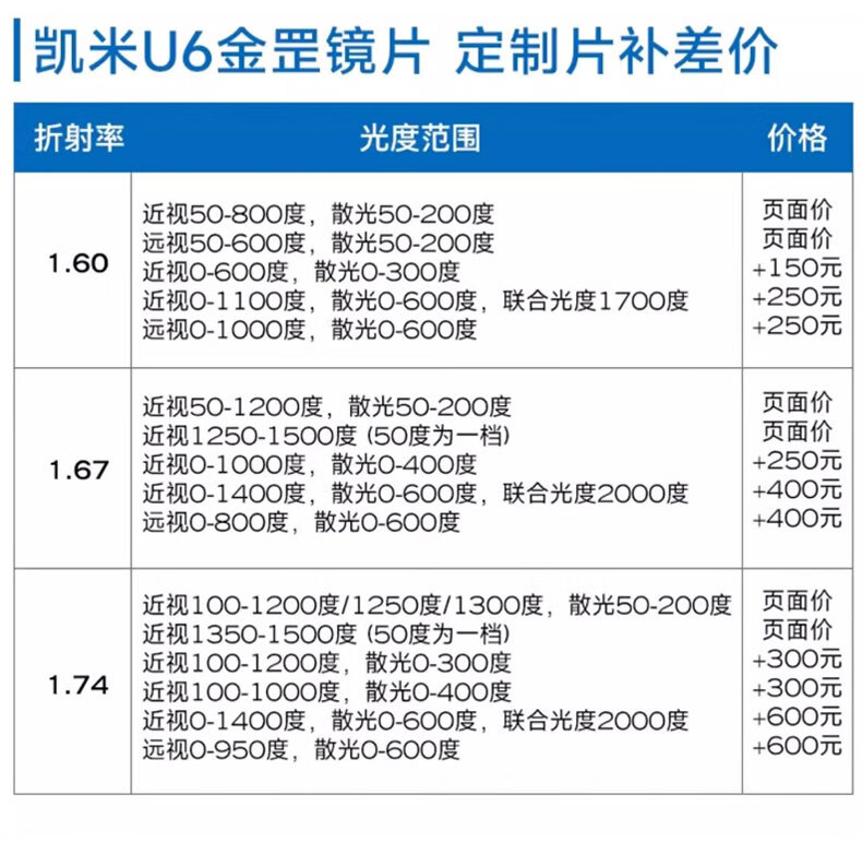 凯米韩国镜片U6X防蓝光金罡1.74超薄U2官方旗舰高度近视1.67配镜 FB2060C4黑银 配1.74凯米U2高清镜片 600度以上