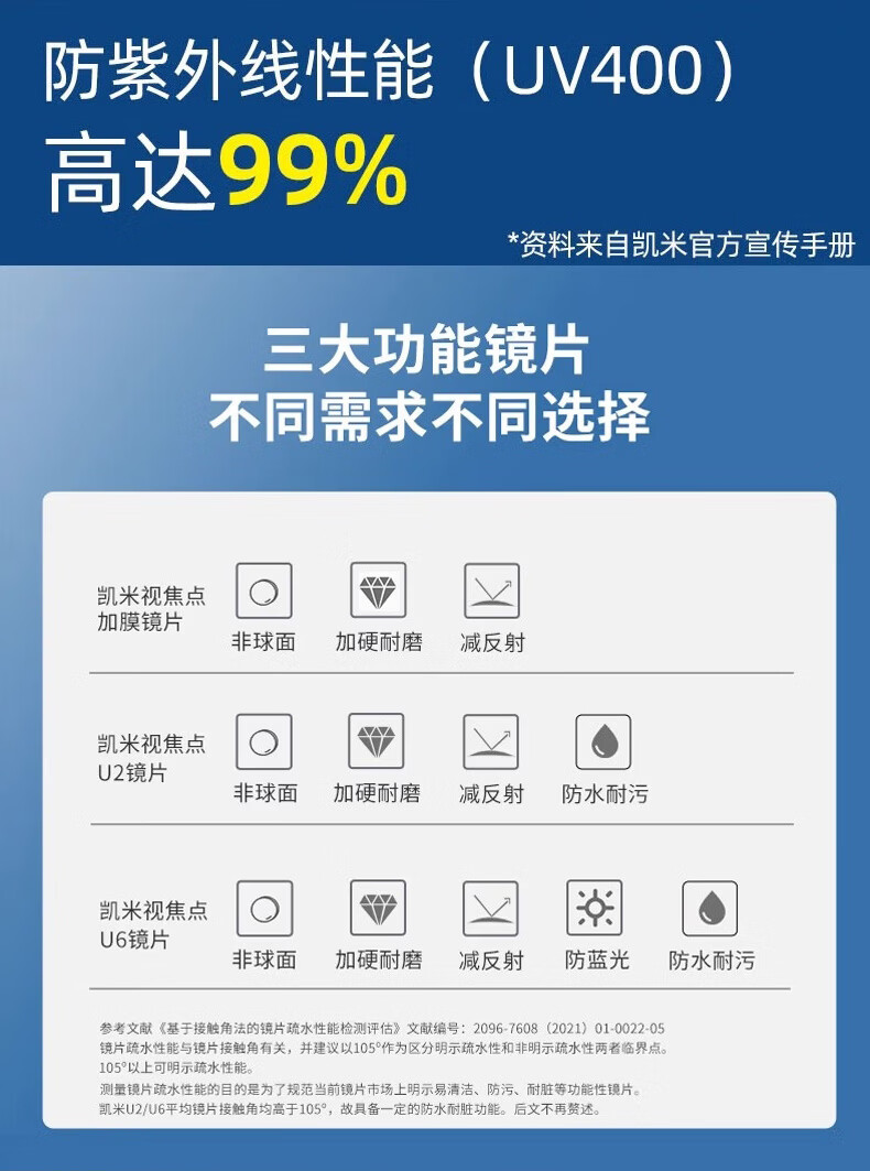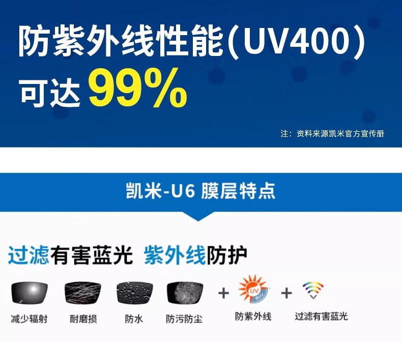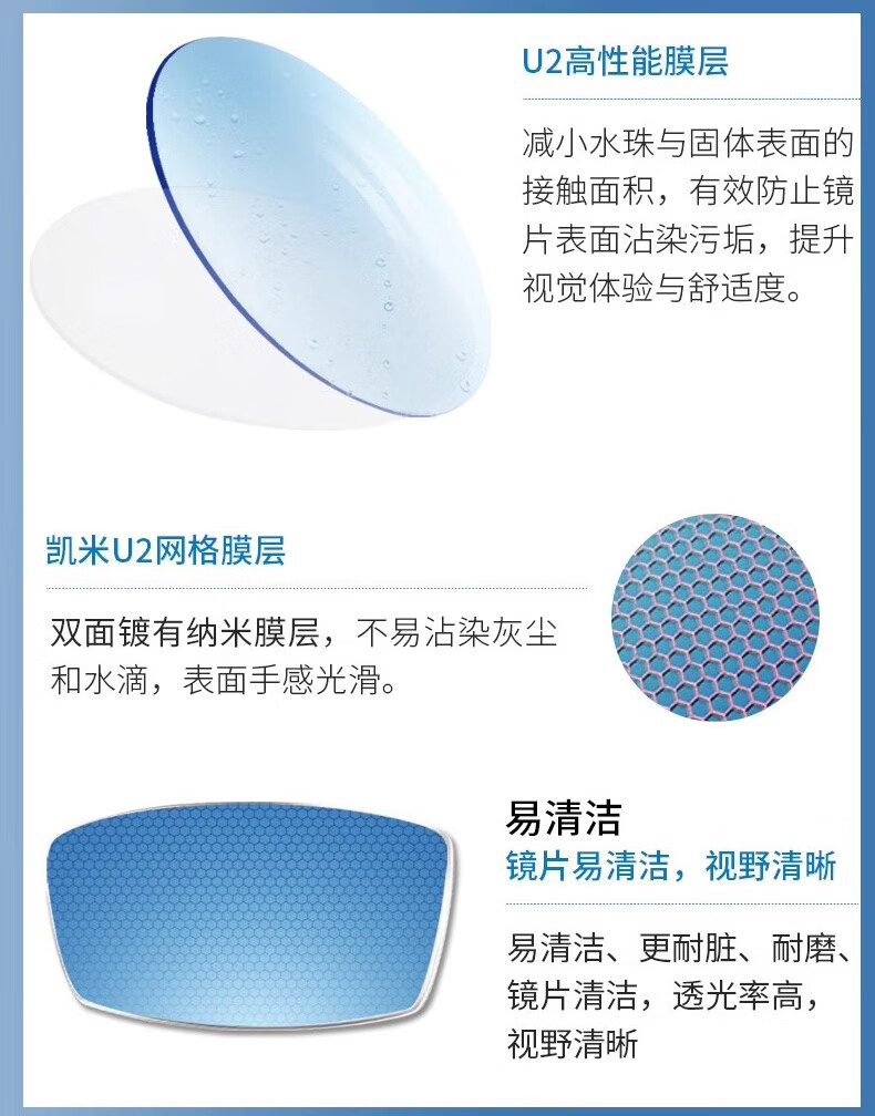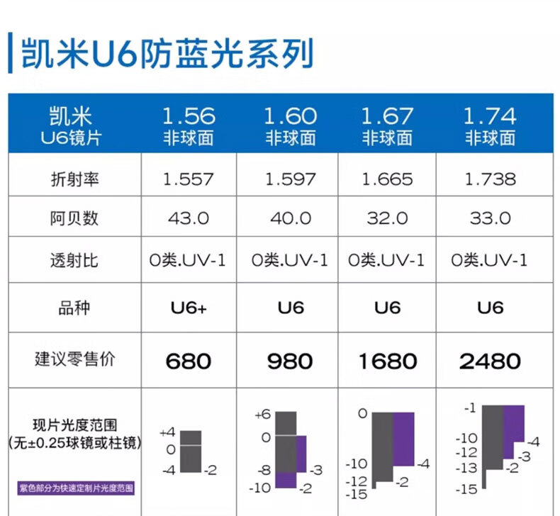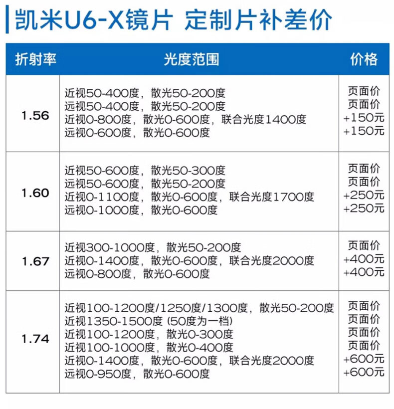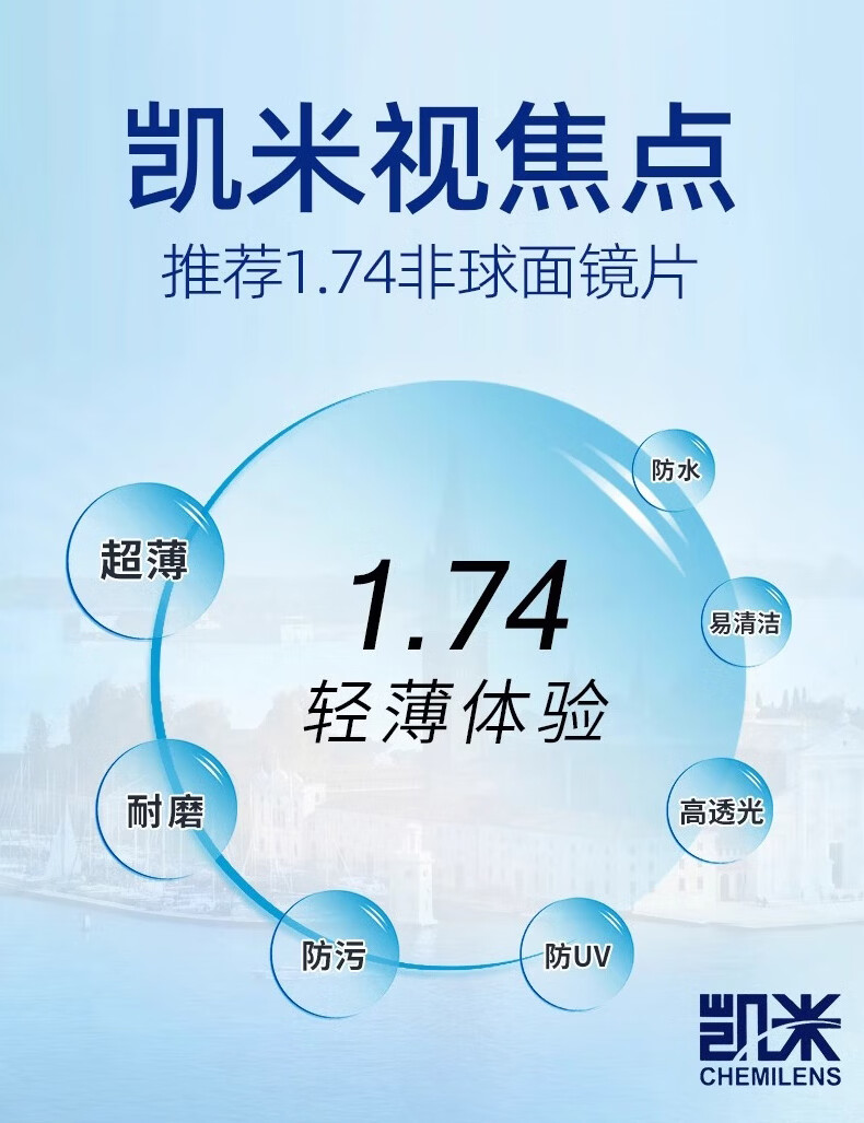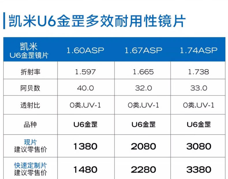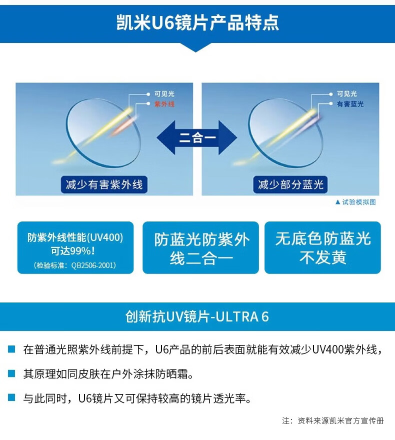 凯米韩国镜片U6X防蓝光金罡1.74超薄U2官方旗舰高度近视1.67配镜 FB2060C4黑银 配1.74凯米U2高清镜片 600度以上