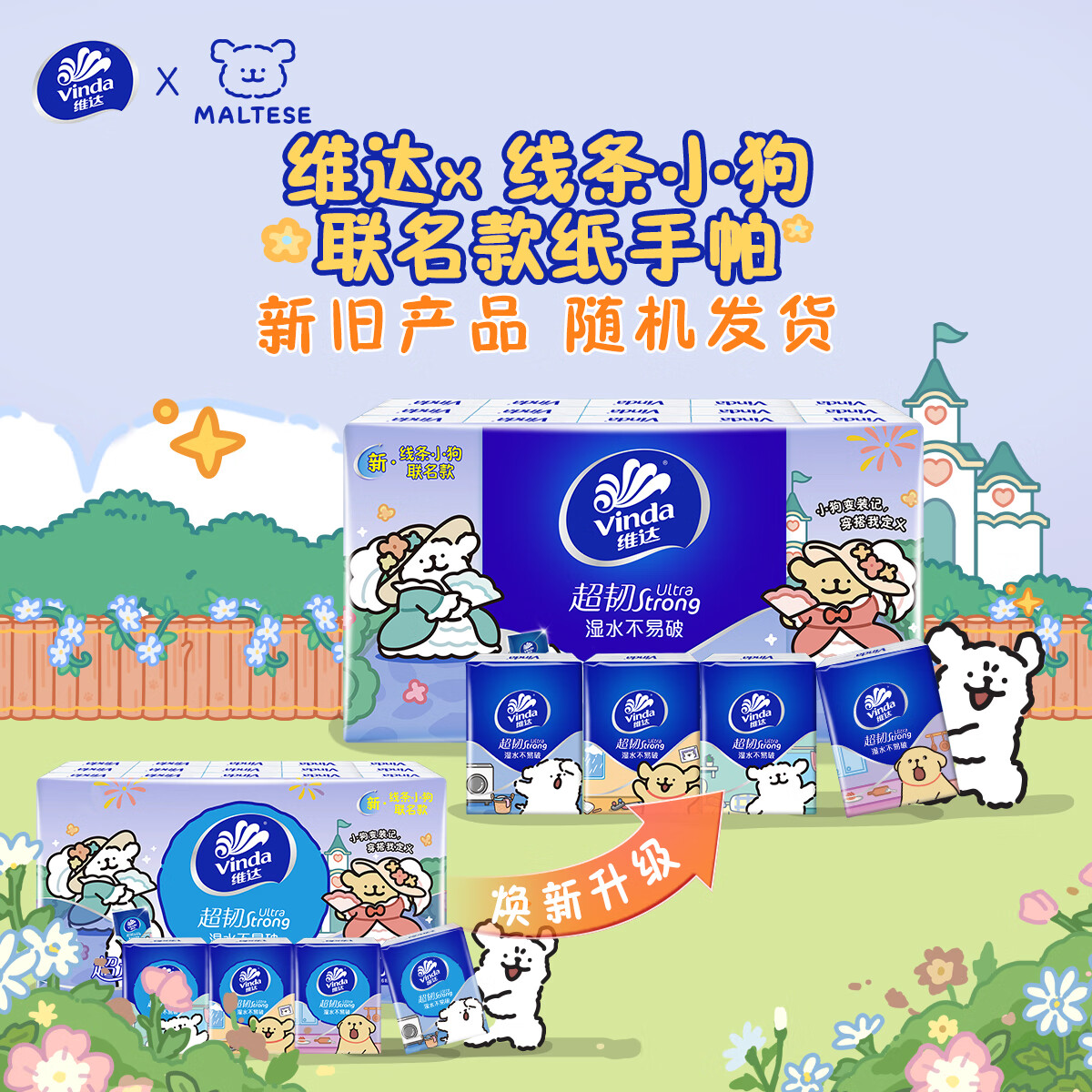 维达(Vinda)x线条小狗 超韧手帕纸4层5张*30包 开学出行必备便携装 新旧随机