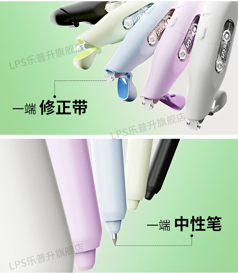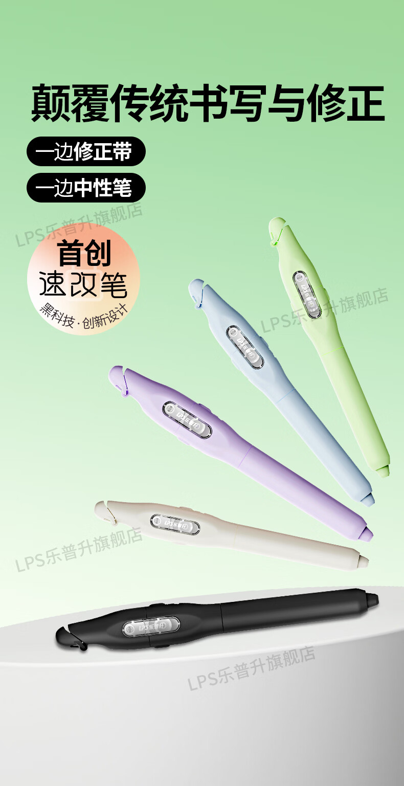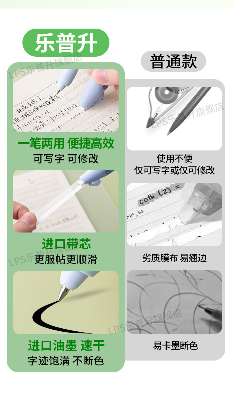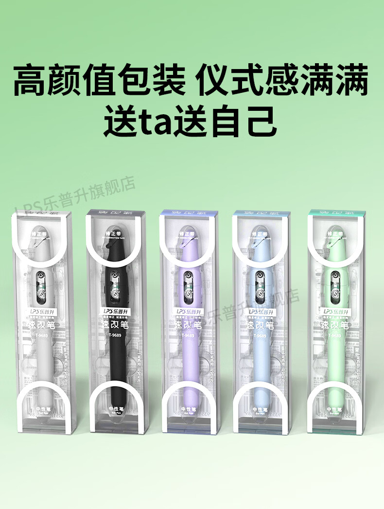 乐普升笔式修正带可替换芯小学生初中生专用黑科技改正带速改笔中性笔+修正带二合一改错带9689A白+2+2