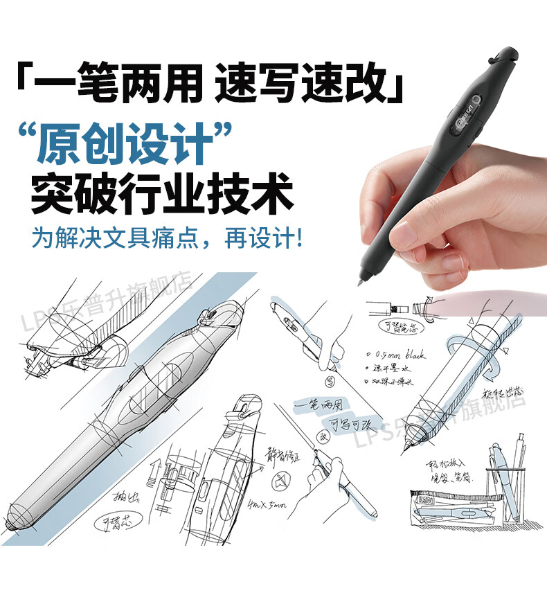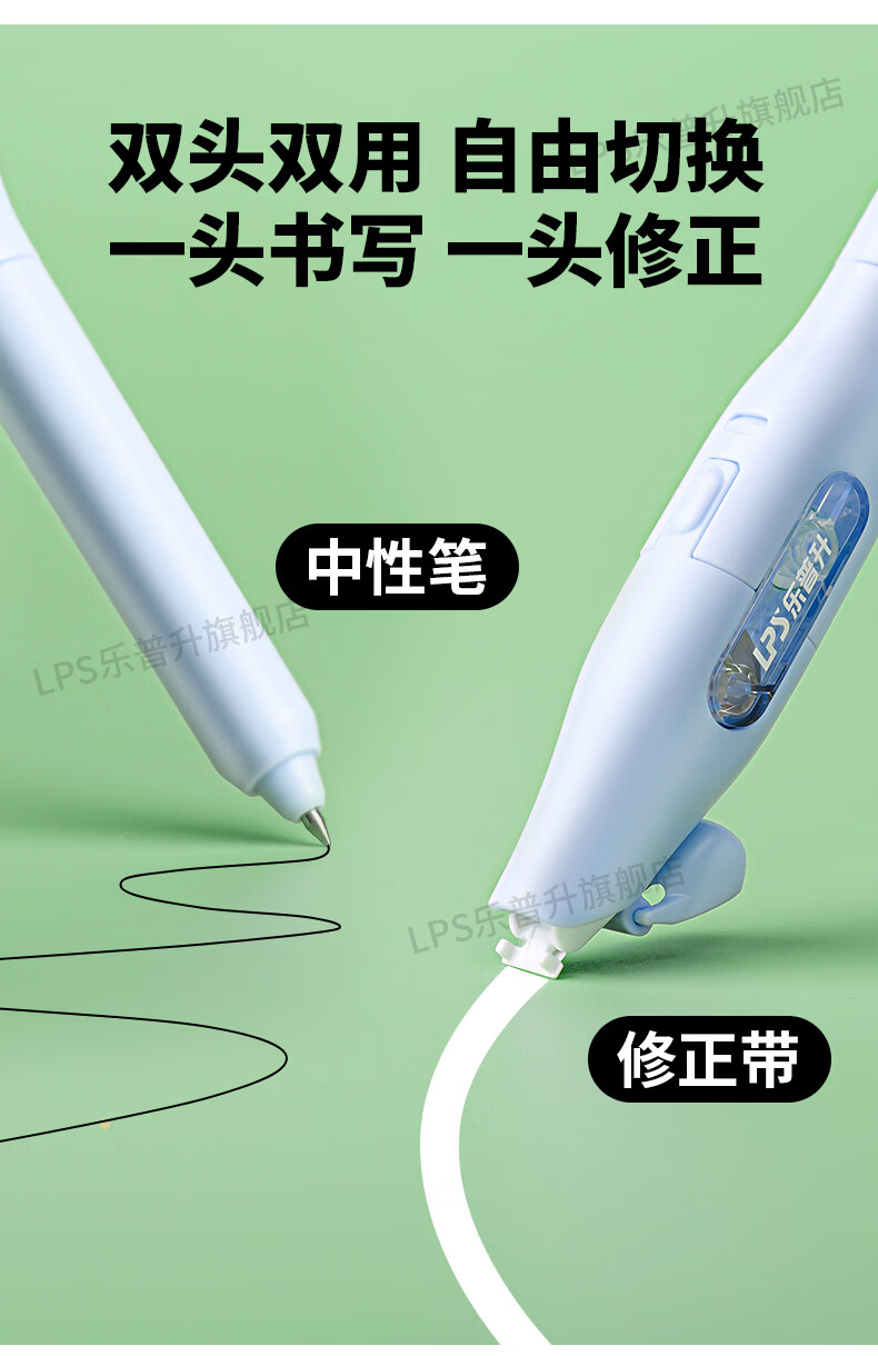 乐普升笔式修正带可替换芯小学生初中生专用黑科技改正带速改笔中性笔+修正带二合一书写笔改错带9689C蓝