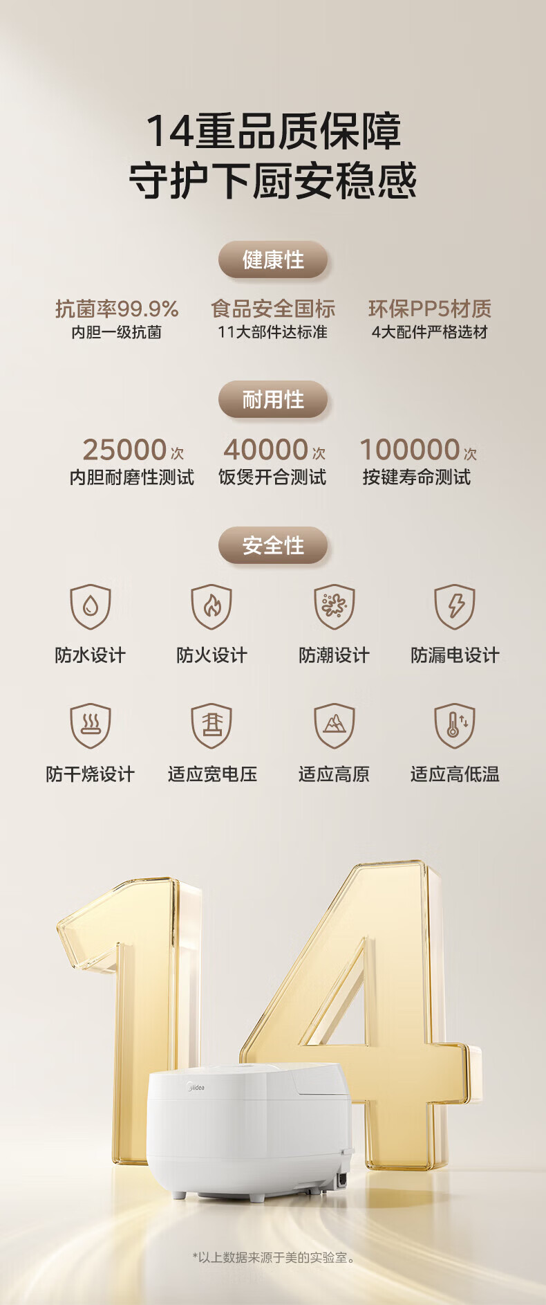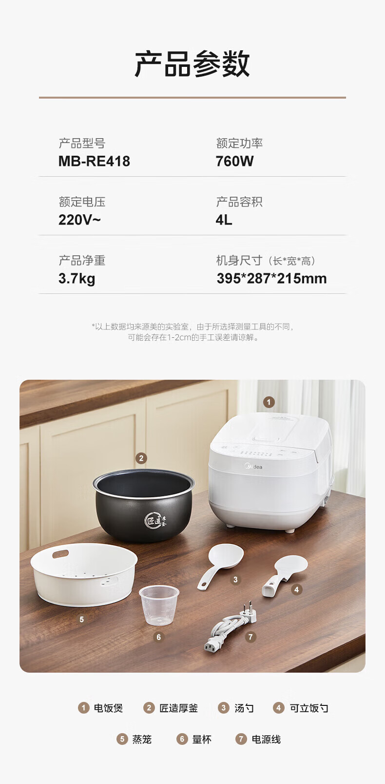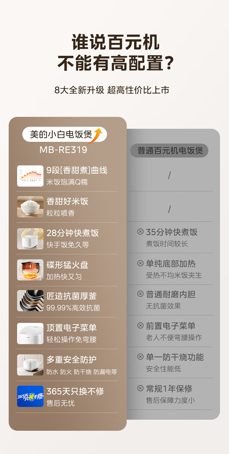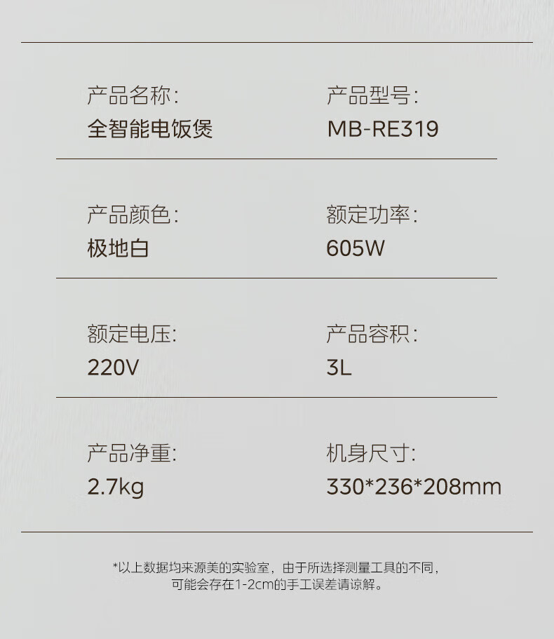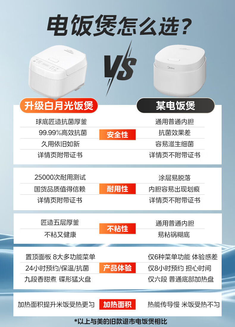 美的(Midea)电饭煲 家用智能预约多功能电饭锅 加厚抗菌内胆 快速饭 小米粥 迷你白月光电饭煲1-2-3-4人 【不粘内胆-顶置大面板】 4L