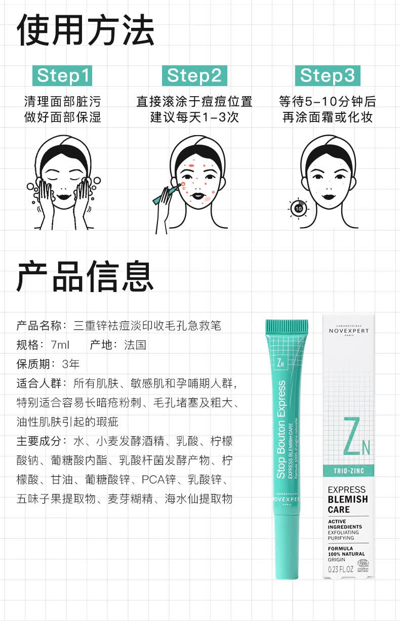 NOVEXPERT诺士博点痘精华笔 果酸祛痘淡印 舒缓闭口粉刺痤疮祛痘棒 【8H速瘪痘】祛痘笔7ml