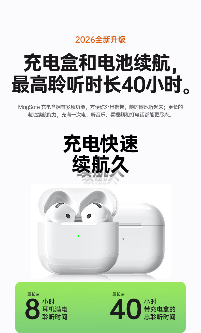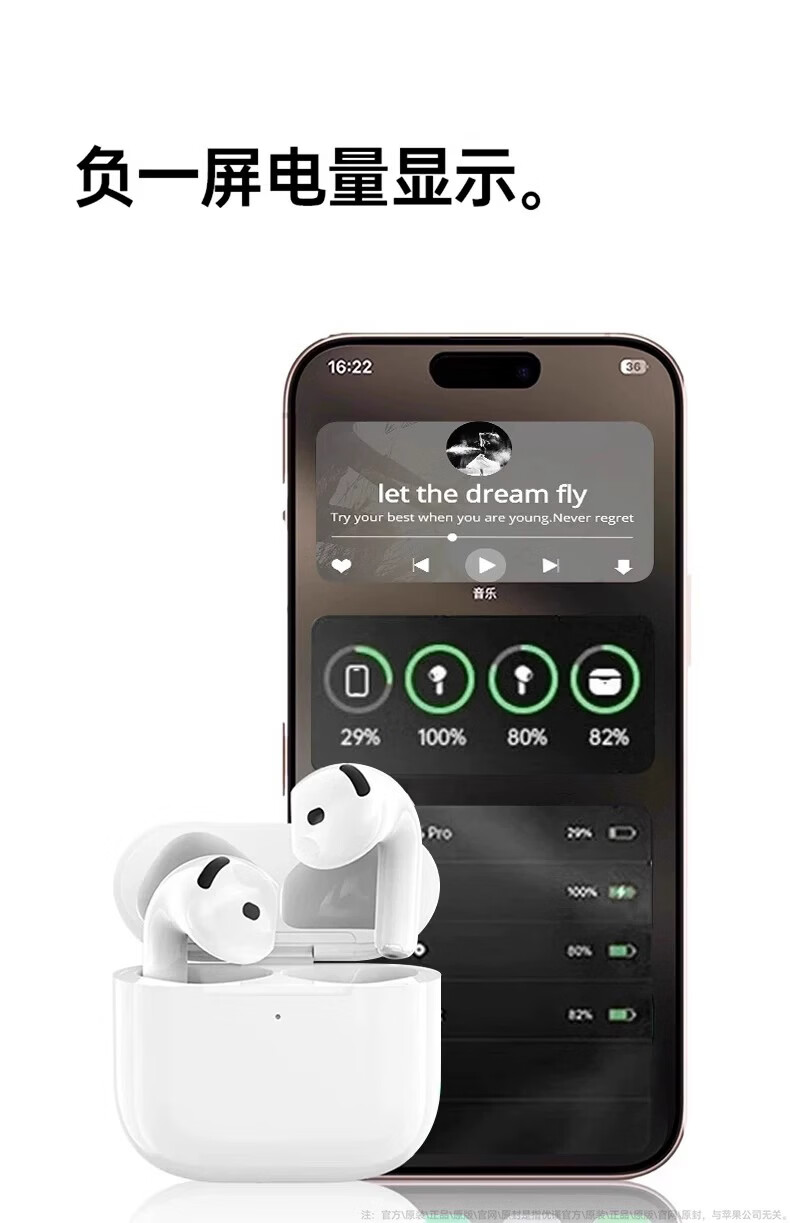 宾勋【Air4主动降噪款】蓝牙耳机无线适配苹果华为OPPO无线2026新款半入耳式金榜前十华强北iphone17 Air4代白色无线耳机