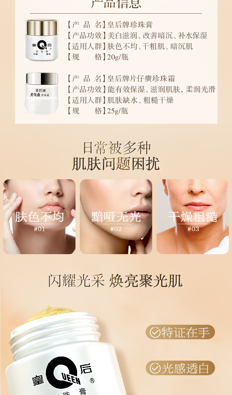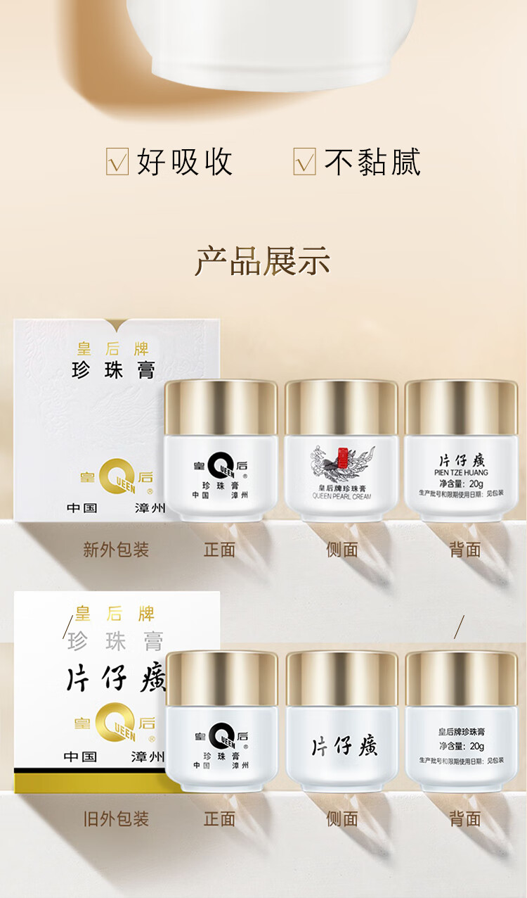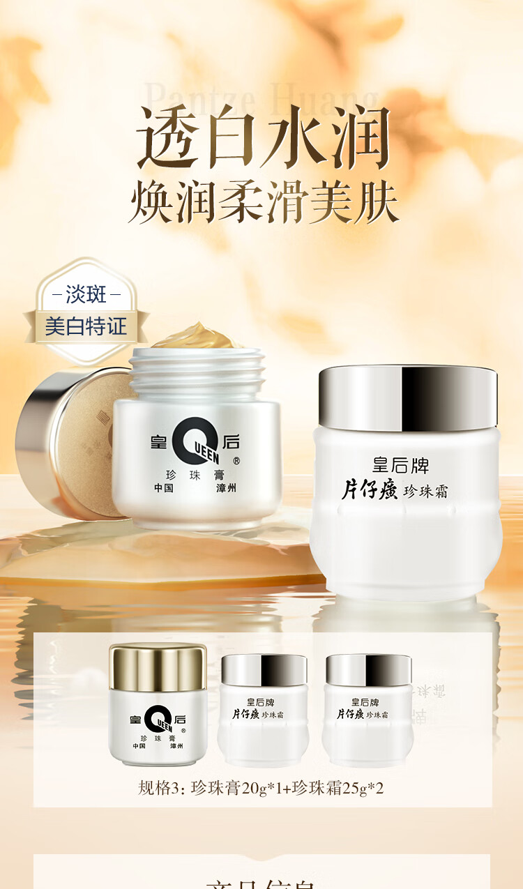 片仔癀皇后牌美白滋润3件套 提亮补水面霜(珍珠膏+珍珠霜*2)新年礼物