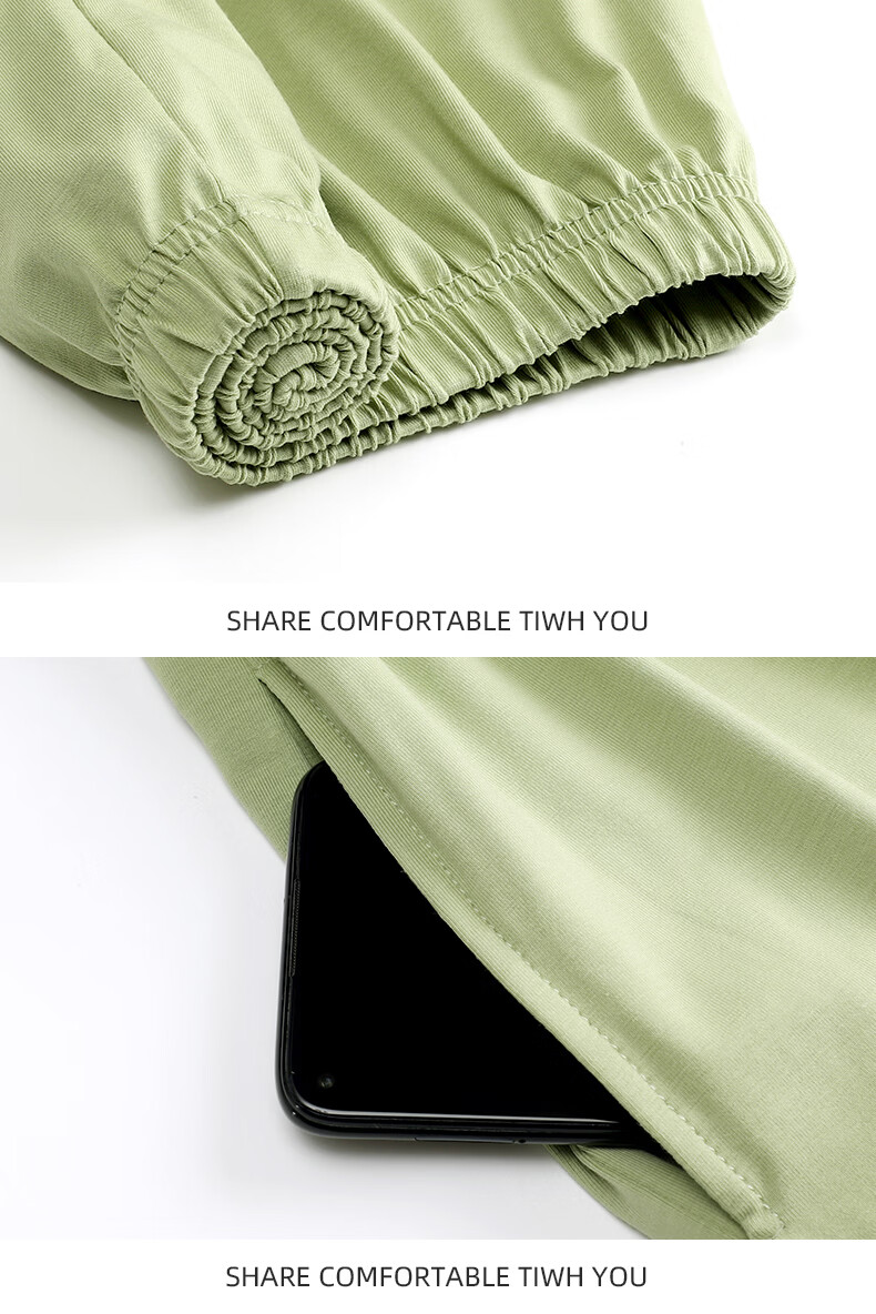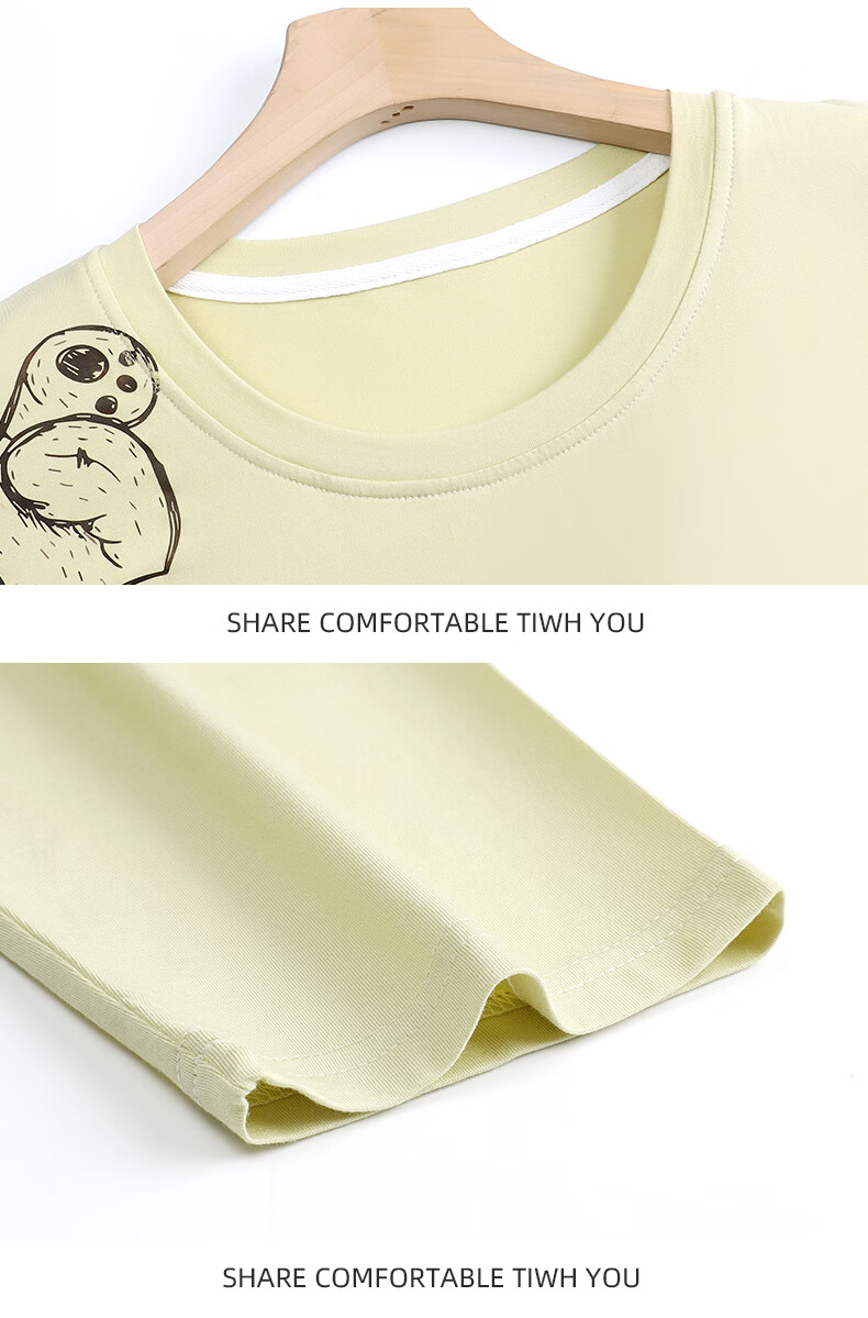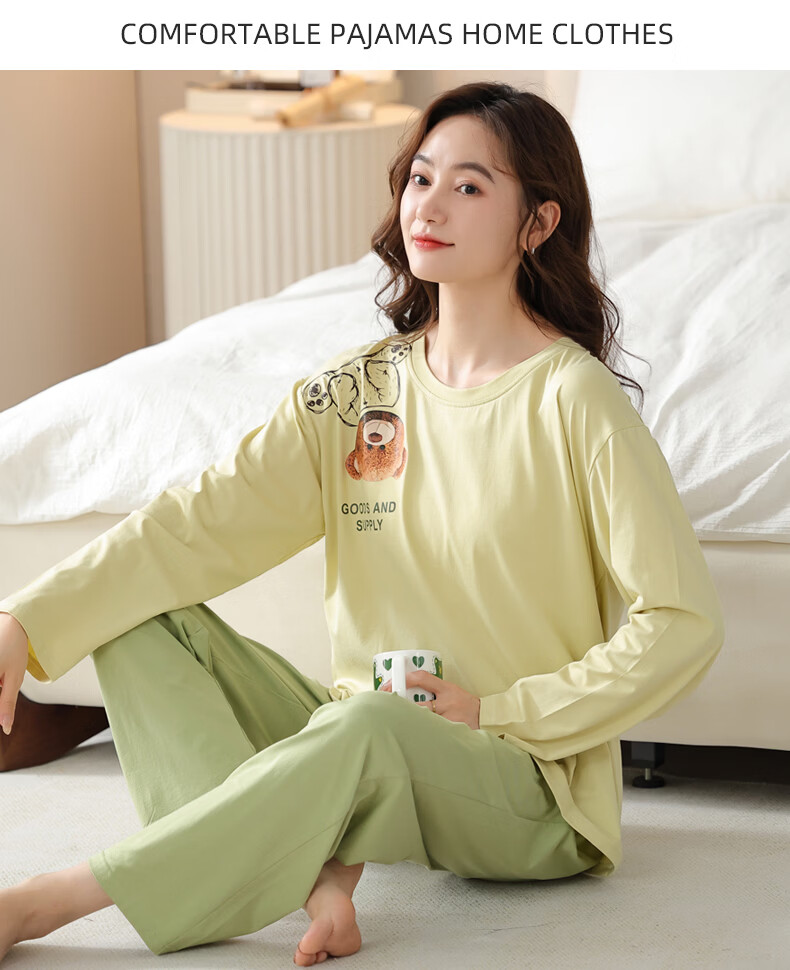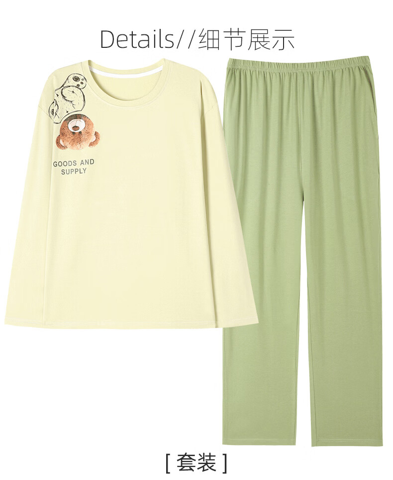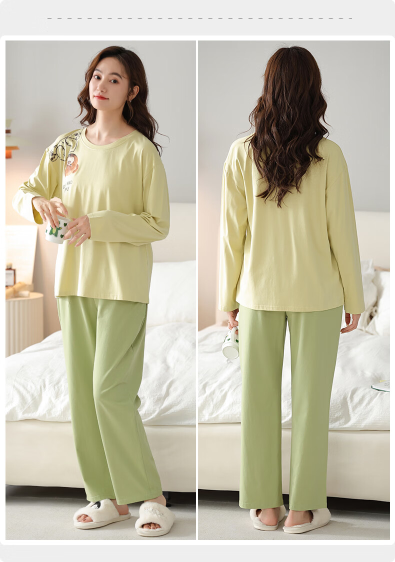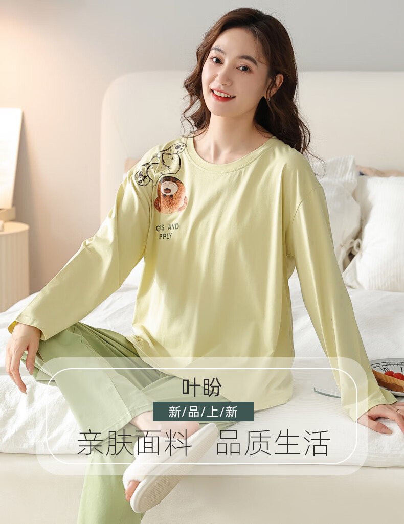 叶盼(yepan)【柔软】睡衣女春秋季莫代尔长袖宽松大码夏季薄款女士家居服套装 4356-黄绿 M (160) :建议90-110斤穿着