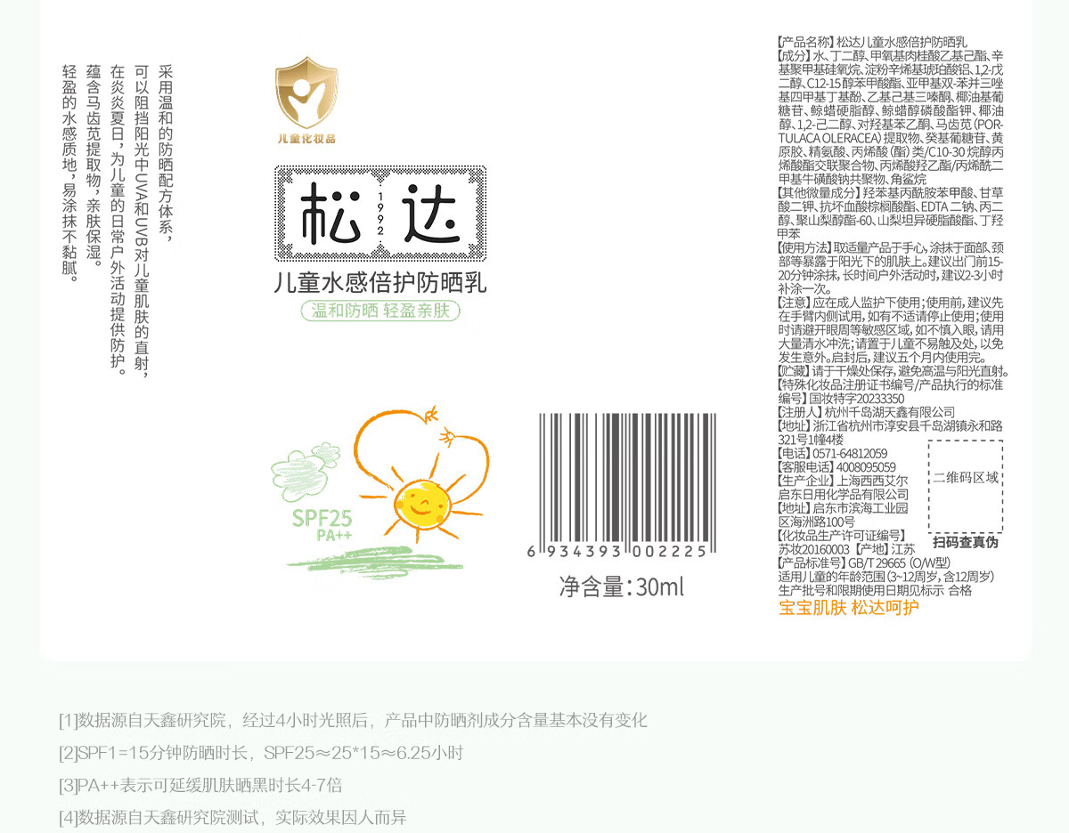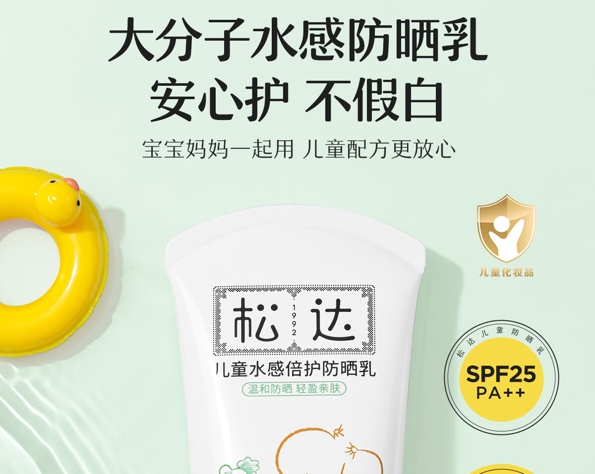 松达儿童防晒霜宝宝婴幼儿专用大分子学生水润防晒霜非喷雾温水可卸 【清水可卸】防晒霜30ml