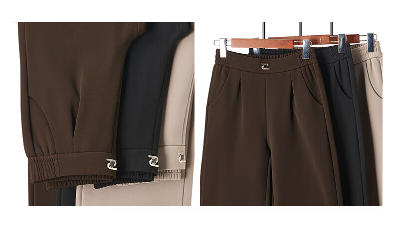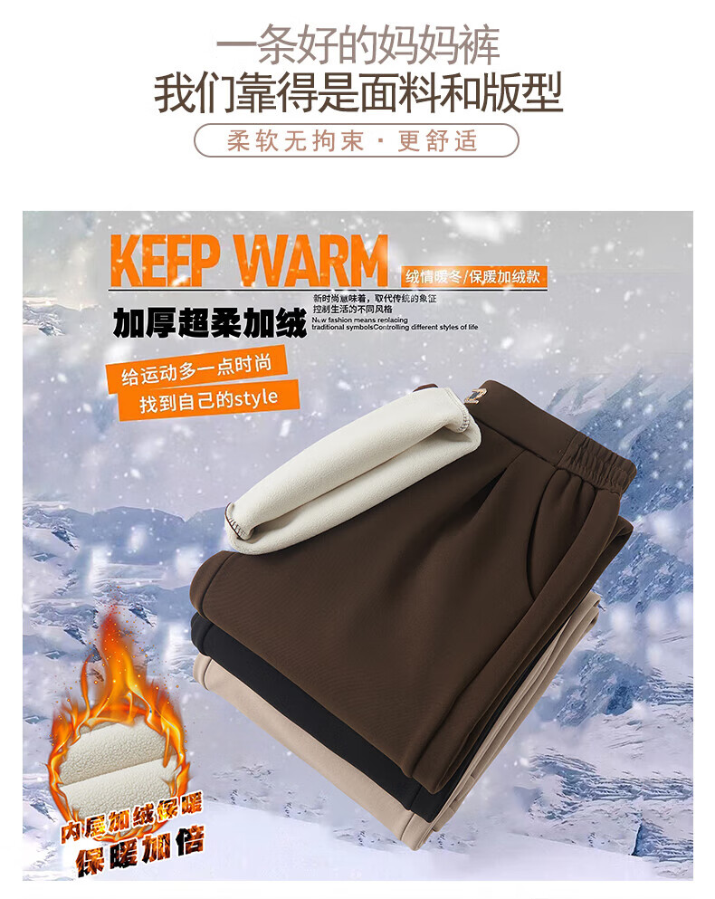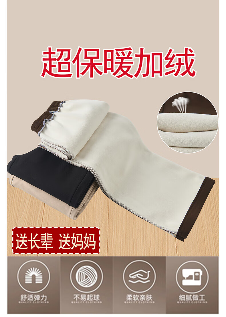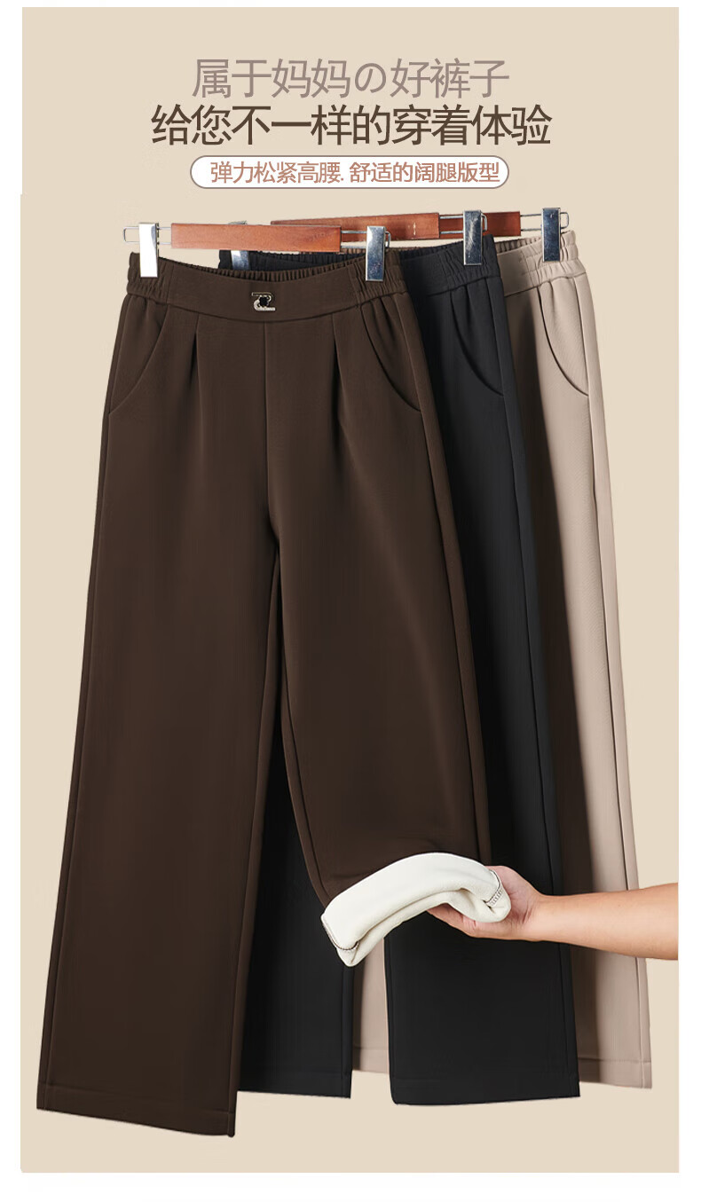情罗兰(QINGLUOLAN)妈妈裤子秋冬款加绒宽腿裤冬季加绒加厚女裤50-60岁老年人棉裤女 D6619卡其【春秋款】 常规 XL 【建议90-105】