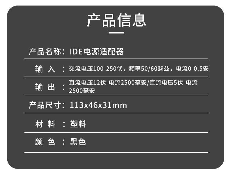 OKOU新易驱线独立电源12V5V2.5a台式机电脑ide硬盘光驱外接电源升级版电源适配器 适配器+220V电源线+SATA电源线+4p电源线