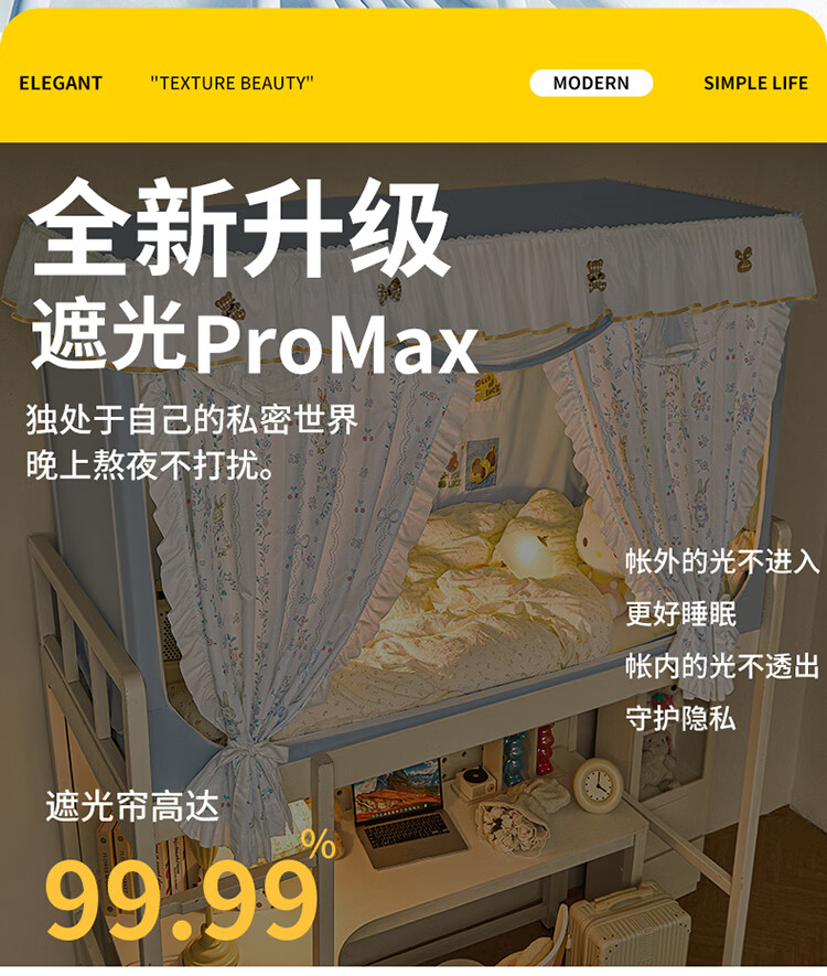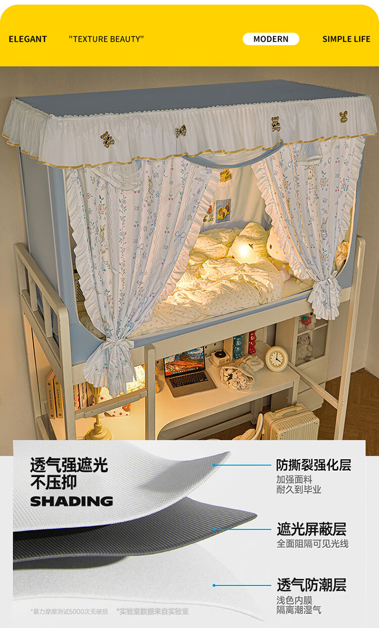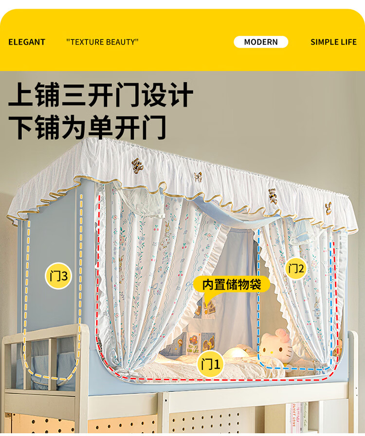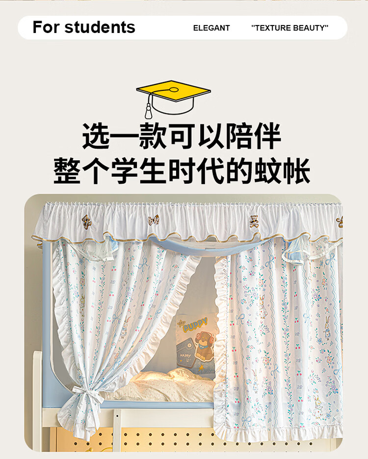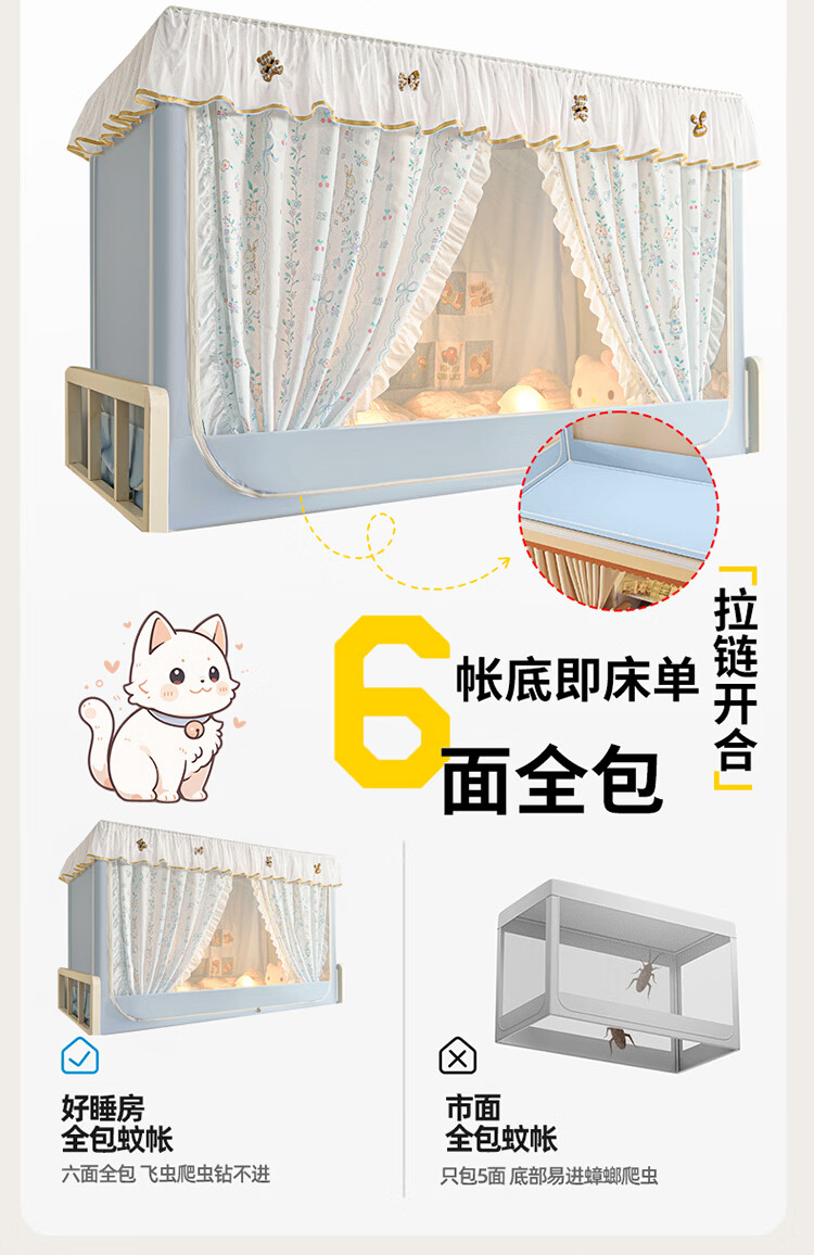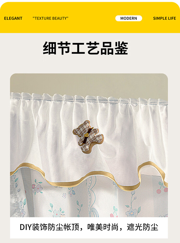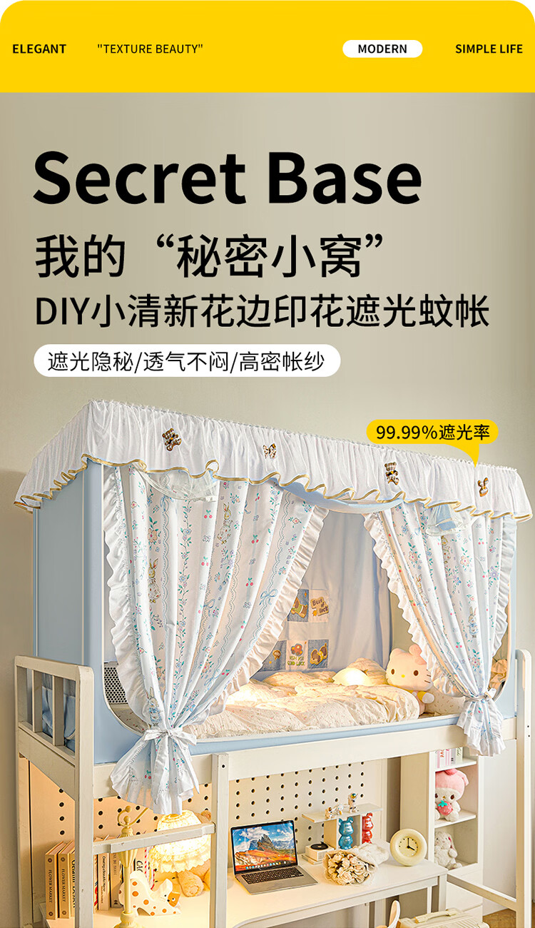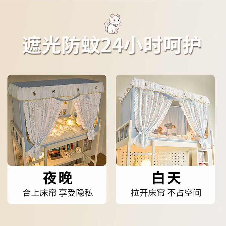无印良品公主风学生宿舍遮光床帘蚊帐一体式全包女生寝室上下铺通用免安装 DIY小清新-宝贝蝴蝶结【四面遮光不含靠墙帘】 90cm*190cm *110上铺【一体成型高伸缩】