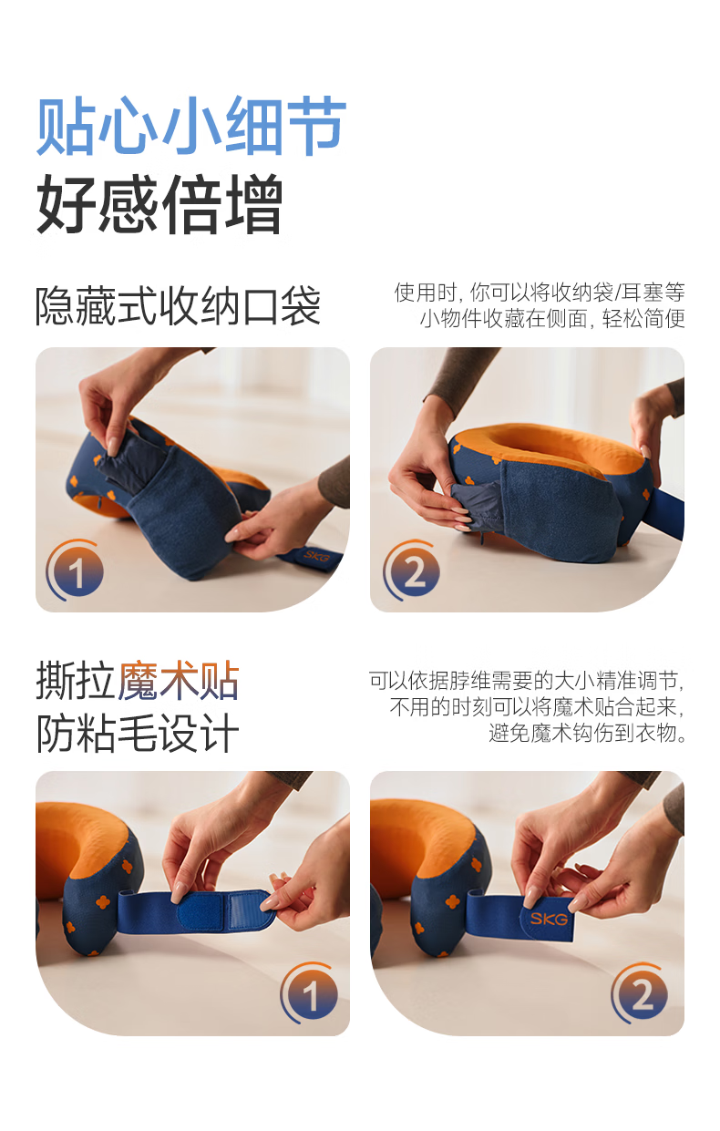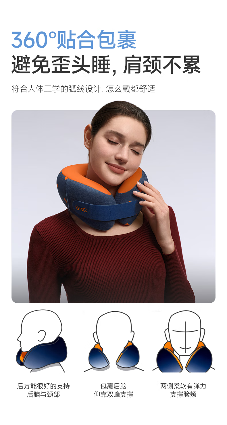 SKG记忆棉u型枕旅行护颈椎枕飞机睡觉枕头脖子靠枕便携卡其色