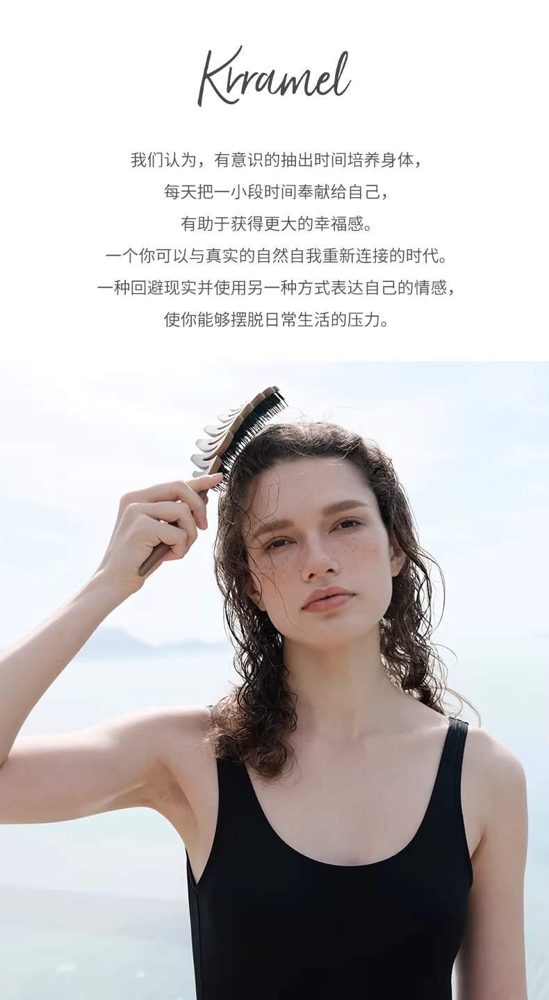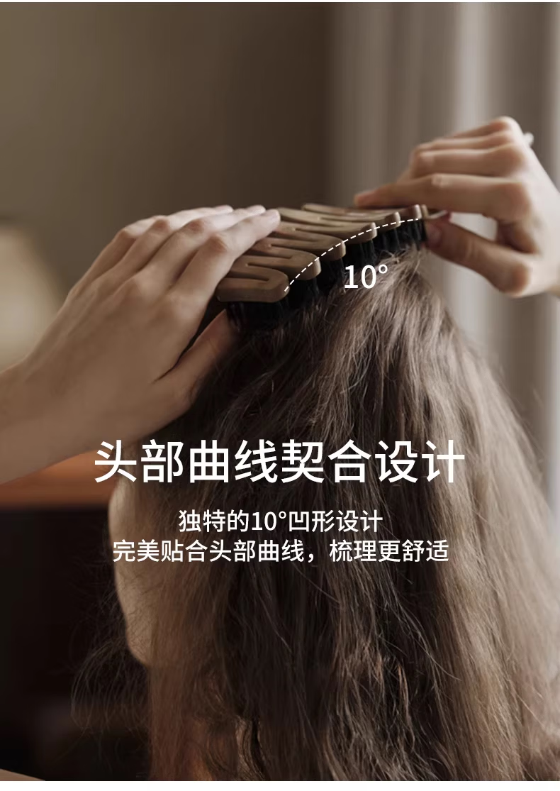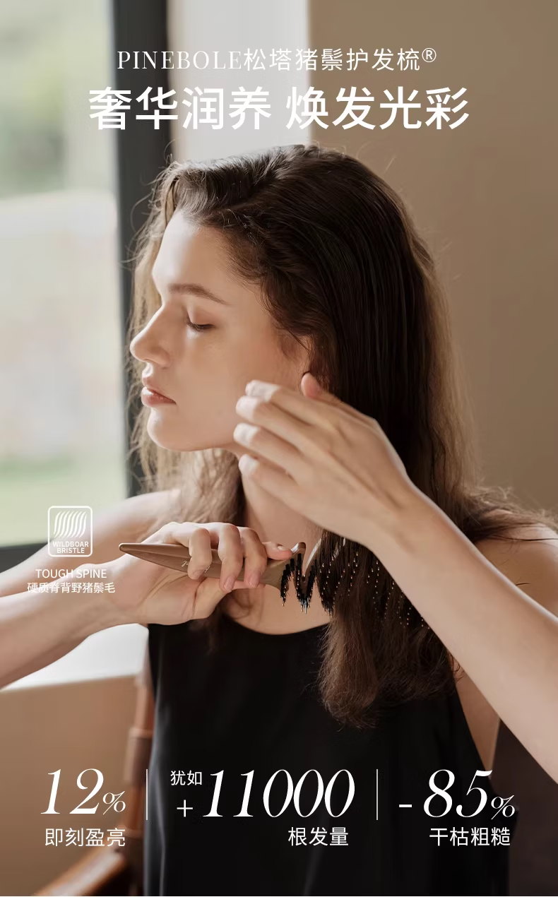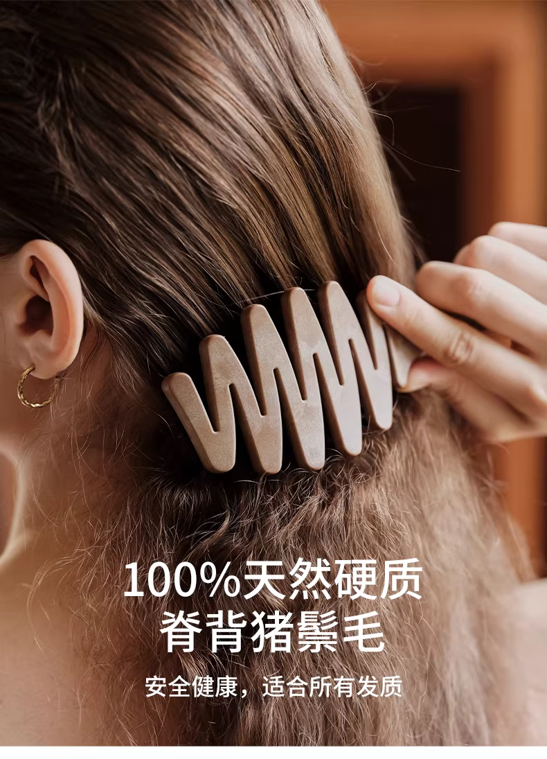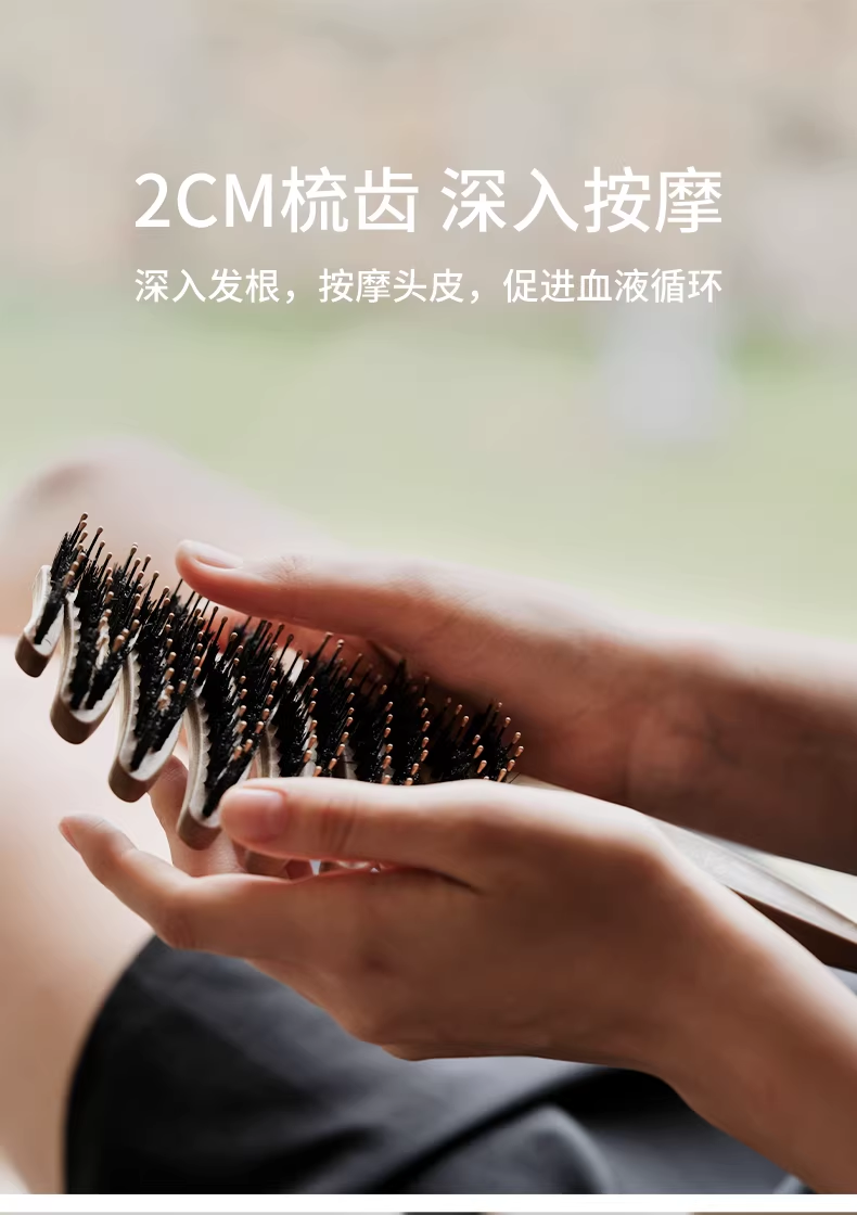 KRRAMEL生日礼物女士公司员工福利梳子松塔猪鬃按摩气垫梳礼品 松塔梳-原木色-20cm