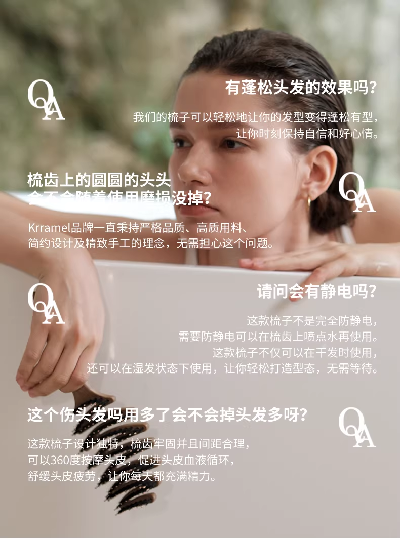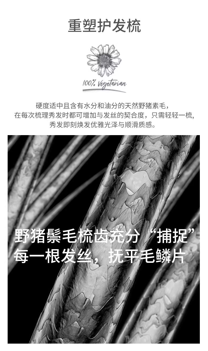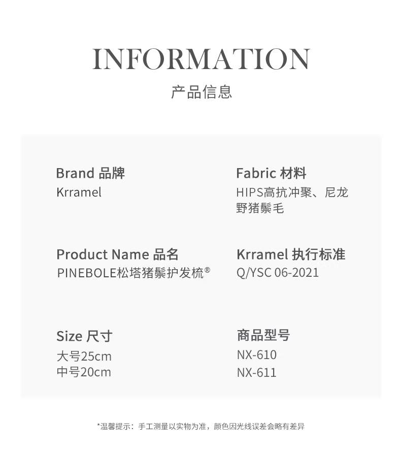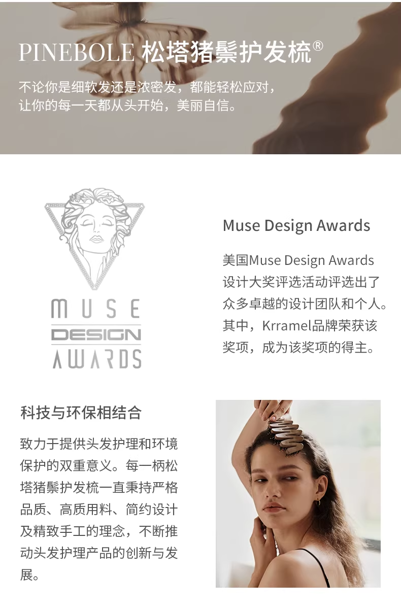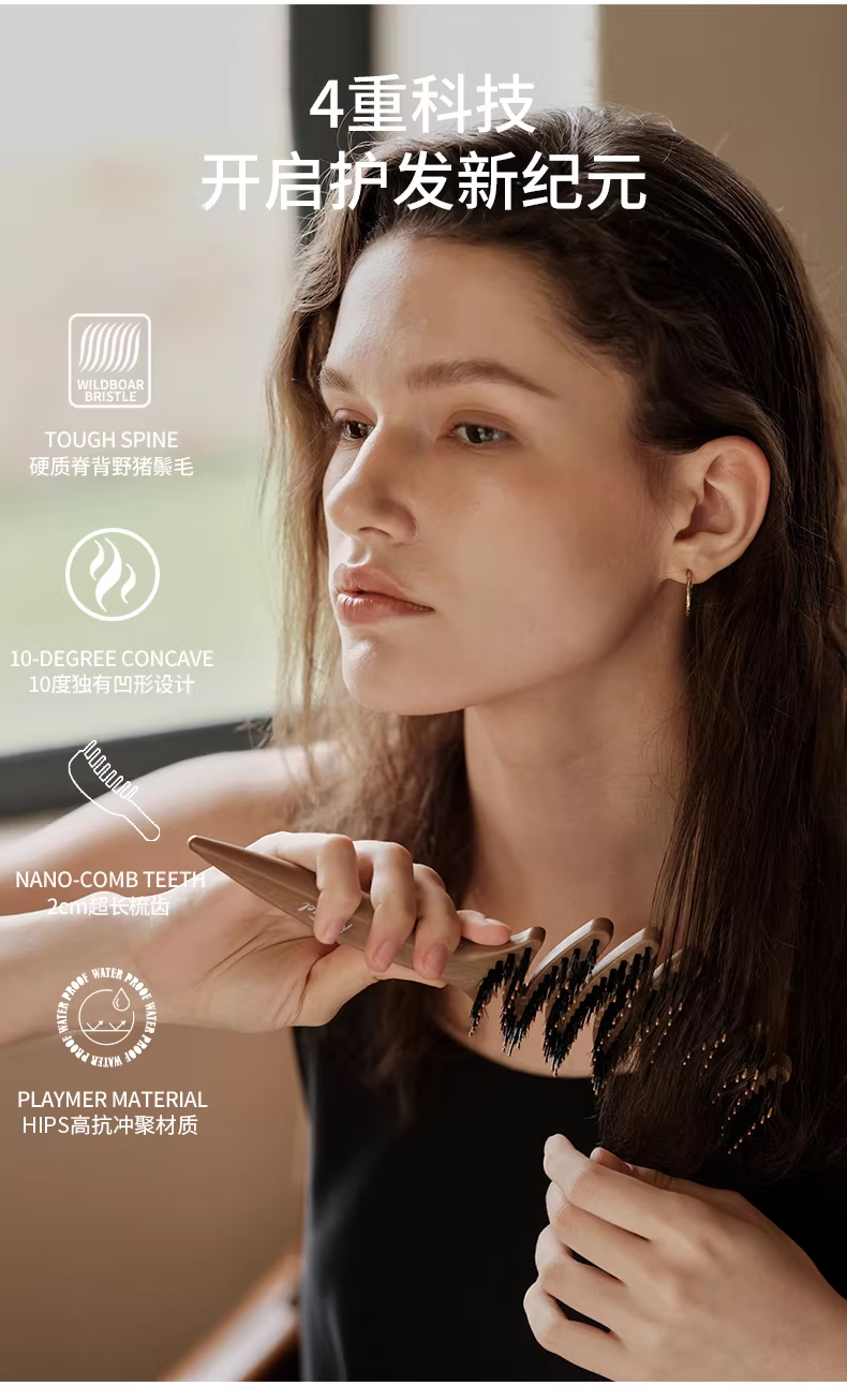 KRRAMEL生日礼物女士公司员工福利梳子松塔猪鬃按摩气垫梳礼品 松塔梳-原木色-20cm