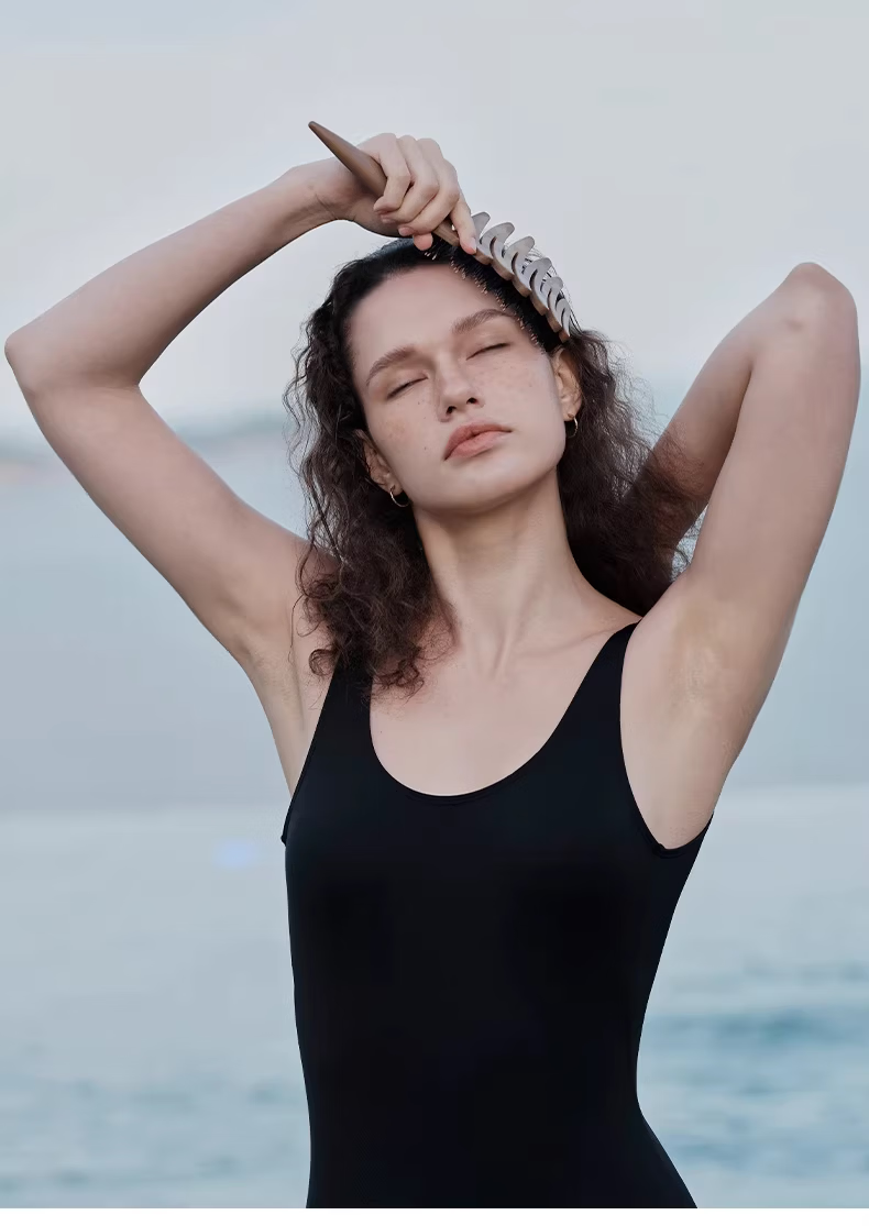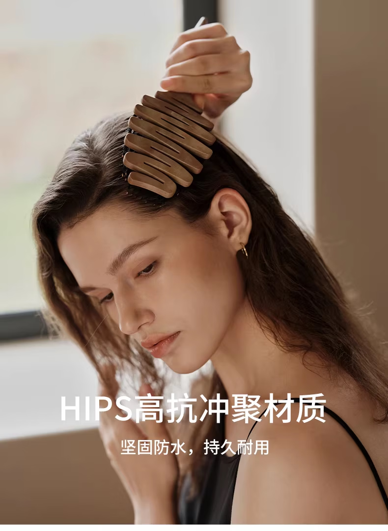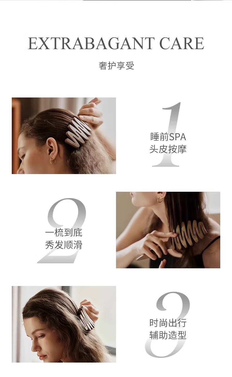 KRRAMEL生日礼物士梳子防静电进口醋酸扁平发夹盘发实用送妈妈 中号【松塔梳】-原木色+椭圆【醋酸发夹】-云岫灰