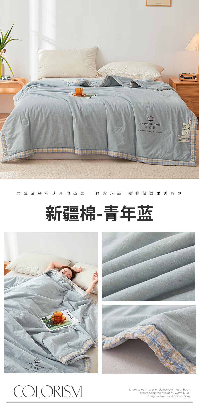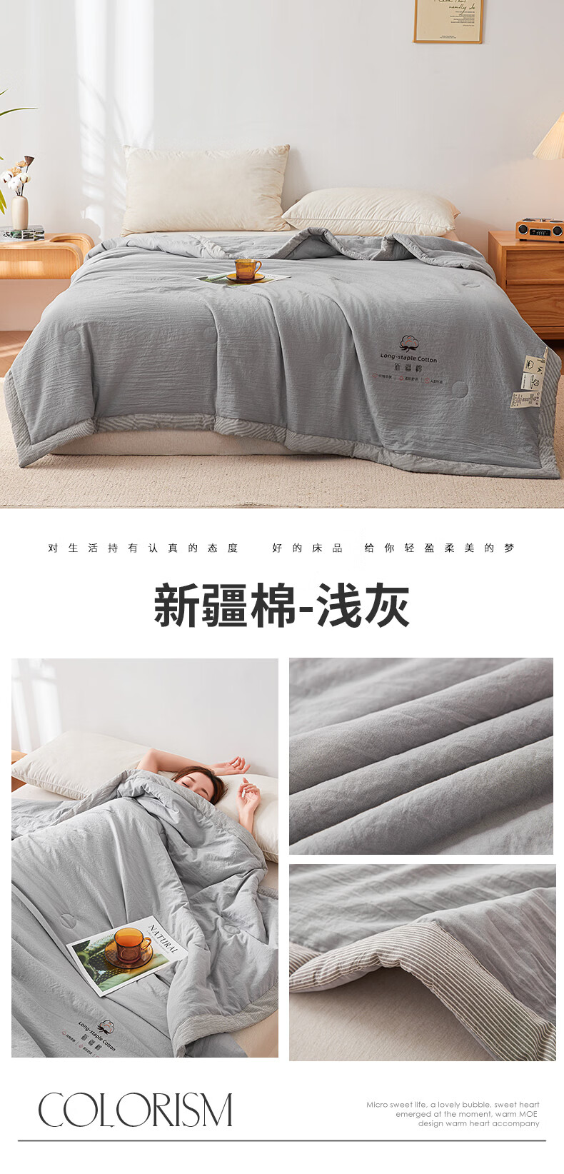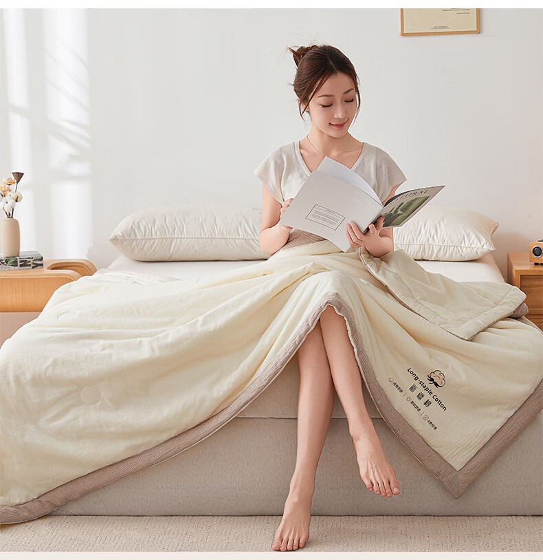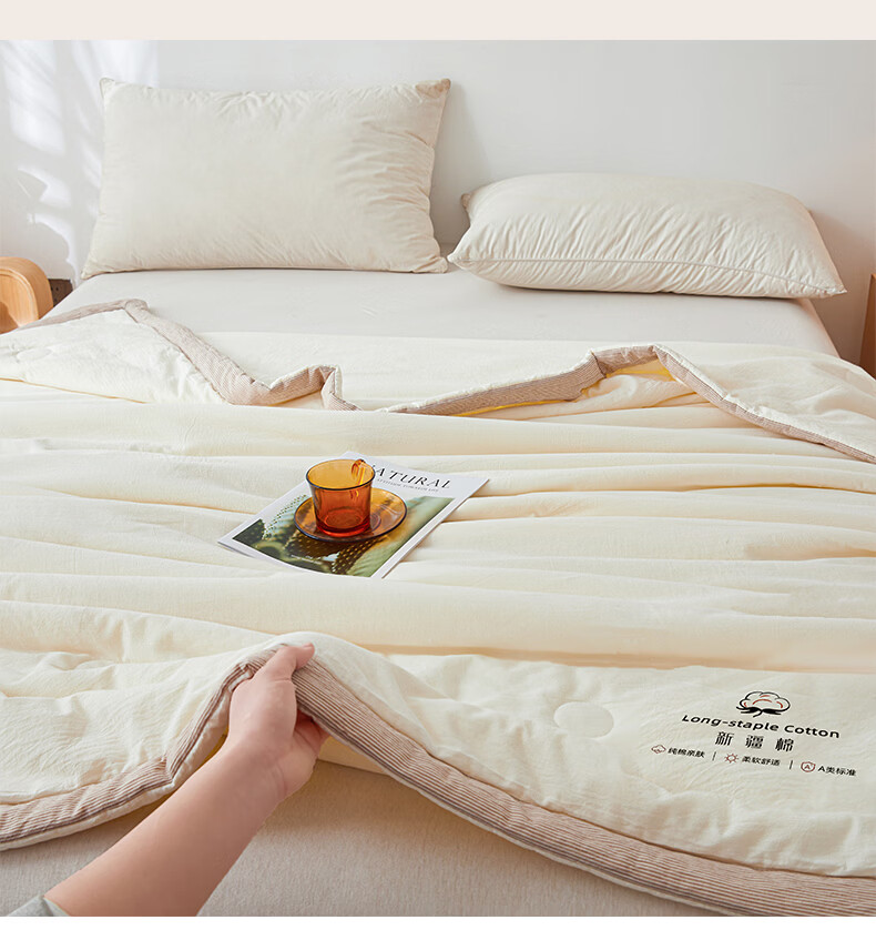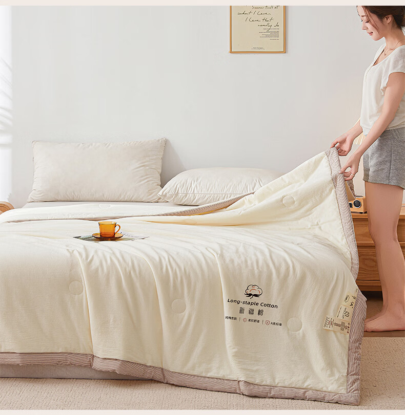 无印良品A类新疆棉花空调被200x230cm家用双人夏凉被可机洗裸睡夏季薄被子 新疆棉-浅灰【新疆棉花填充 更柔软】 200cmx230cm单夏被