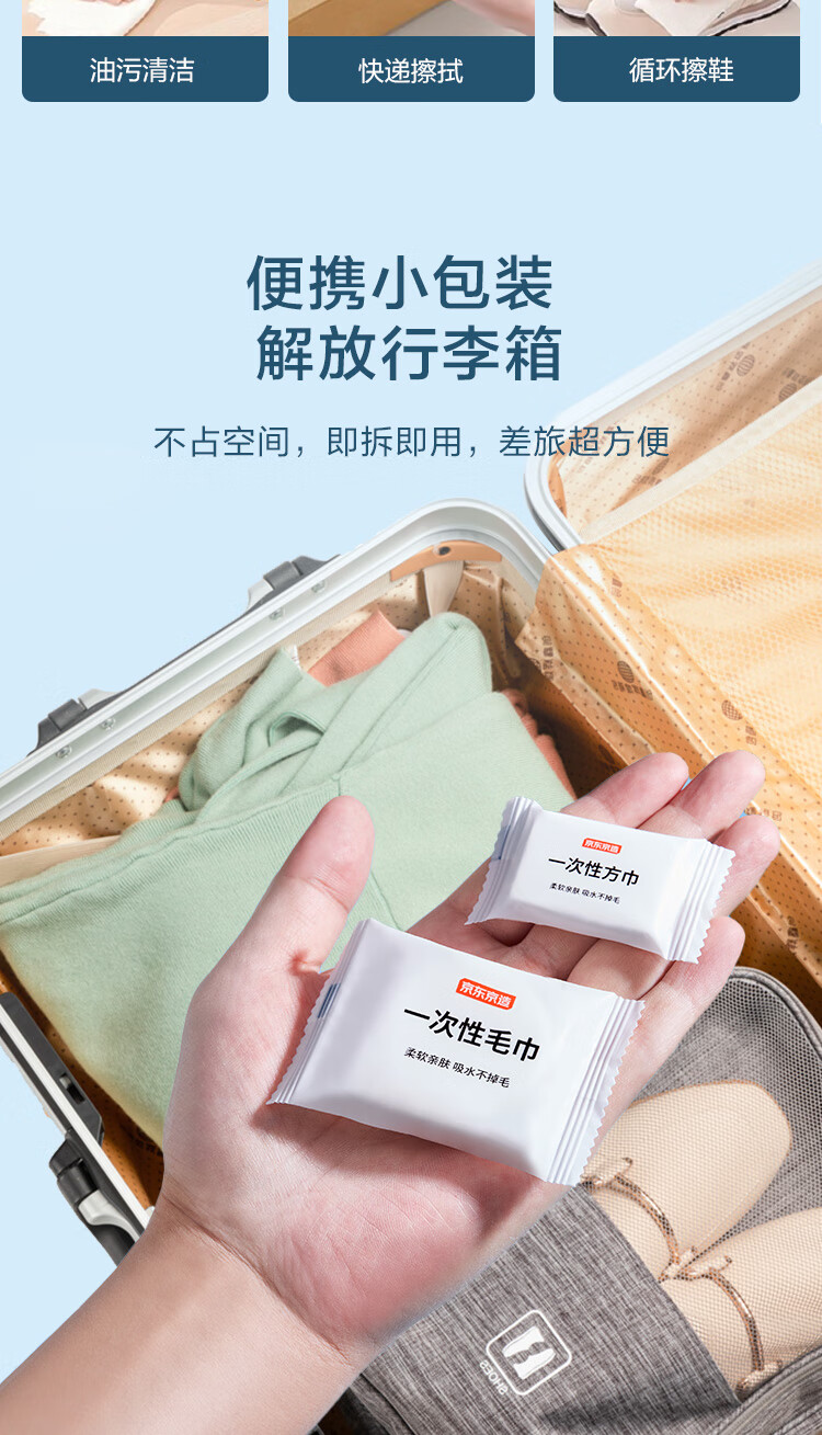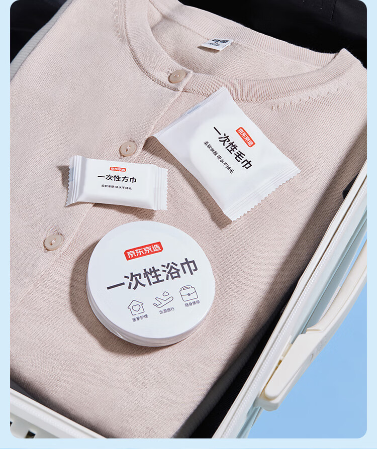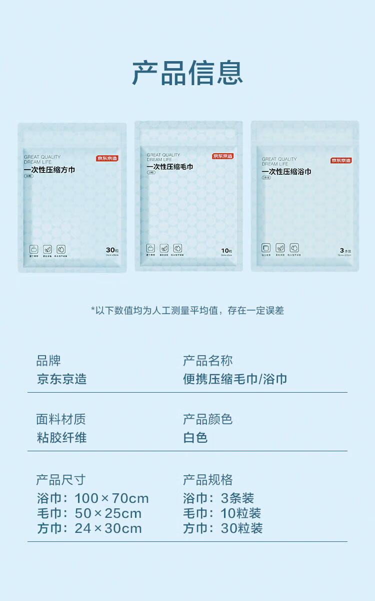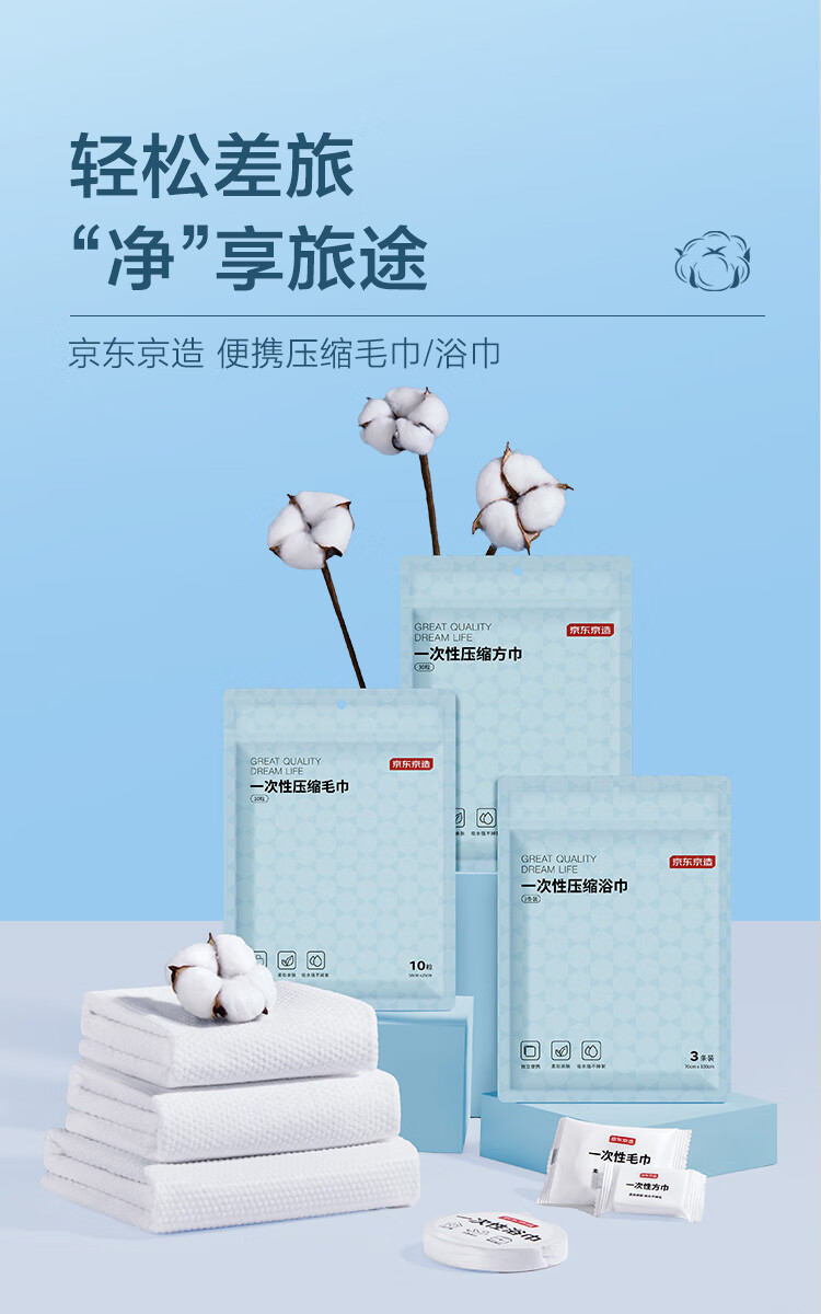 京东京造一次性压缩毛巾25*50cm加大加厚洗脸巾便携旅行酒店用品10粒装
