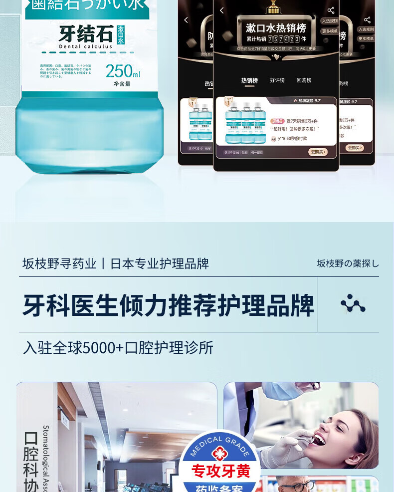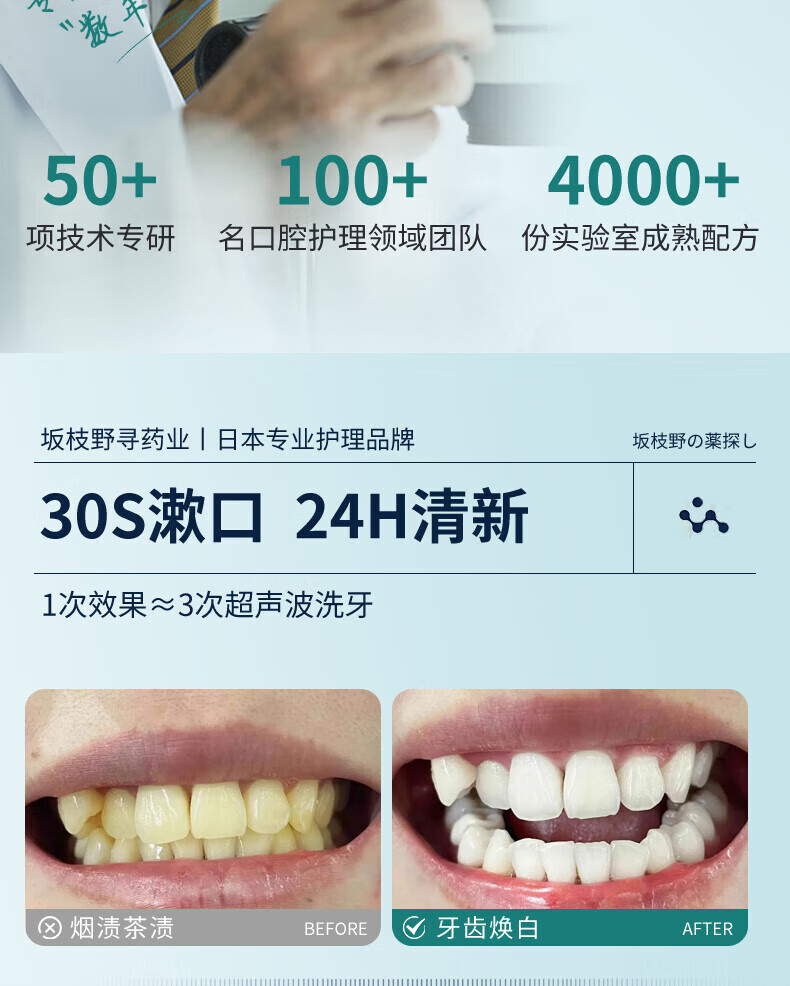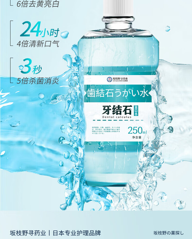 坂枝野寻漱口水便携去口臭牙结石牙黄牙结石牙渍速傚溶解 告别牙结石口臭】1瓶