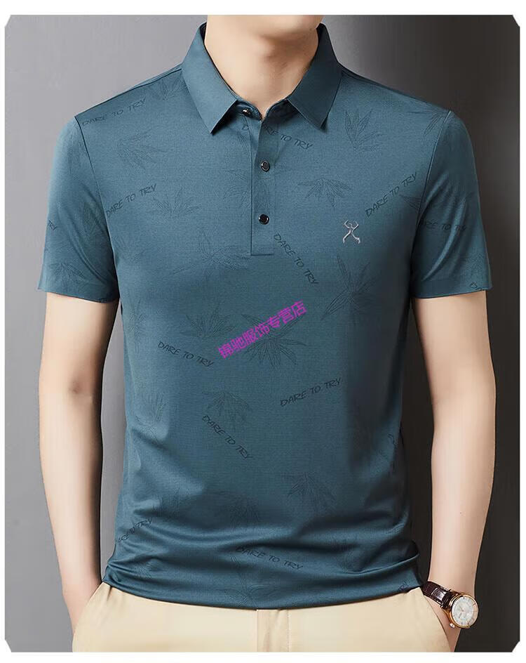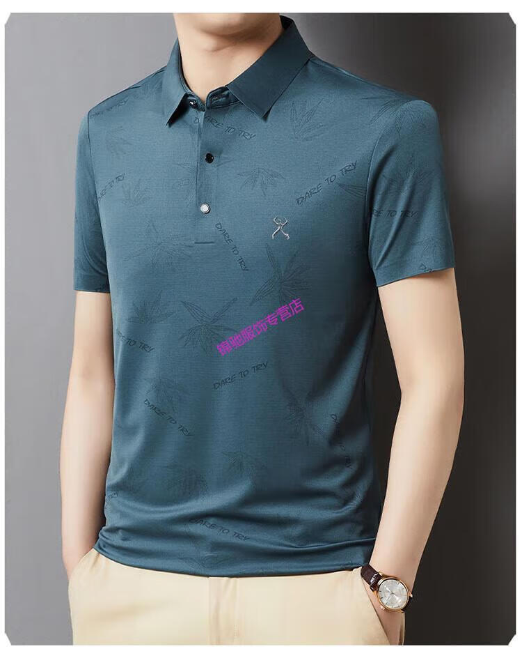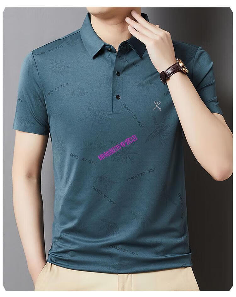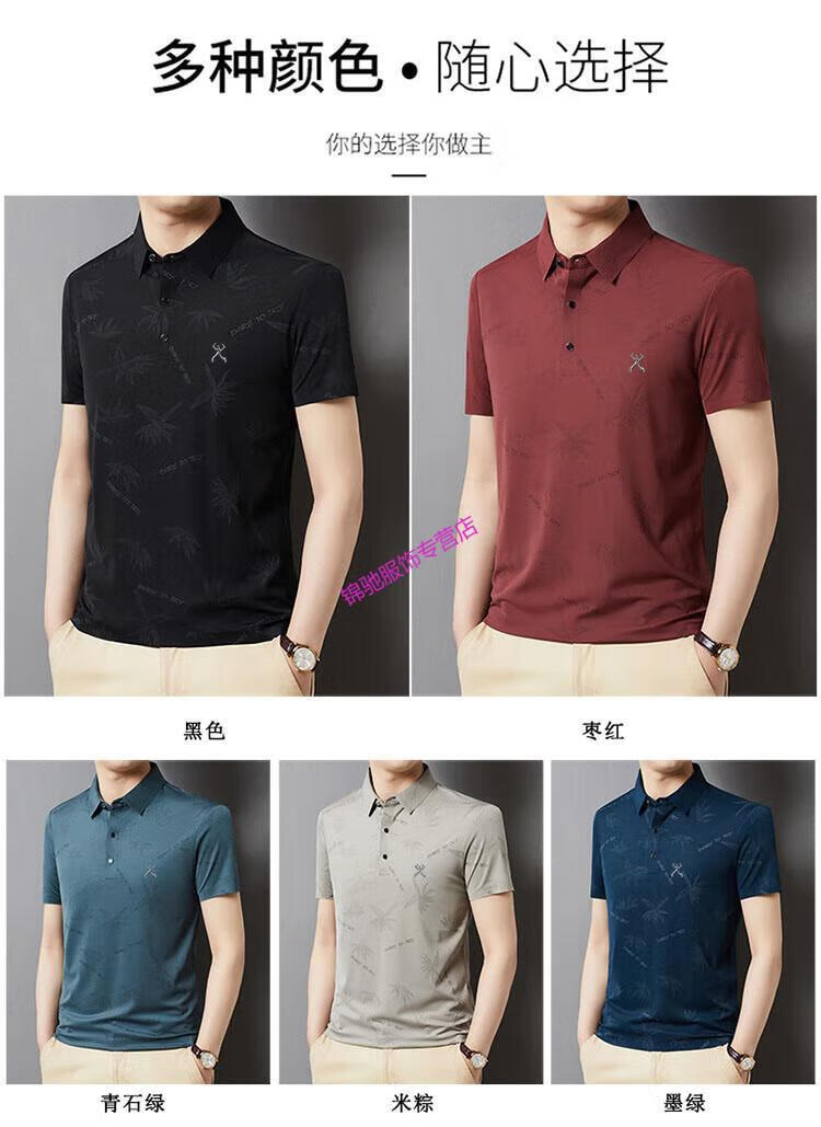 KBXNG劲霸官方旗舰男装夏季男士无痕短袖T恤桑蚕丝休闲男装翻领POLO 墨绿色 4XL 190-58-