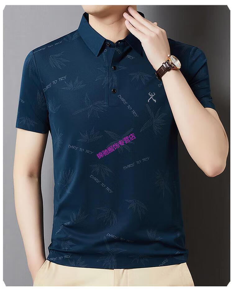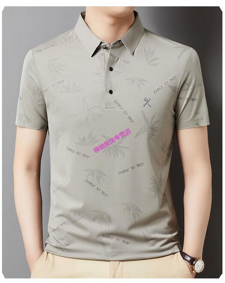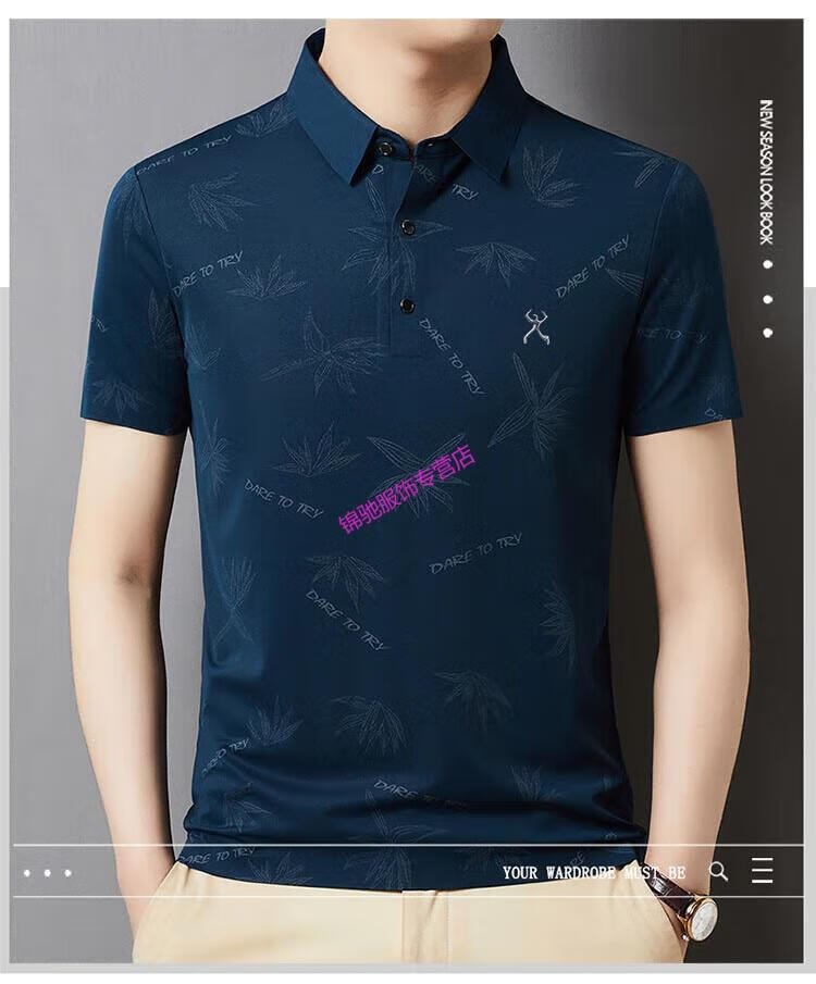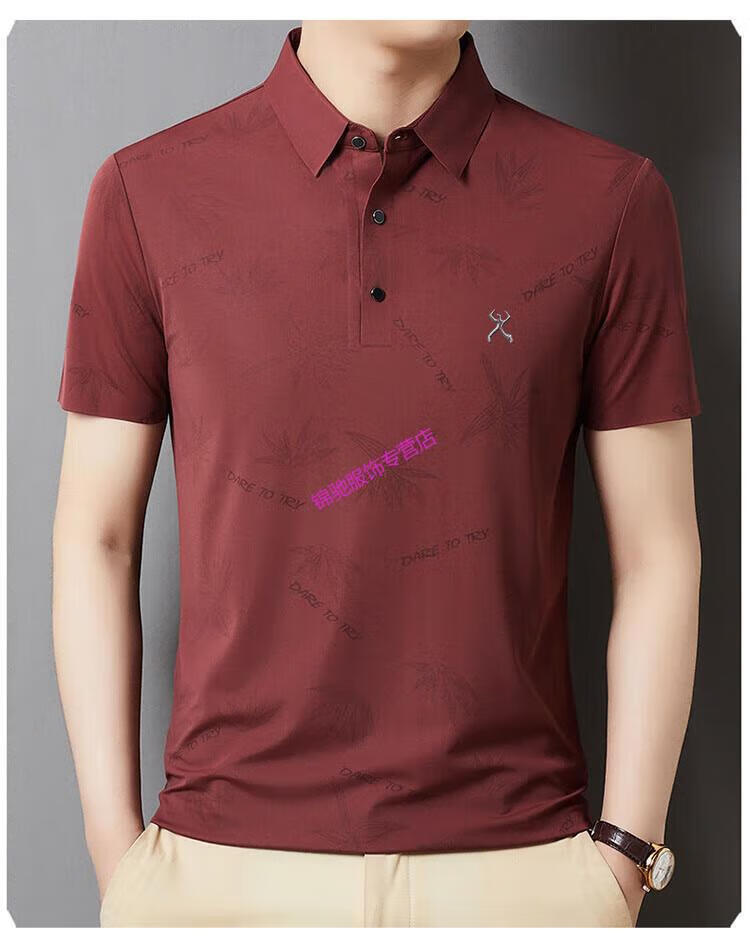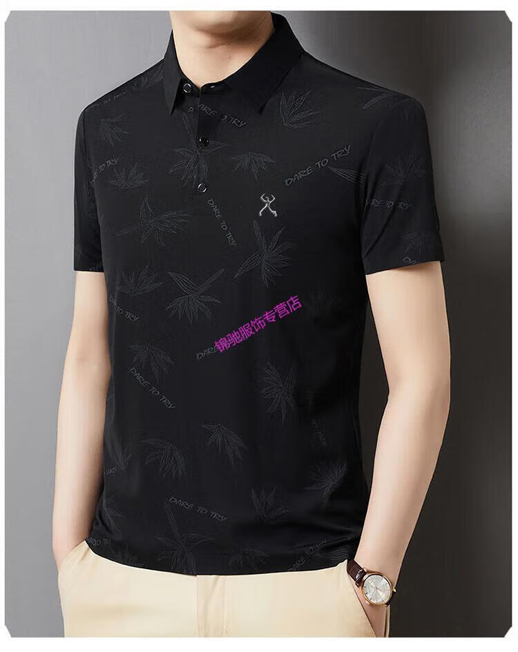 KBXNG劲霸官方旗舰男装夏季男士无痕短袖T恤桑蚕丝休闲男装翻领POLO 墨绿色 4XL 190-58-