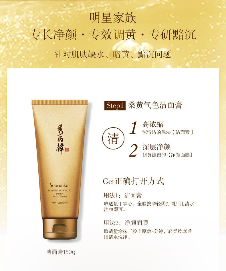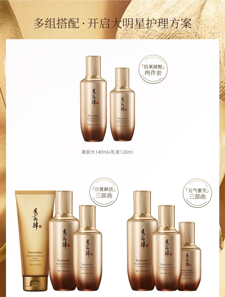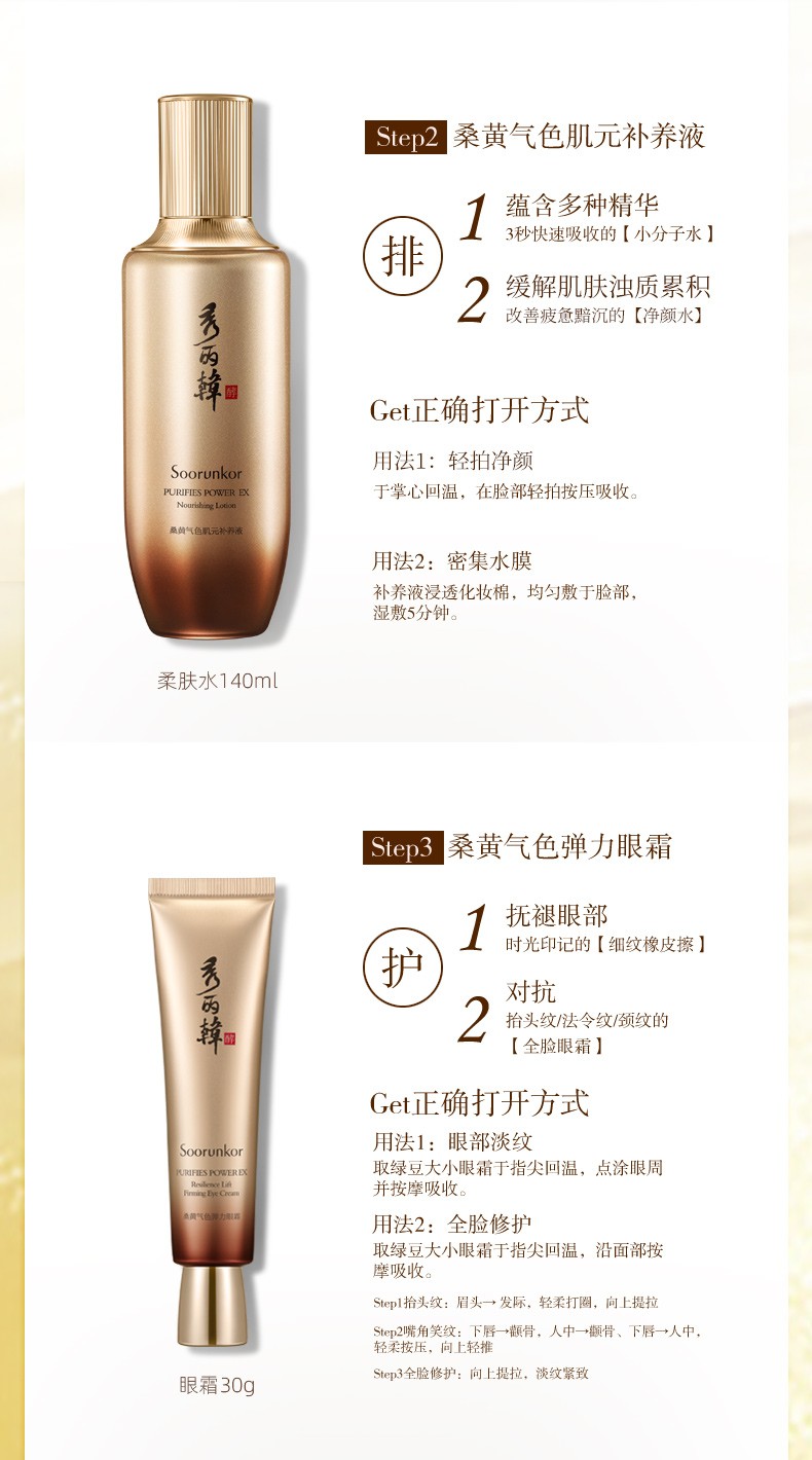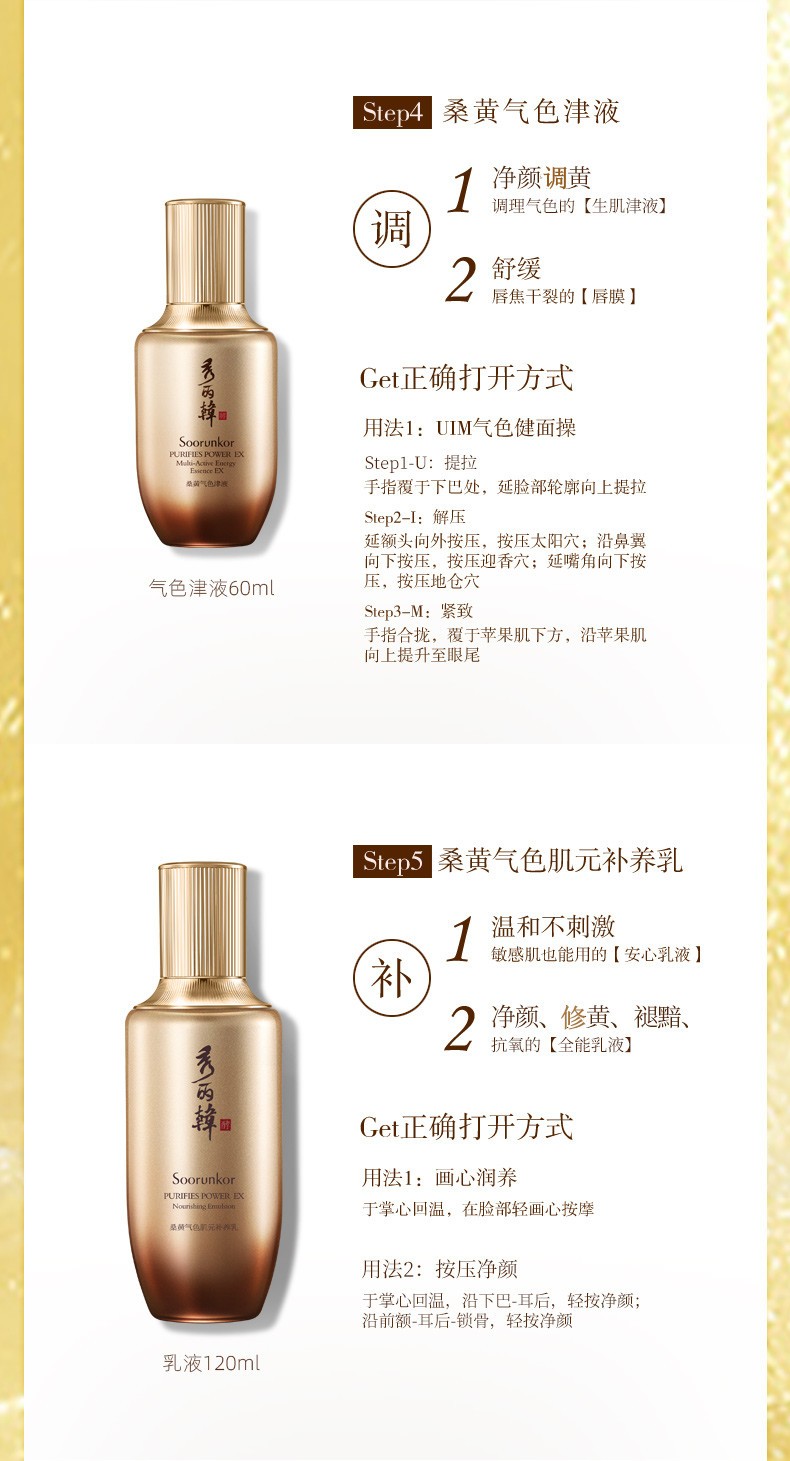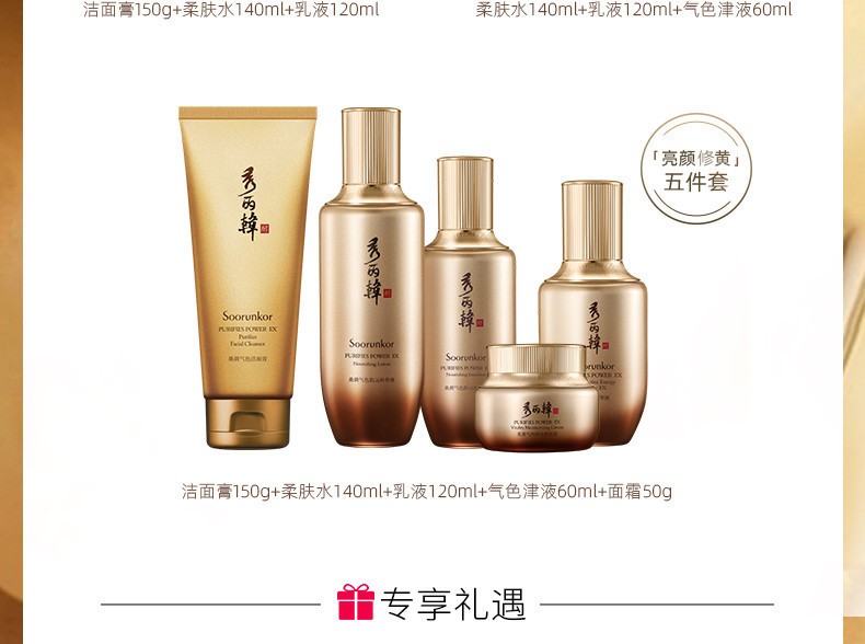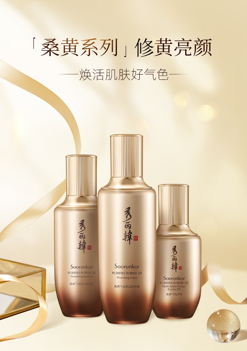 秀丽韩Soorunkor桑树桑黄水乳套装改善暗黄提亮调养红润肤色女神节礼物 洁面+水+乳+精华+面霜