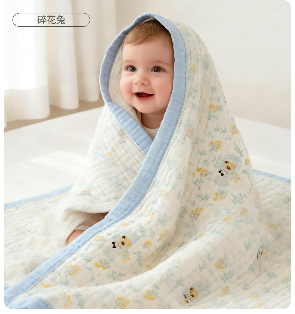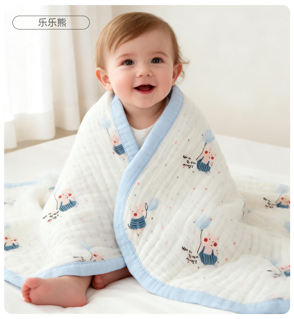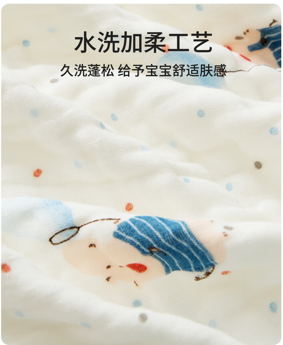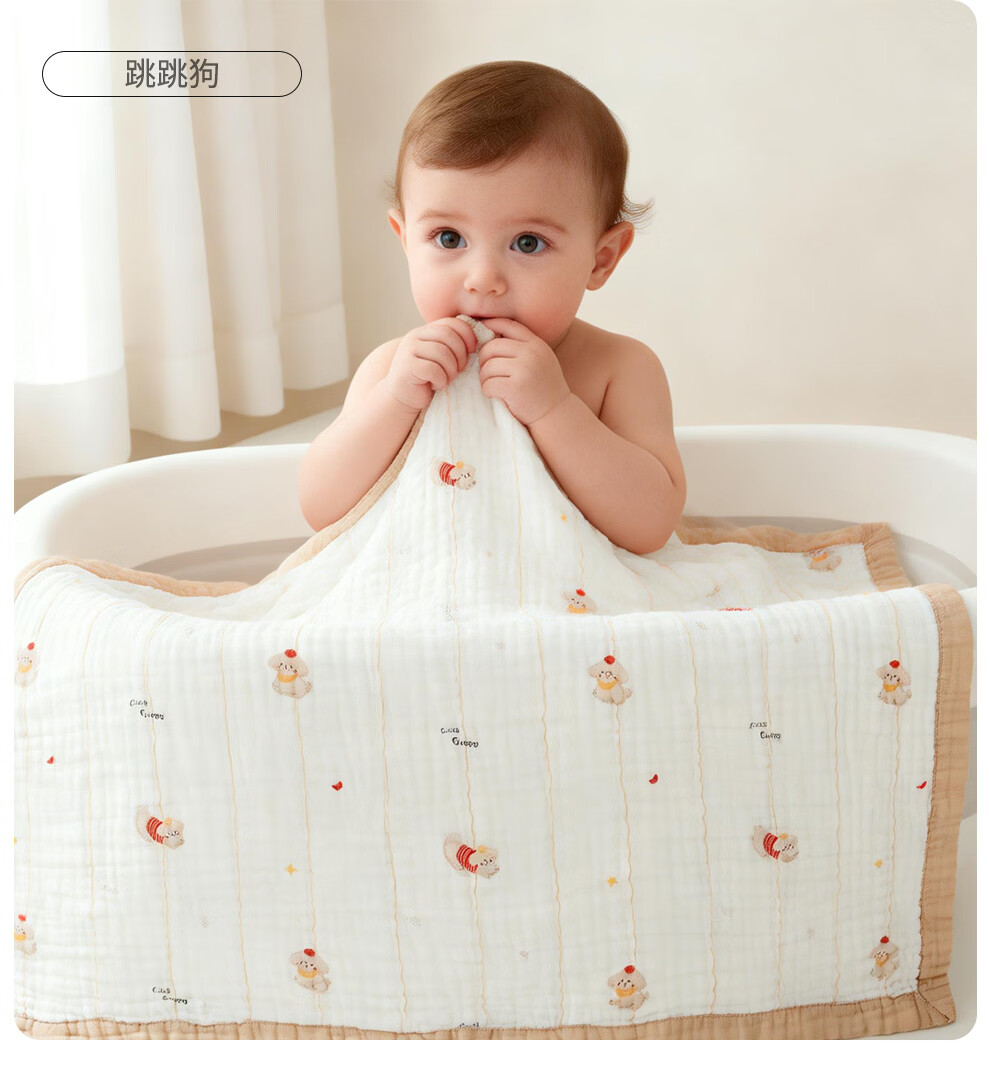 班杰威尔(Banjvall)婴儿浴巾纯棉6层纱布儿童浴巾新生儿盖毯初生宝宝洗澡包被包巾 跳跳狗【6层纯棉纱布-10A抗菌】 110*102cm