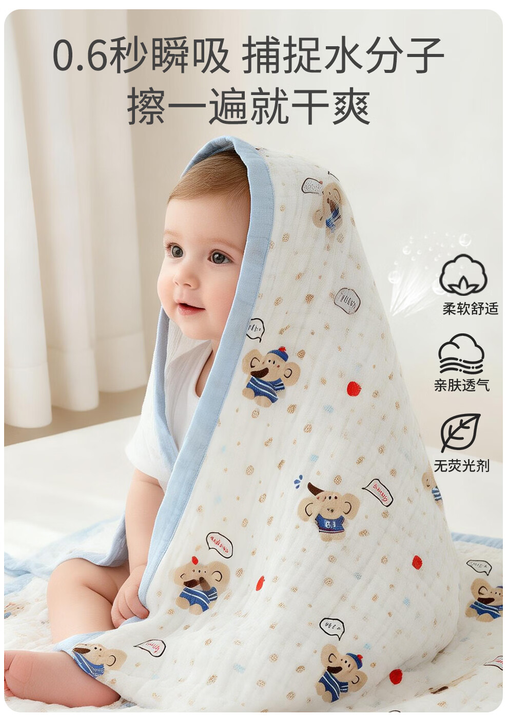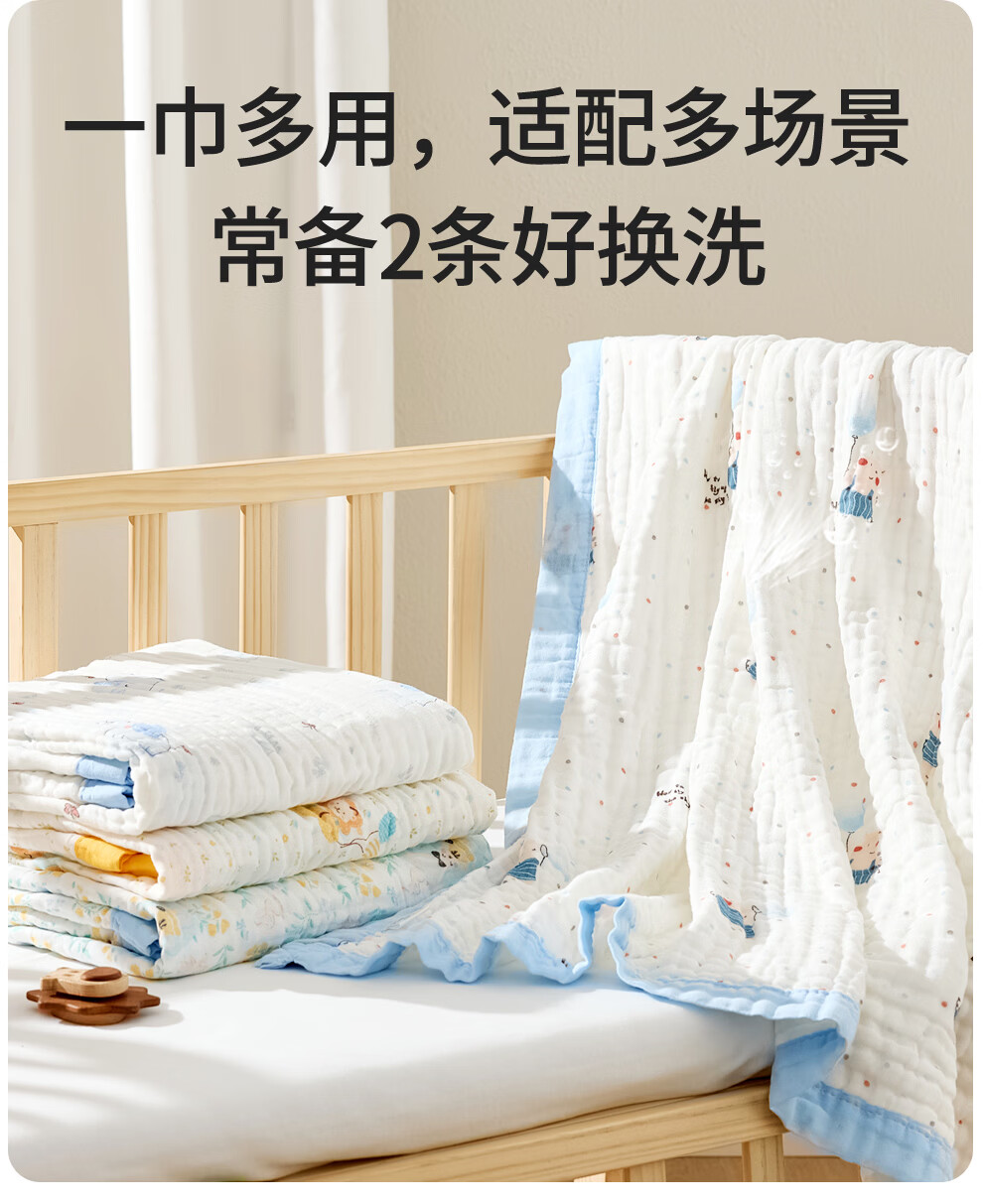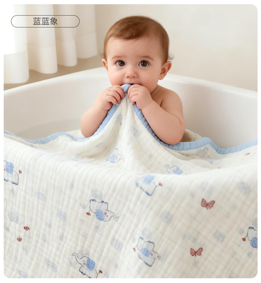 班杰威尔(Banjvall)婴儿浴巾纯棉6层纱布儿童浴巾新生儿盖毯初生宝宝洗澡包被包巾 跳跳狗【6层纯棉纱布-10A抗菌】 110*102cm