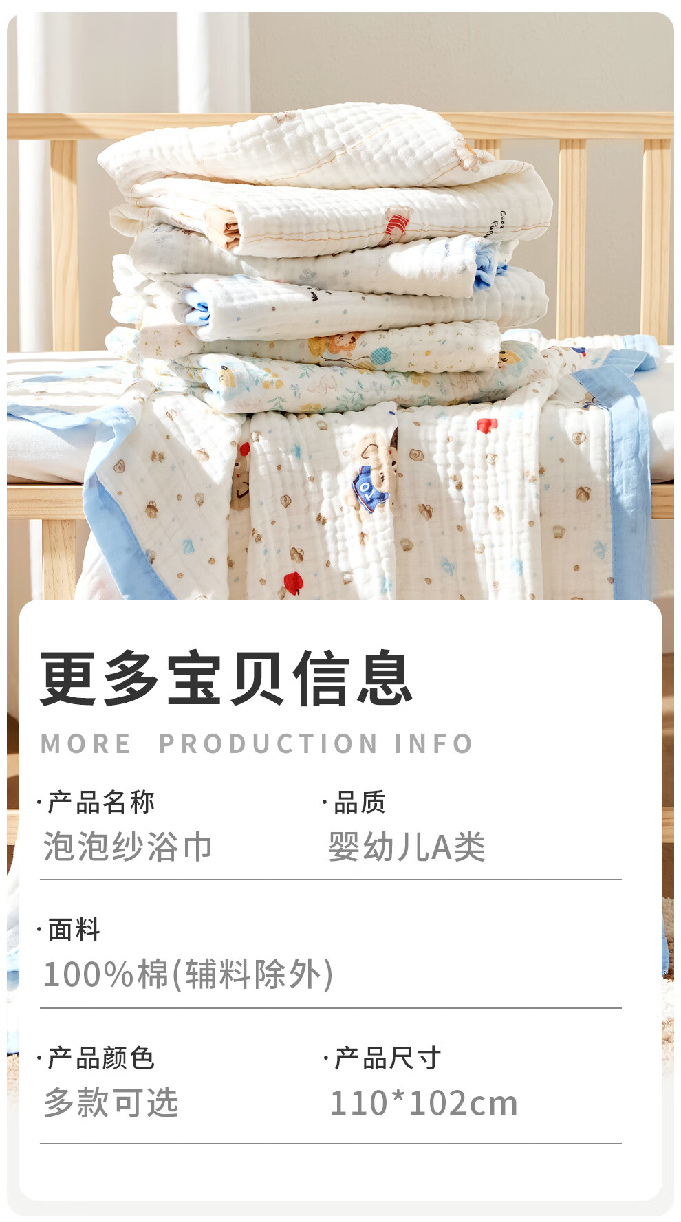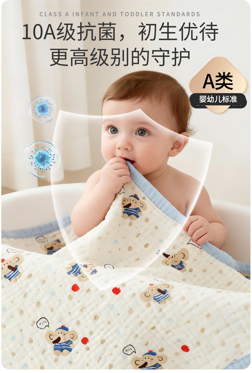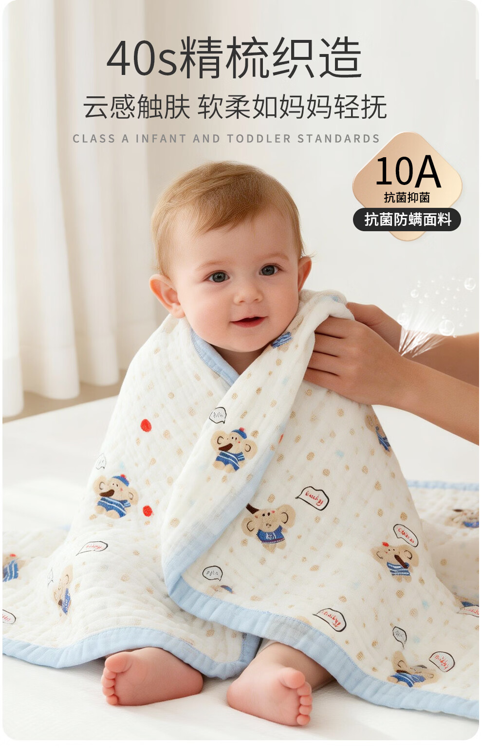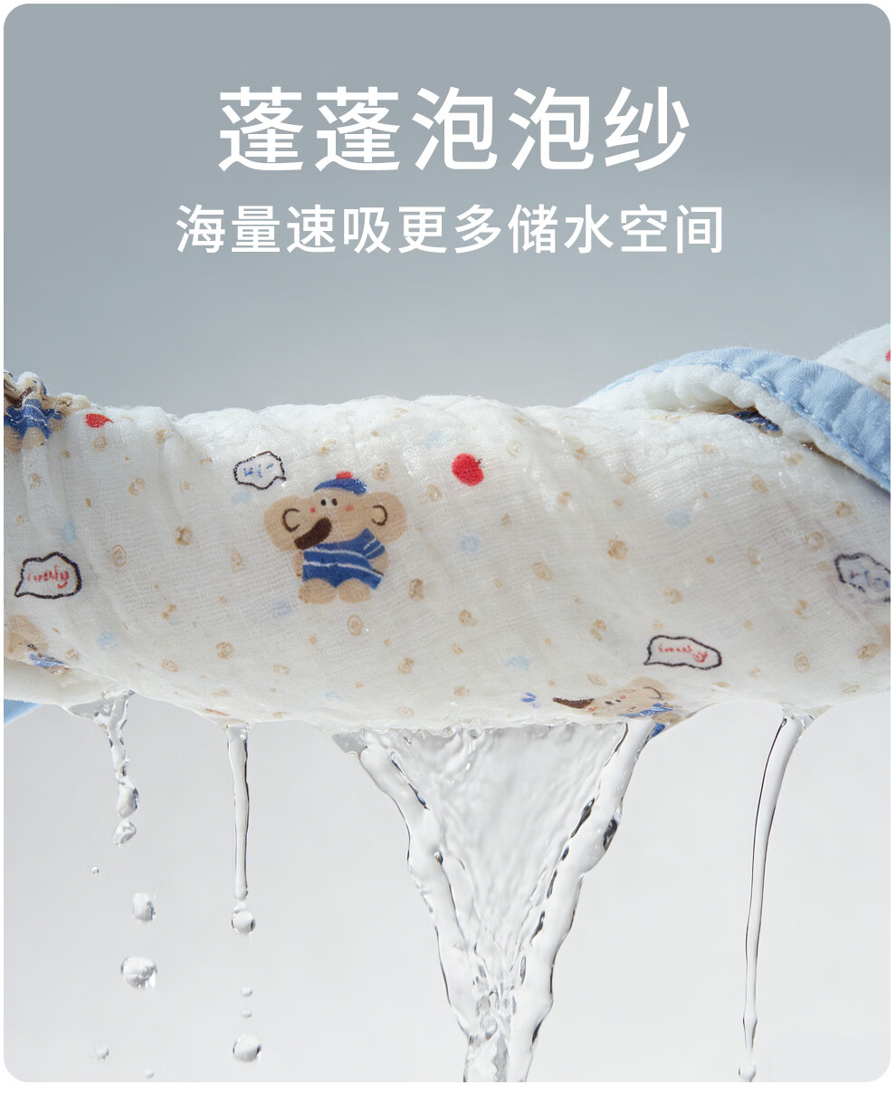 班杰威尔(Banjvall)婴儿浴巾纯棉6层纱布儿童浴巾新生儿盖毯初生宝宝洗澡包被包巾 跳跳狗【6层纯棉纱布-10A抗菌】 110*102cm
