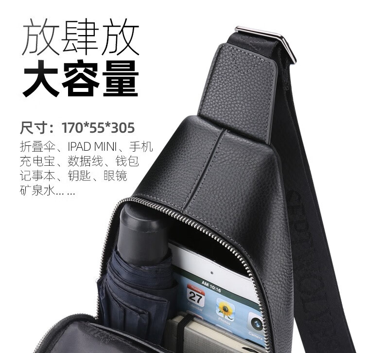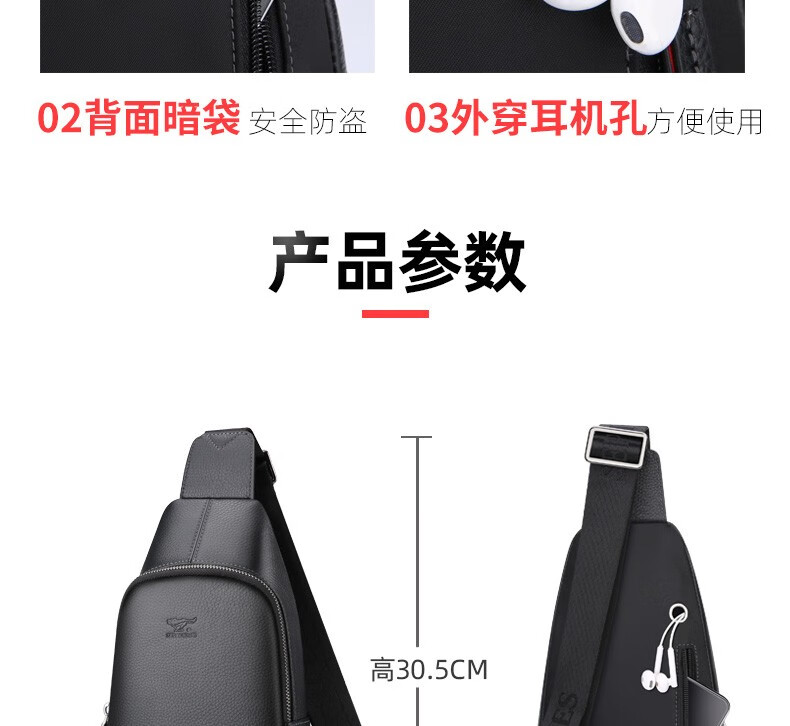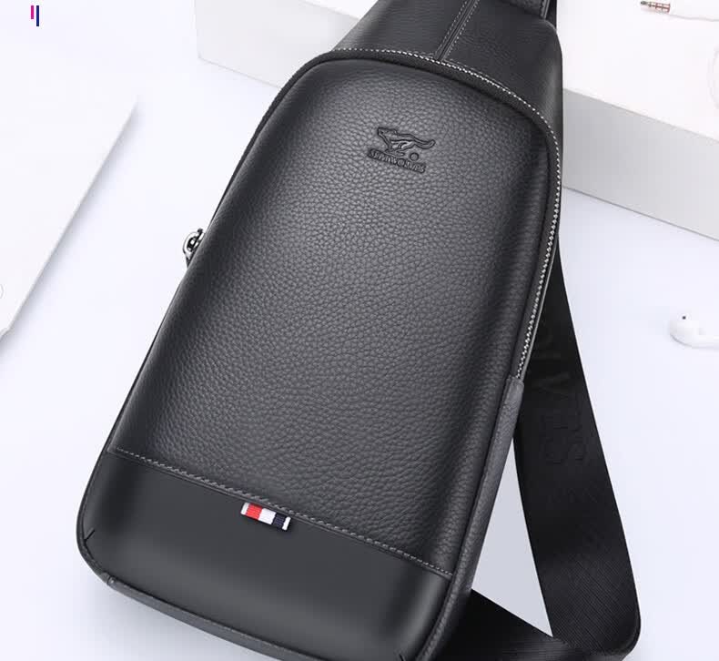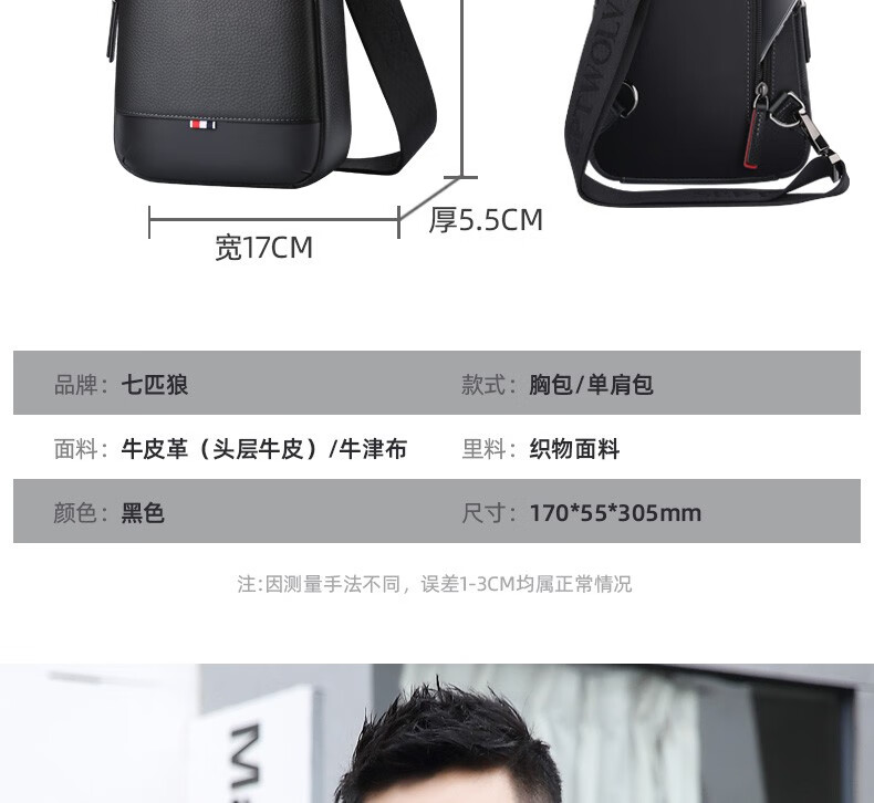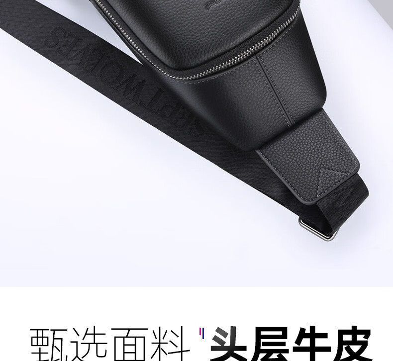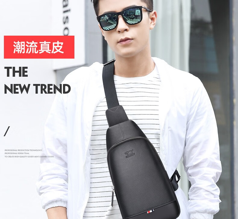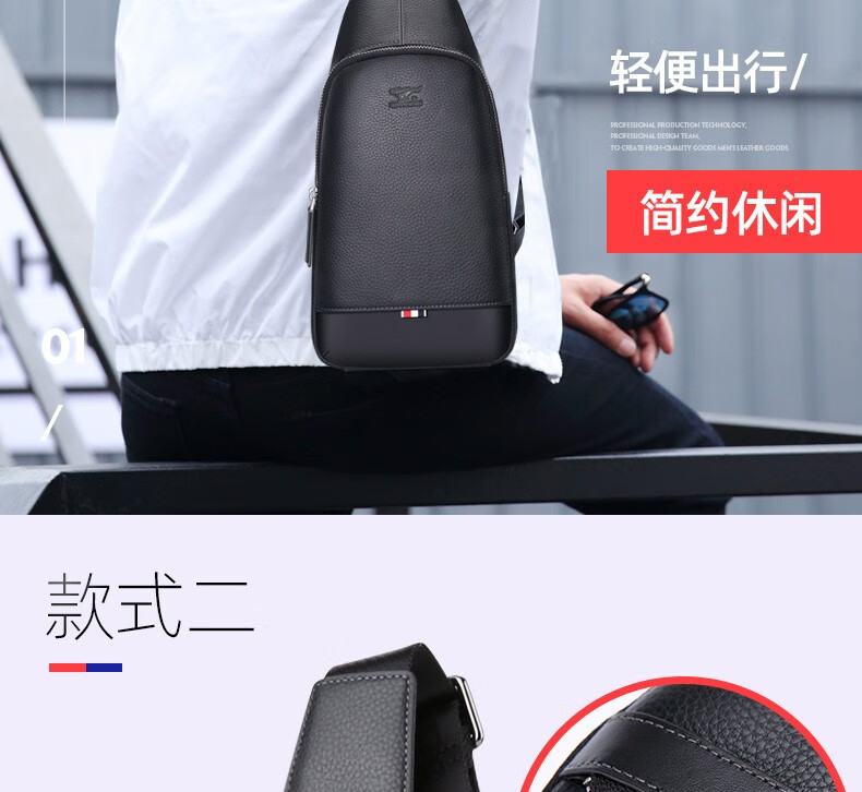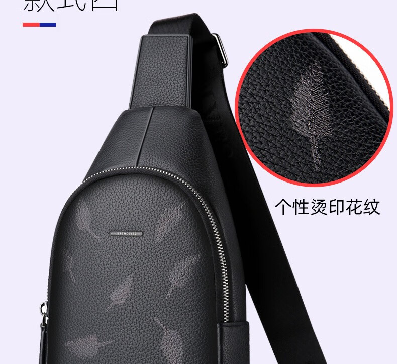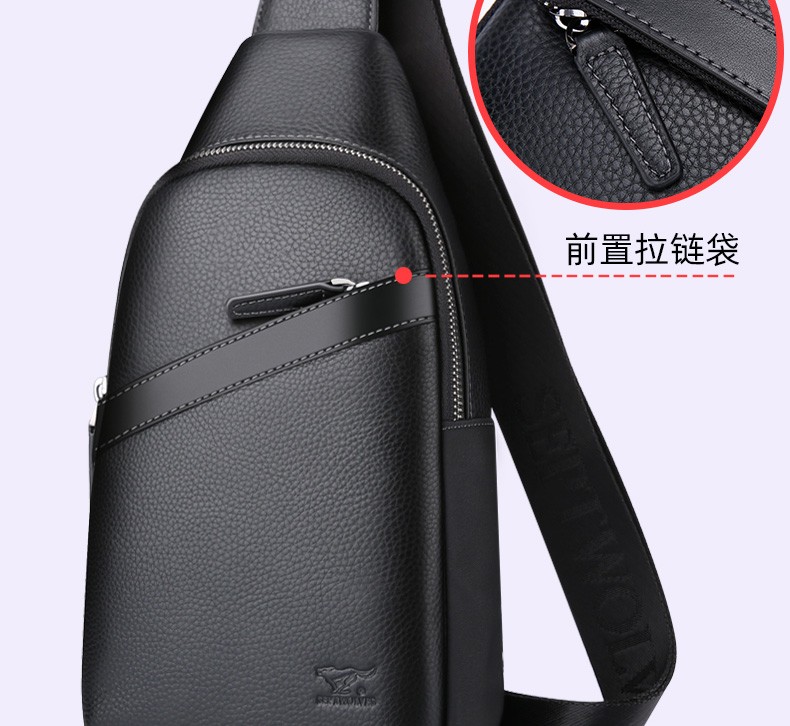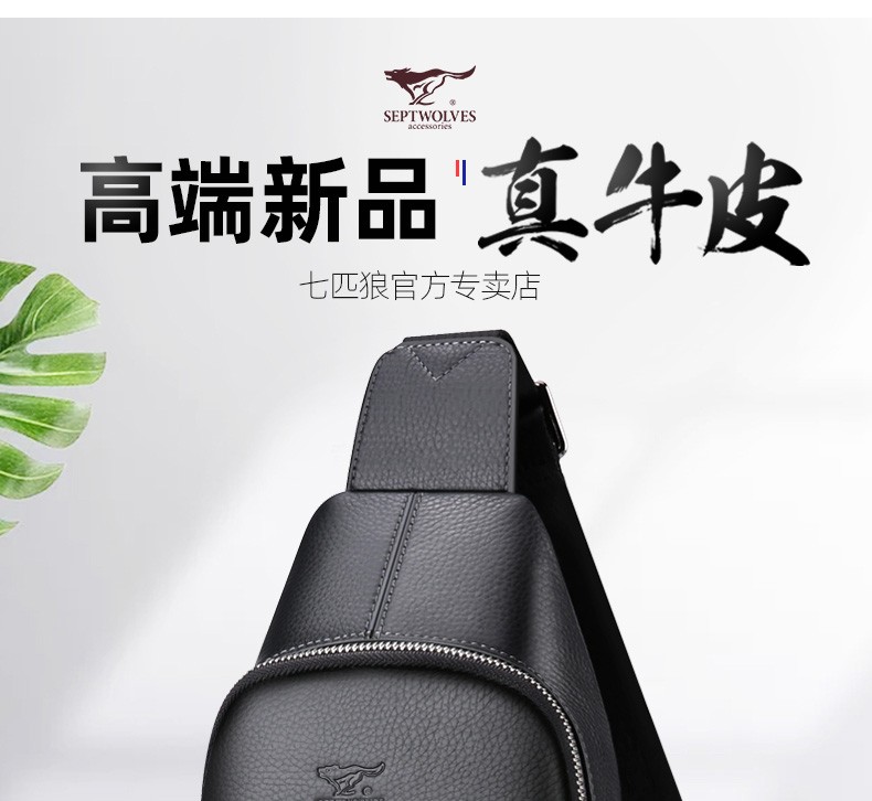 七匹狼胸包男真皮包包男士单肩包斜挎包大容量休闲男包小背包情人节送礼 款式一PD106507-1