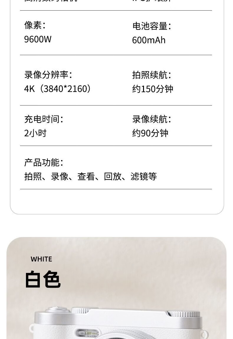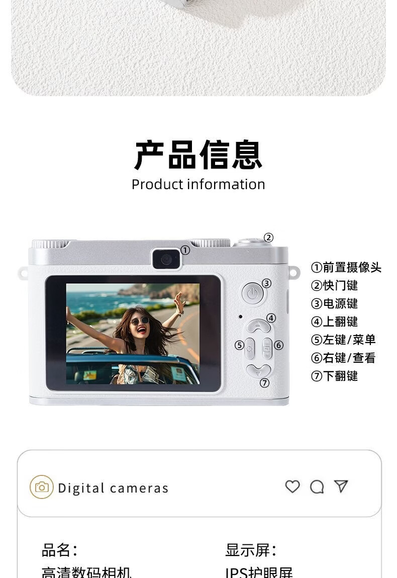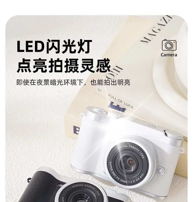 锁场ccd数码相机高像素校园照相机学生党拍照旅游专用可传手机相机 白【8X变焦+网红补光灯+多滤镜】 256G内存||可拍20万【送豪华礼盒