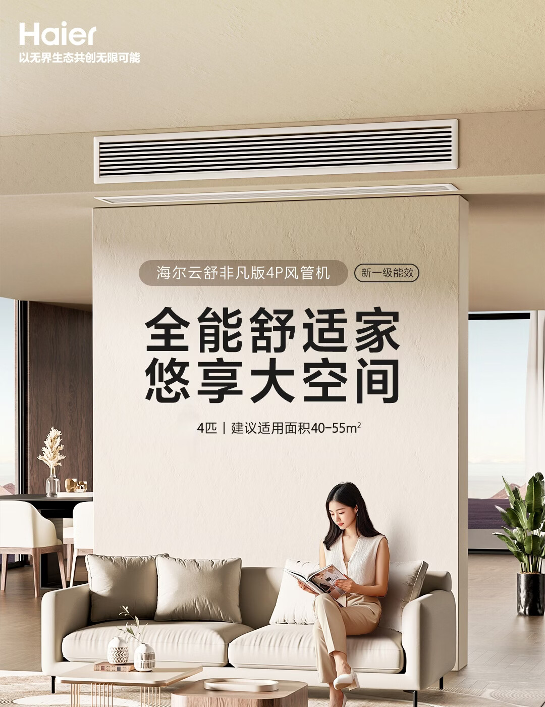 海尔中央空调4匹一拖一风管机一级能效全直流变频AI温湿精控50平客厅客餐一体适用KFRd-90NW/78ED81U1 云舒非凡4匹【50平大客厅首选 巨省电】