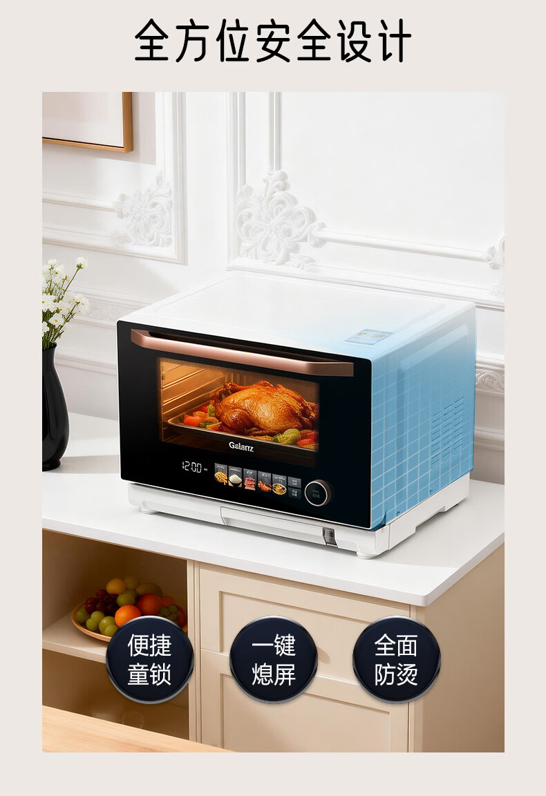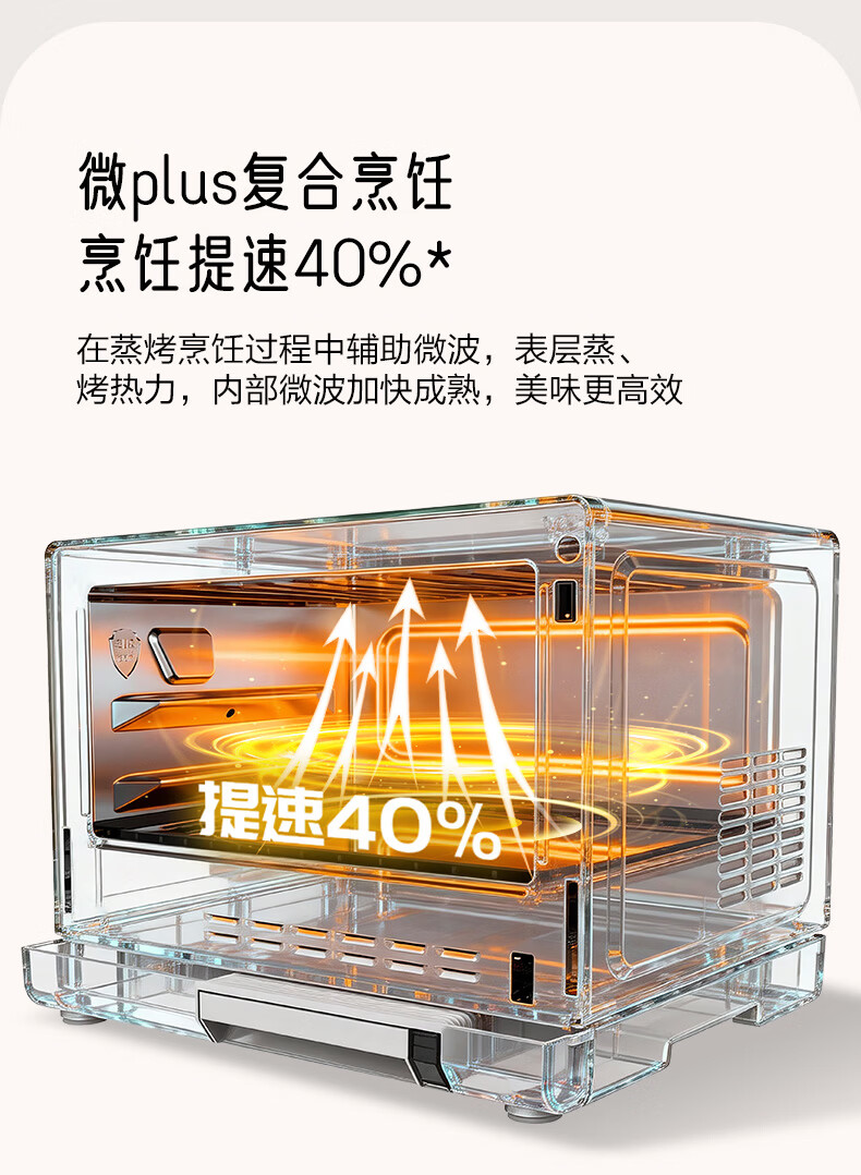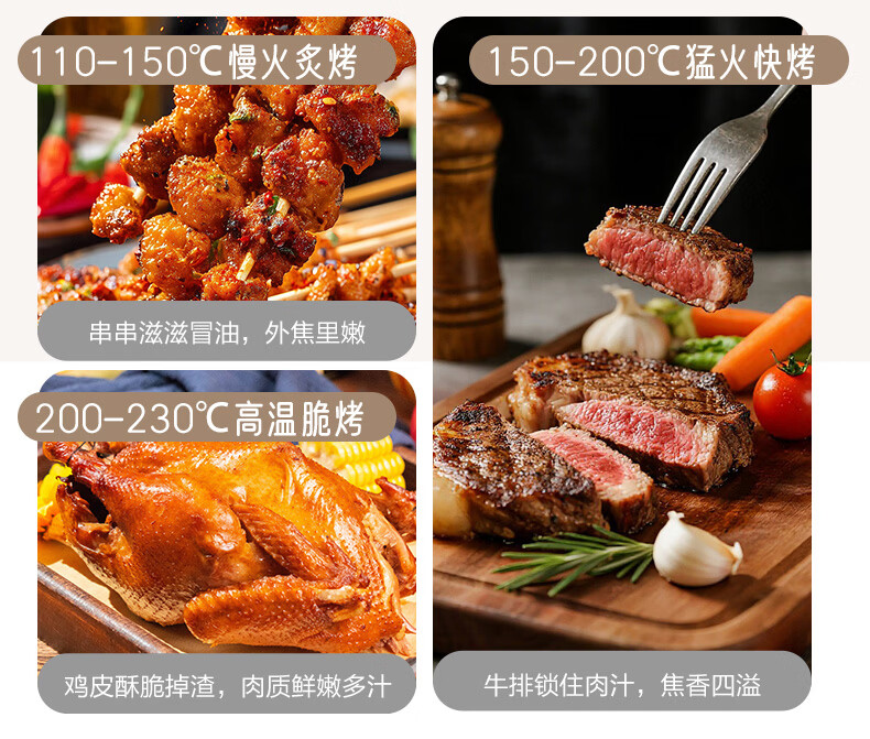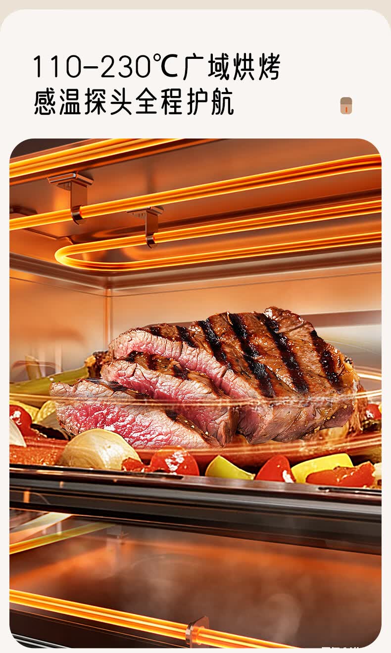 默克菲尔40L大容量智能风炉烤箱 独立控温 食品级搪瓷内腔 热风均匀循环加热
