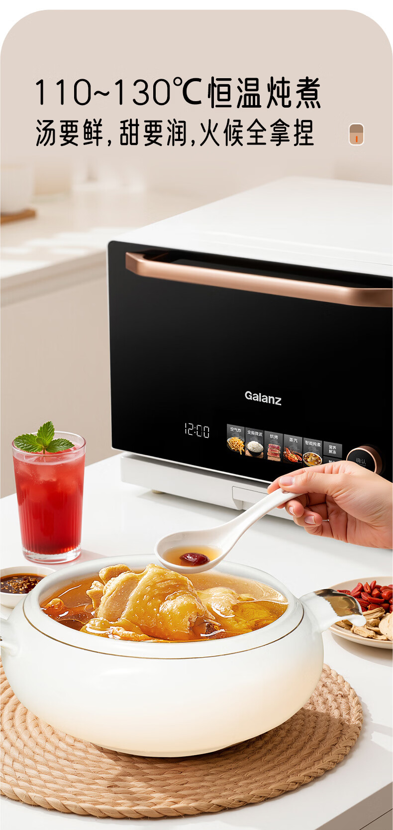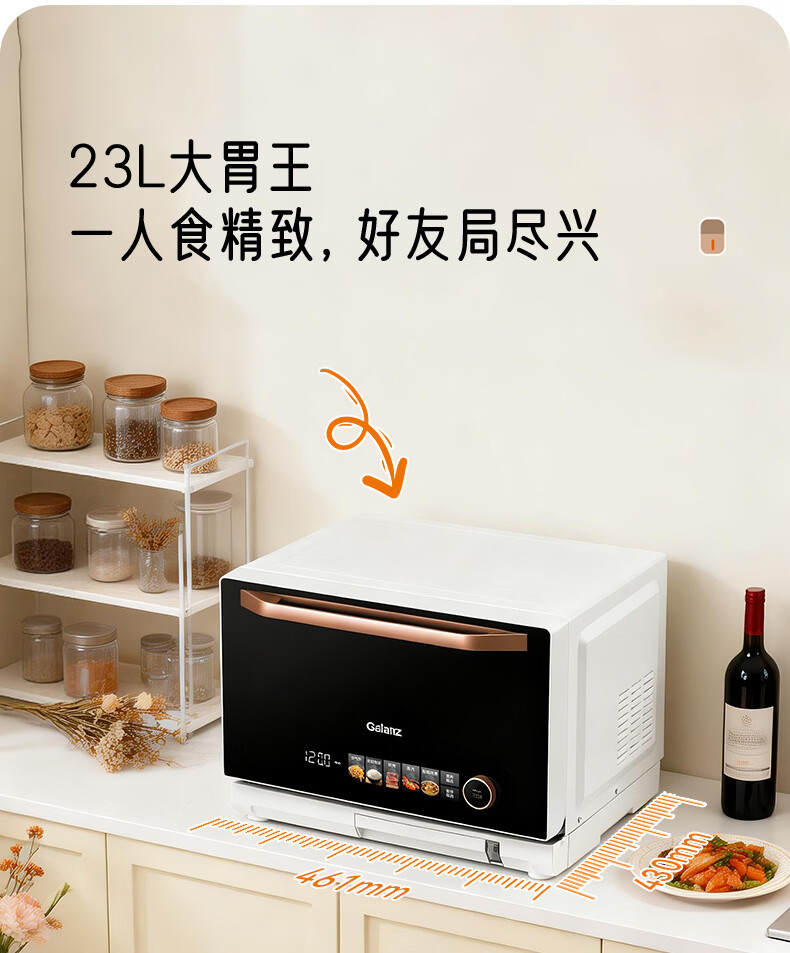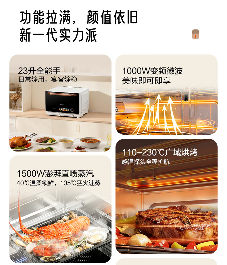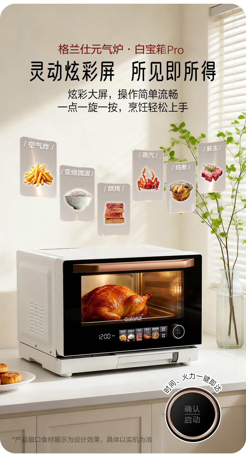 格兰仕(Galanz)变频微蒸烤炸炖一体机23L家用微波炉空气炸锅蒸烤箱电烤箱不锈钢内胆元气炉白宝箱RW升级款RYB(W0)