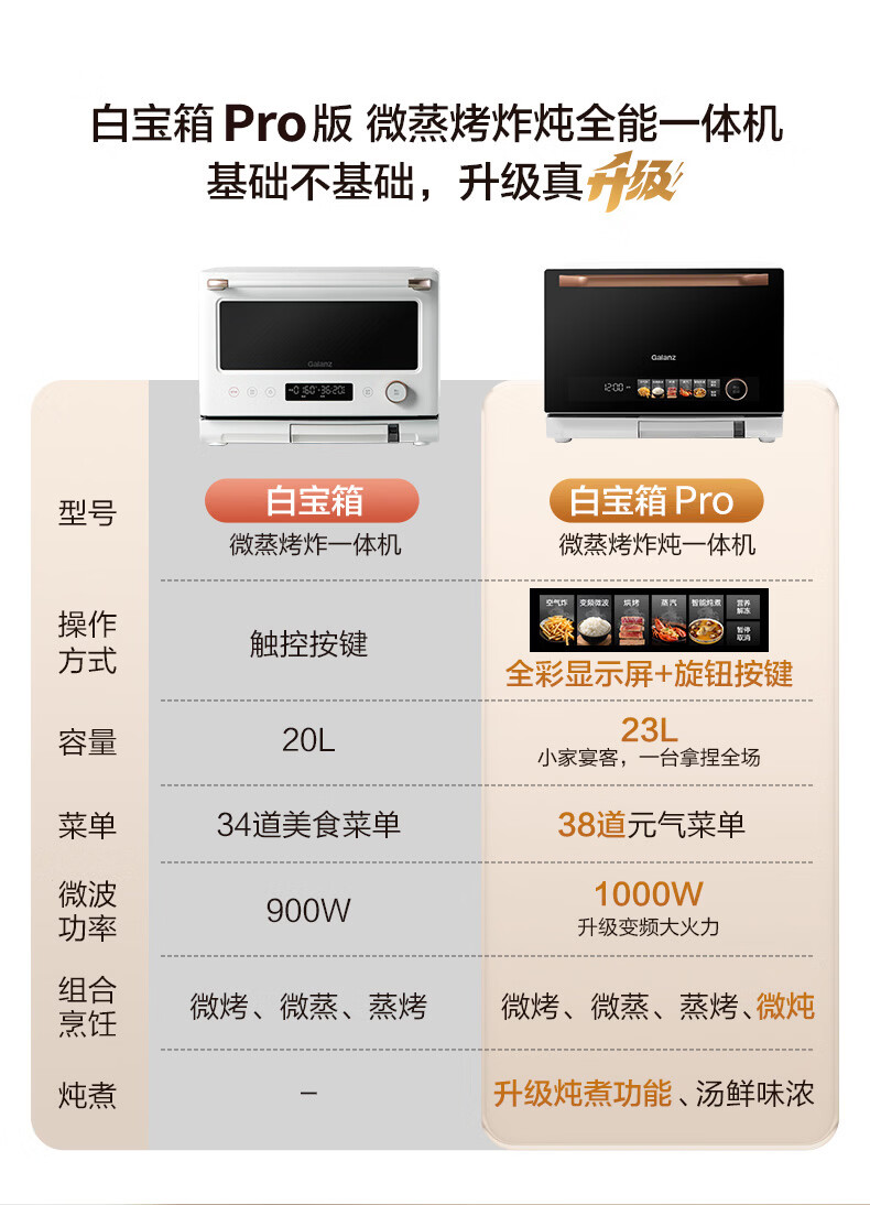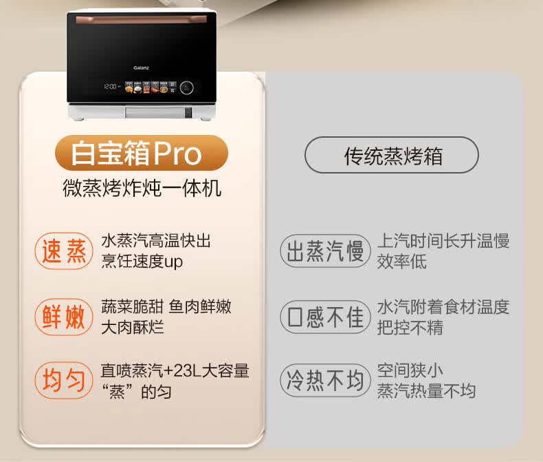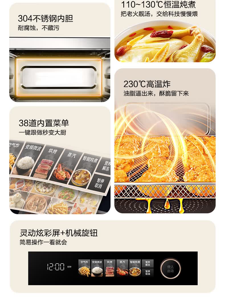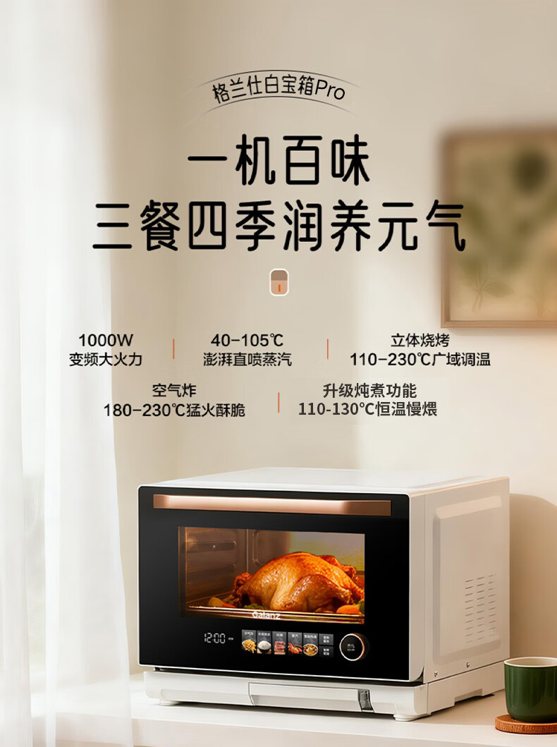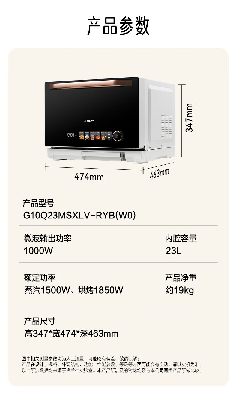 格兰仕(Galanz)变频微蒸烤炸炖一体机23L家用微波炉空气炸锅蒸烤箱电烤箱不锈钢内胆元气炉白宝箱RW升级款RYB(W0)