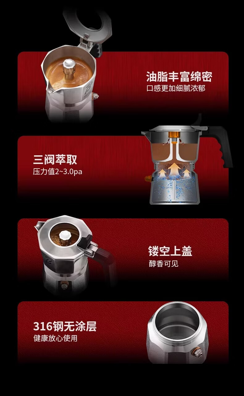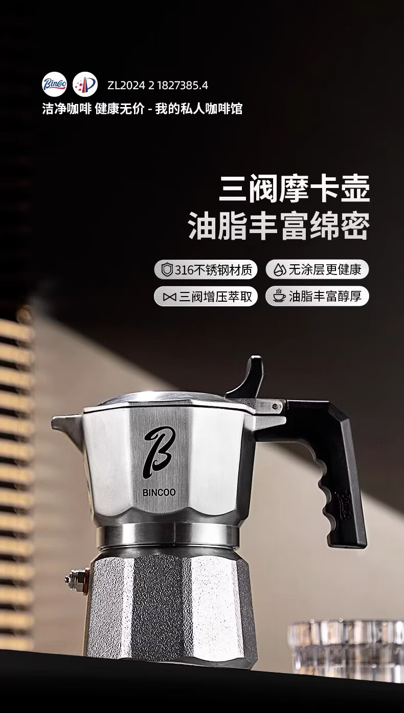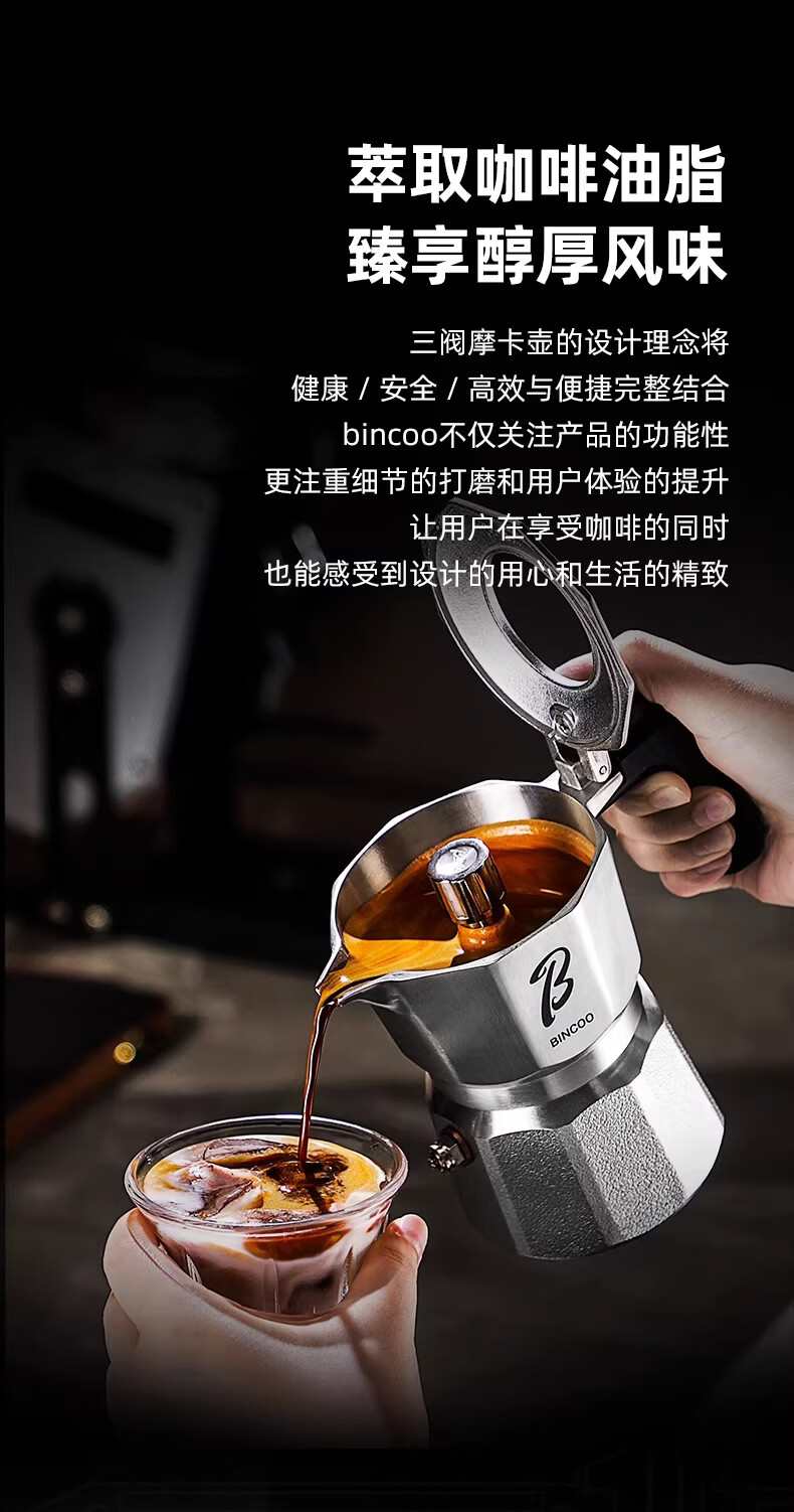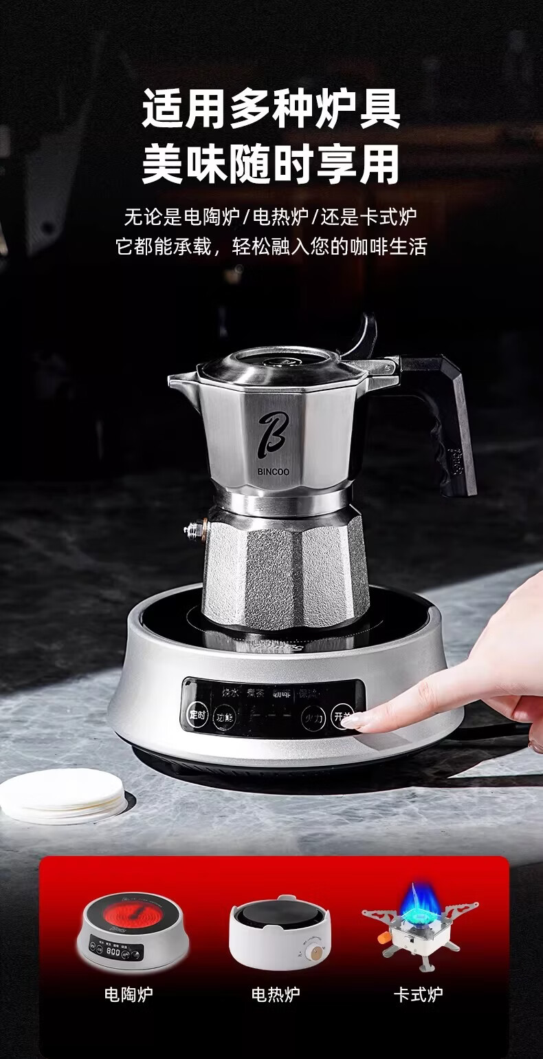 Bincoo316不锈钢三阀摩卡壶礼盒套装家用意式煮咖啡结婚生日礼物 3件套礼盒装【白色-电热炉】 三阀