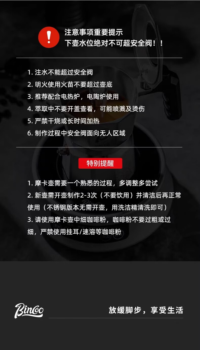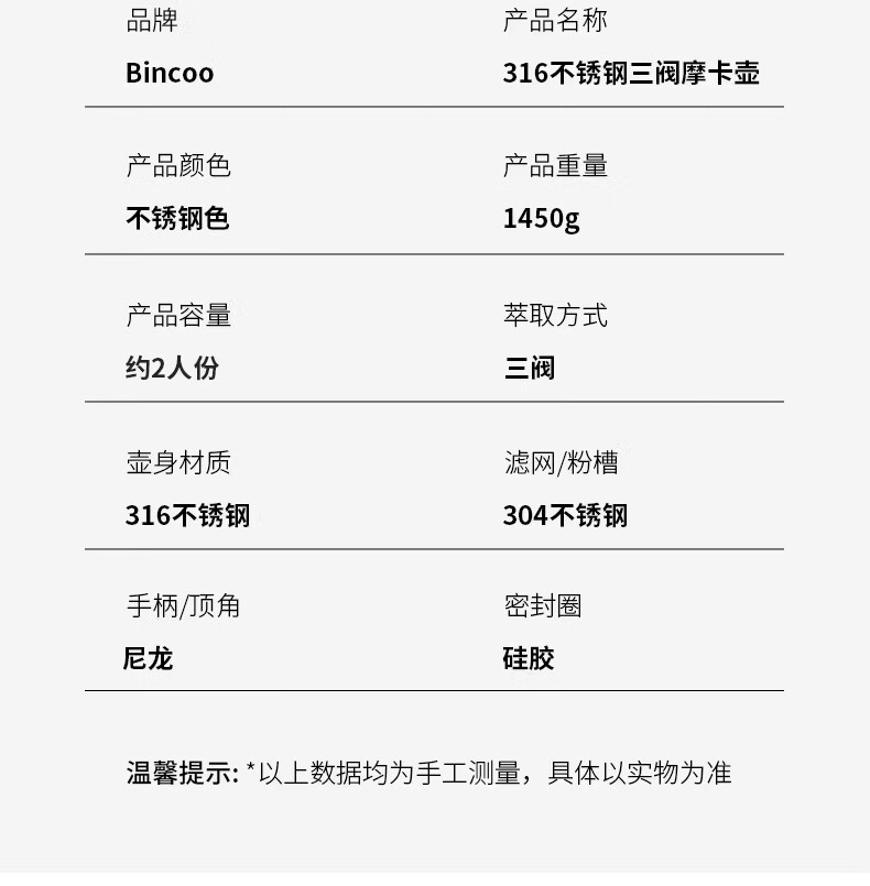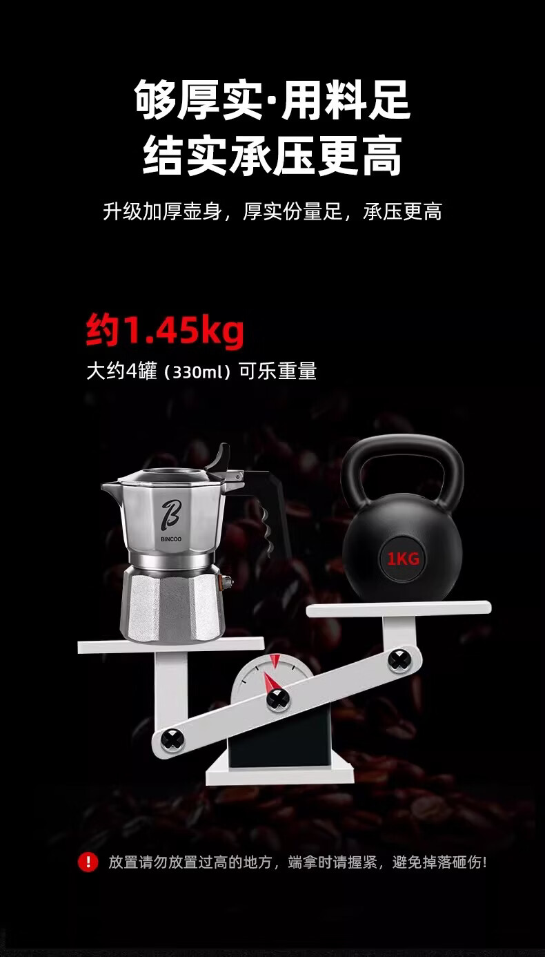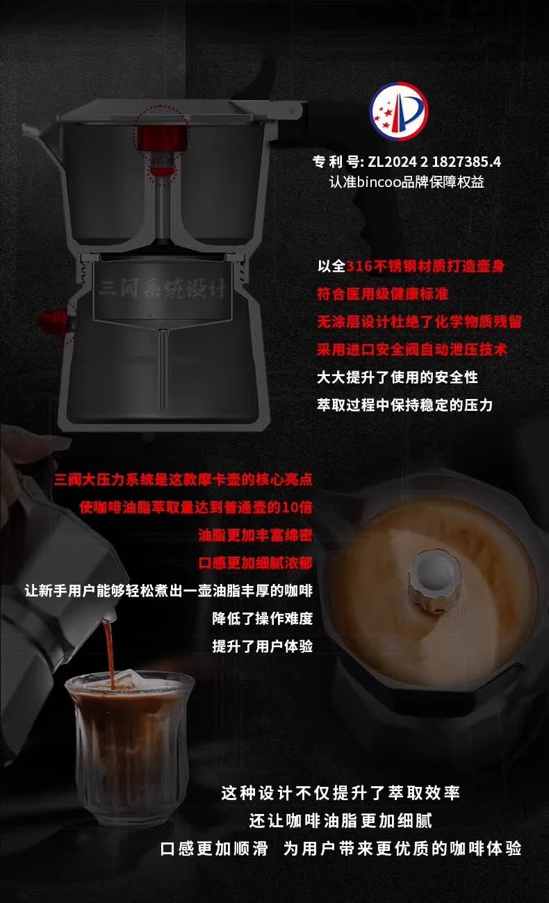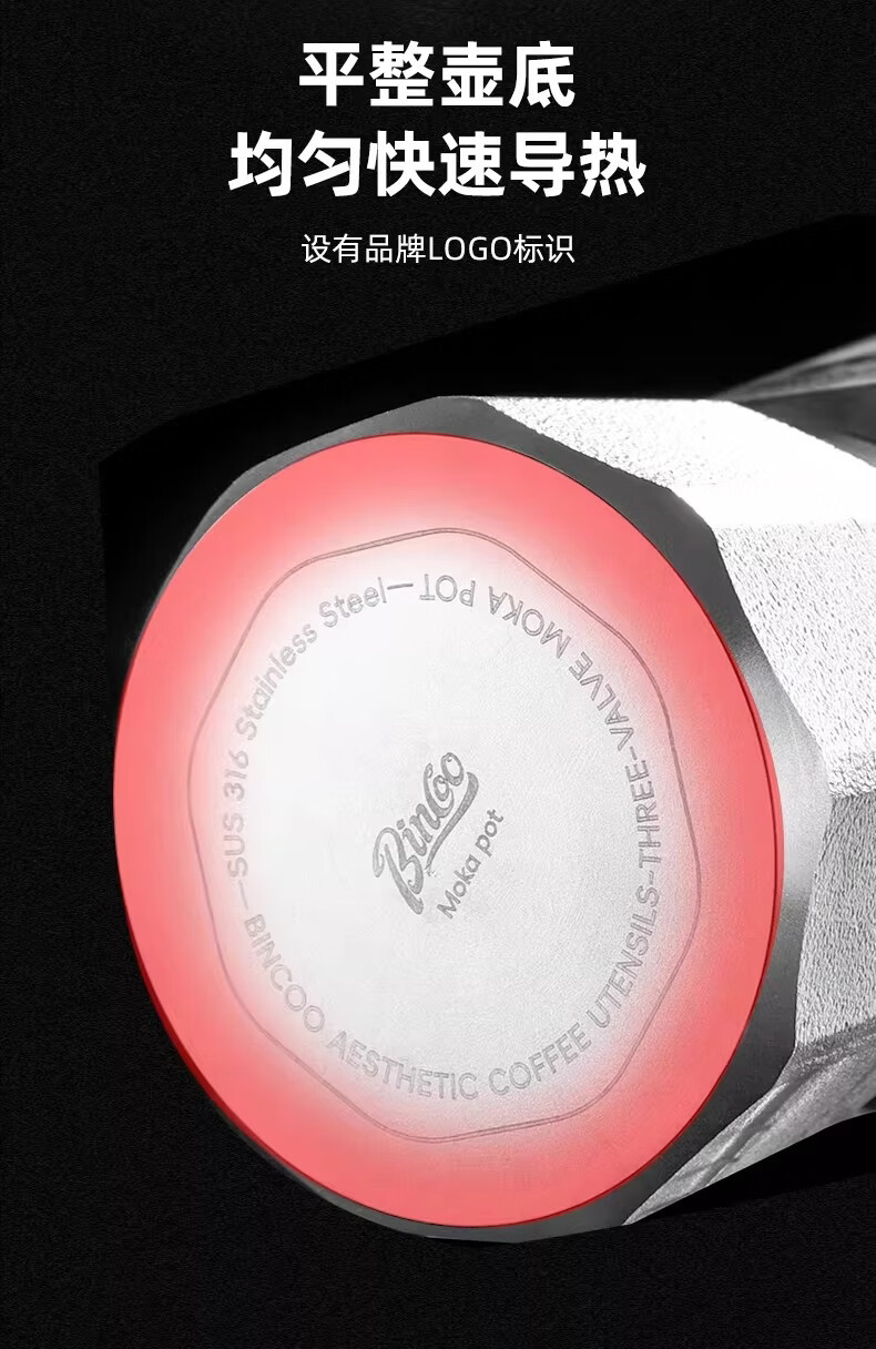 Bincoo316不锈钢三阀摩卡壶礼盒套装家用意式煮咖啡结婚生日礼物 3件套礼盒装【白色-电热炉】 三阀