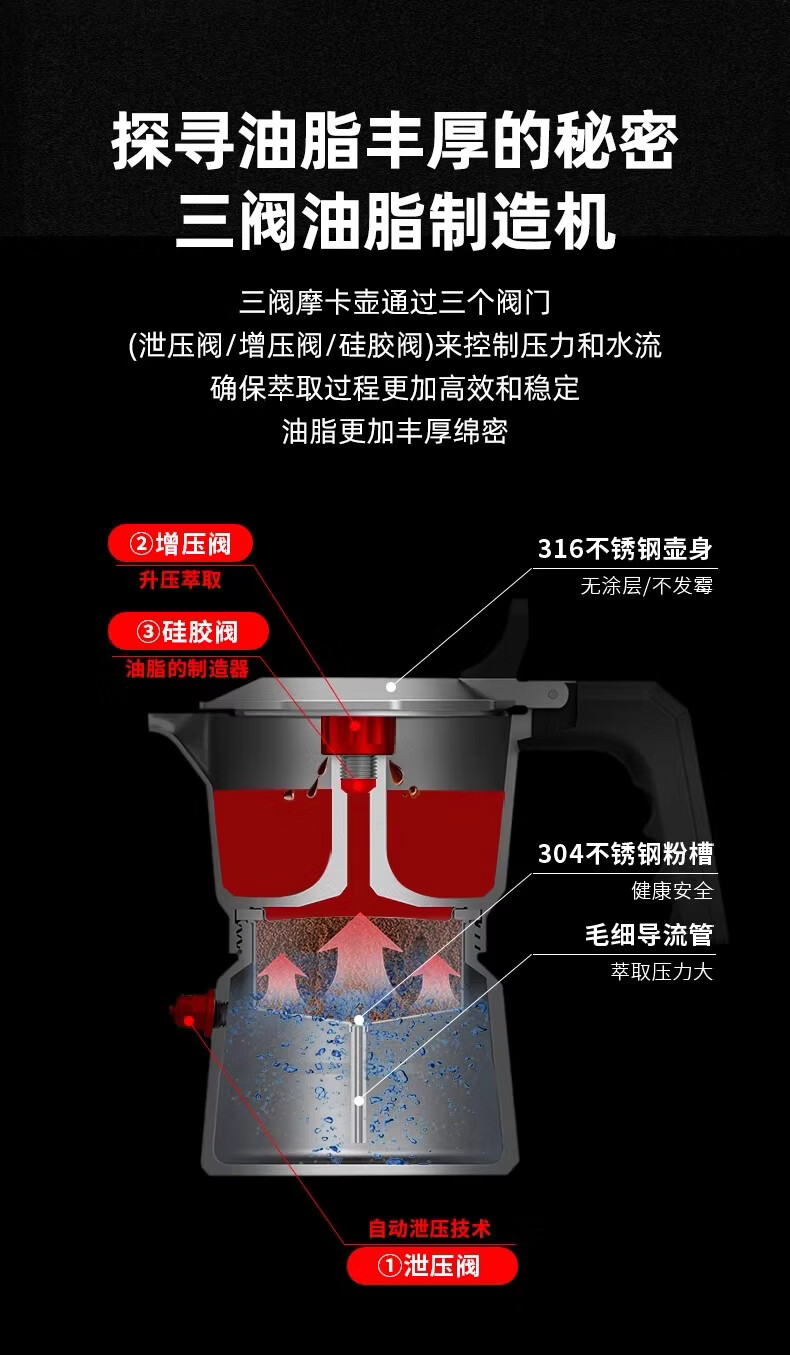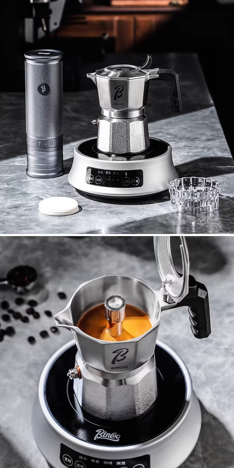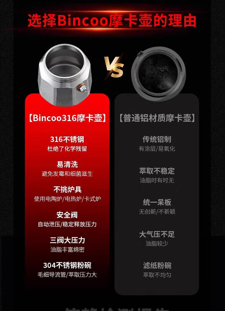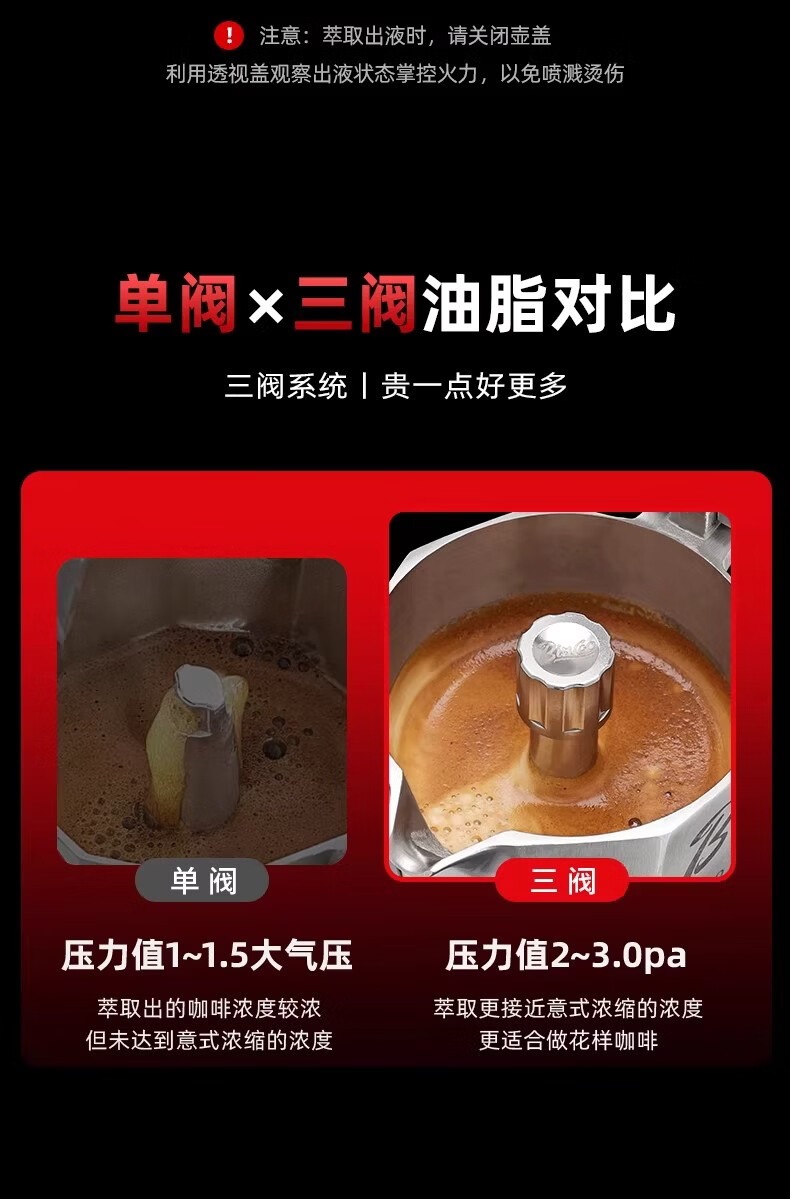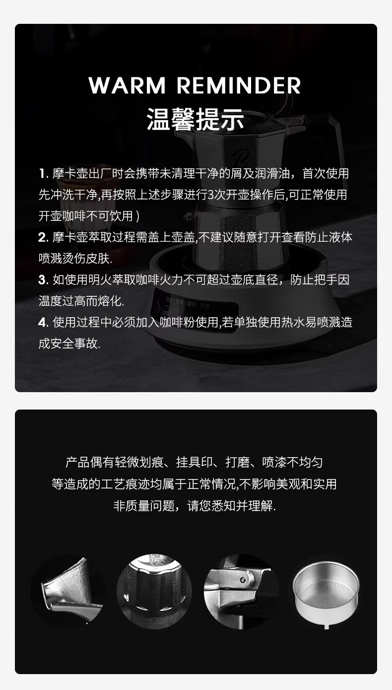 Bincoo316不锈钢三阀摩卡壶礼盒套装家用意式煮咖啡结婚生日礼物 3件套礼盒装【白色-电热炉】 三阀