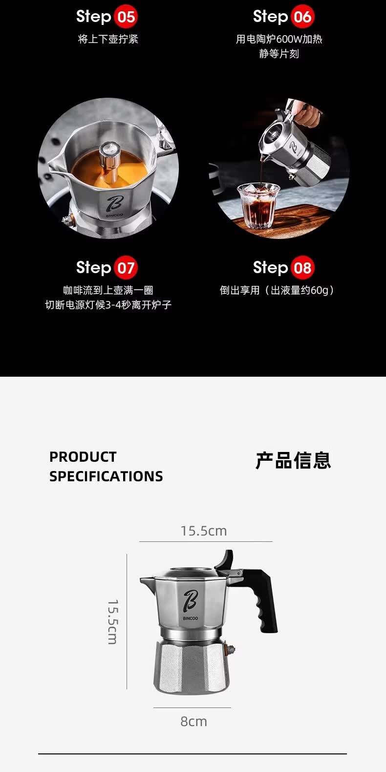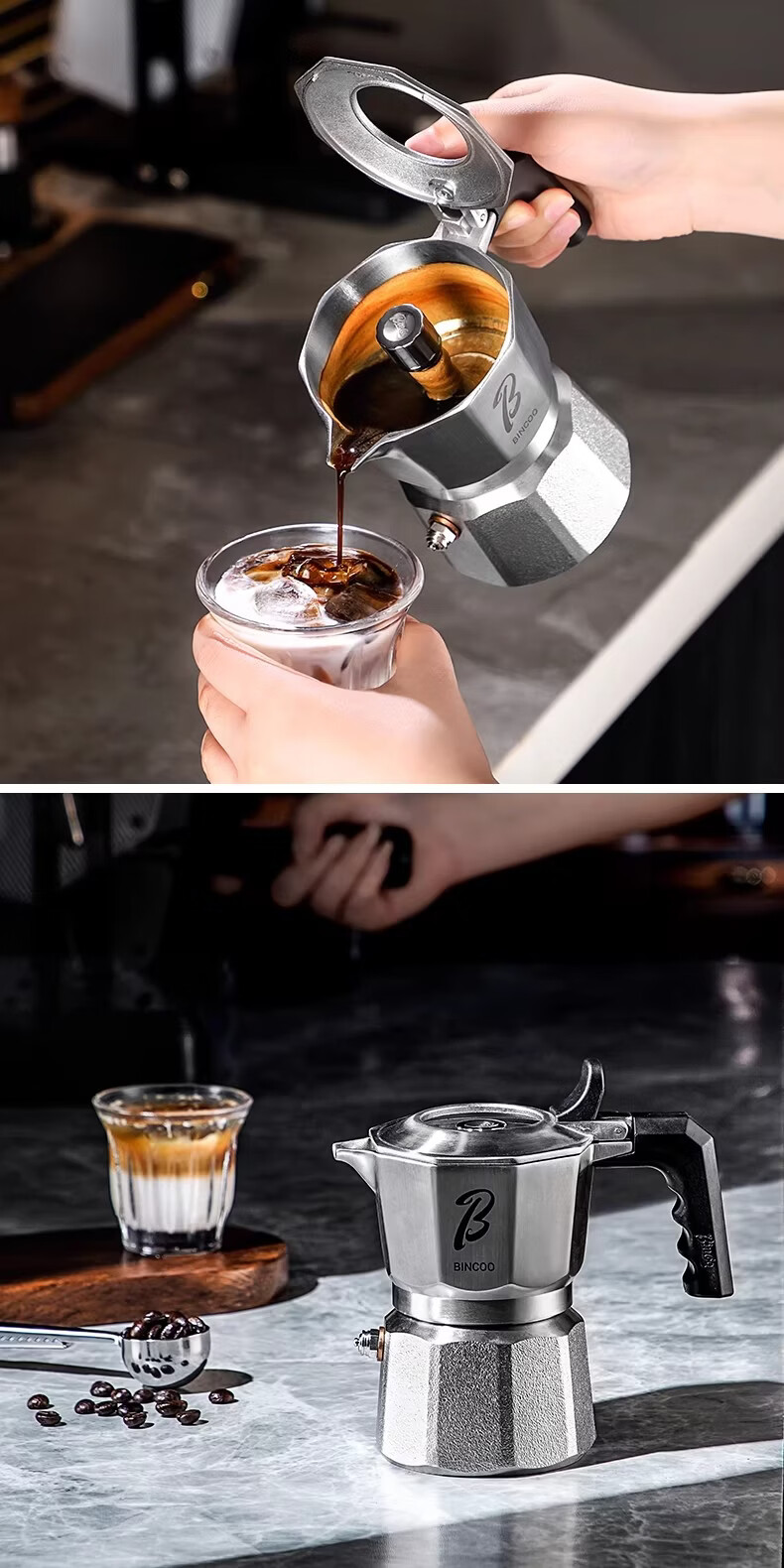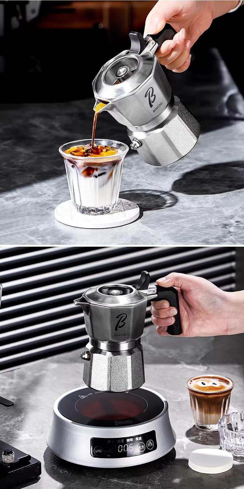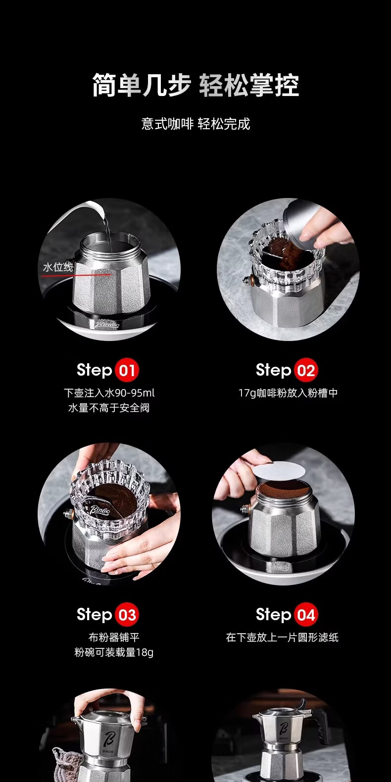 Bincoo316不锈钢三阀摩卡壶礼盒套装家用意式煮咖啡结婚生日礼物 3件套礼盒装【白色-电热炉】 三阀