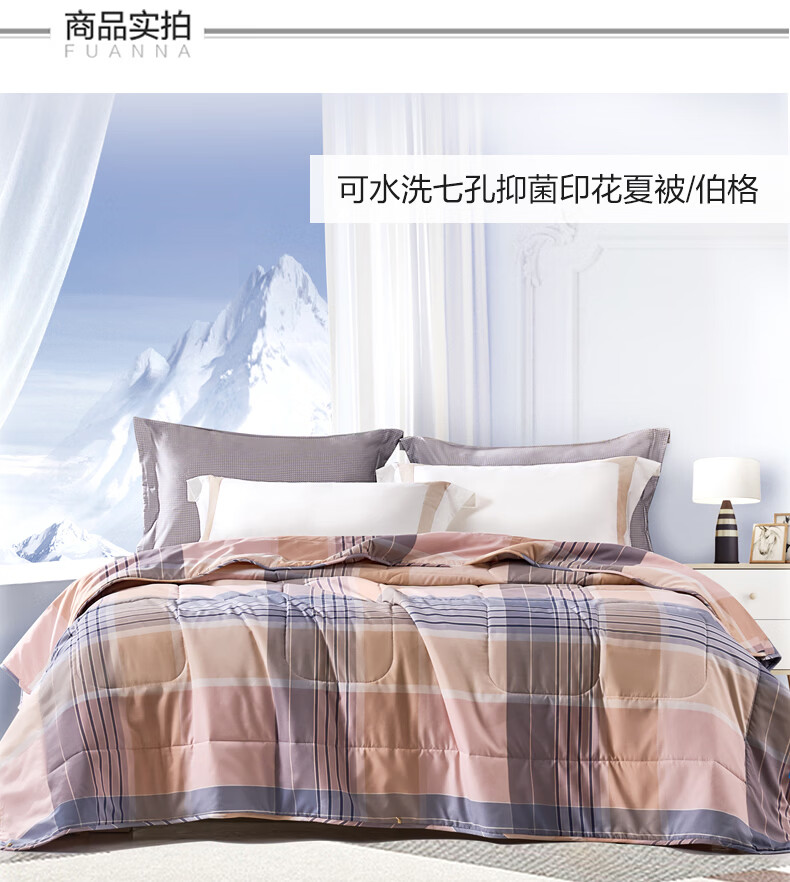 富安娜 夏凉被空调被抑菌可机洗印花纤维单人双人夏天薄被子 【抑菌可机洗】伯格咖 203cm*229cm