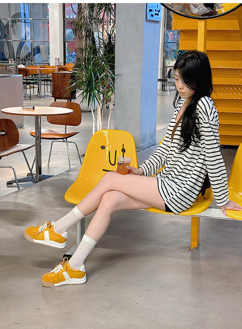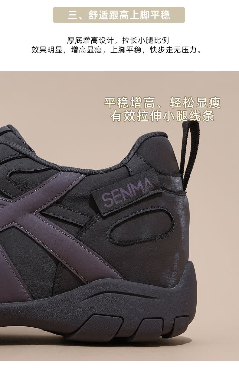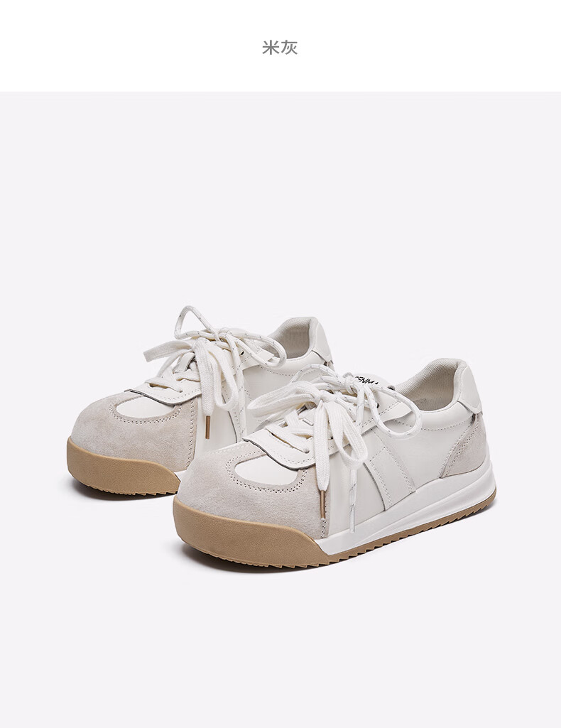 森馬(senma)德训鞋女鞋春夏复古内增高平底阿甘鞋透气百搭运动休闲鞋 米灰色(四季款) 37