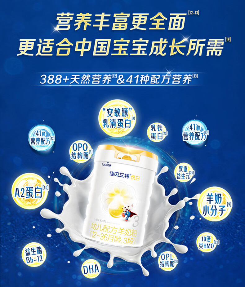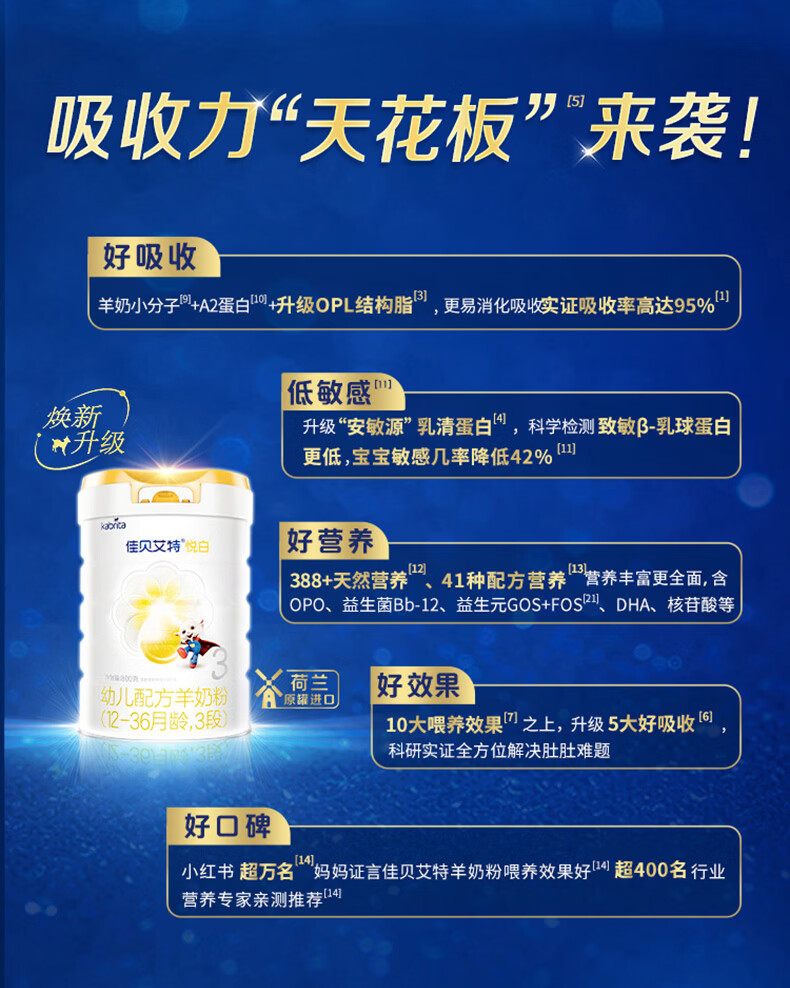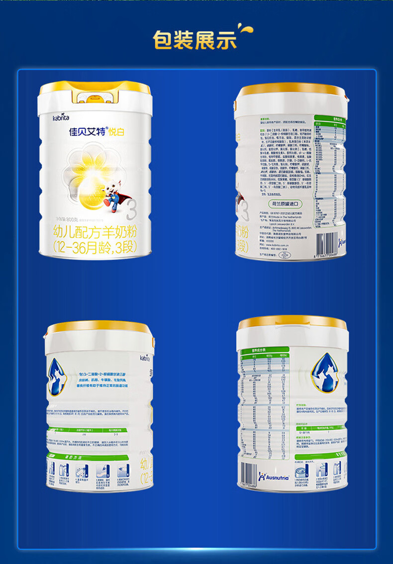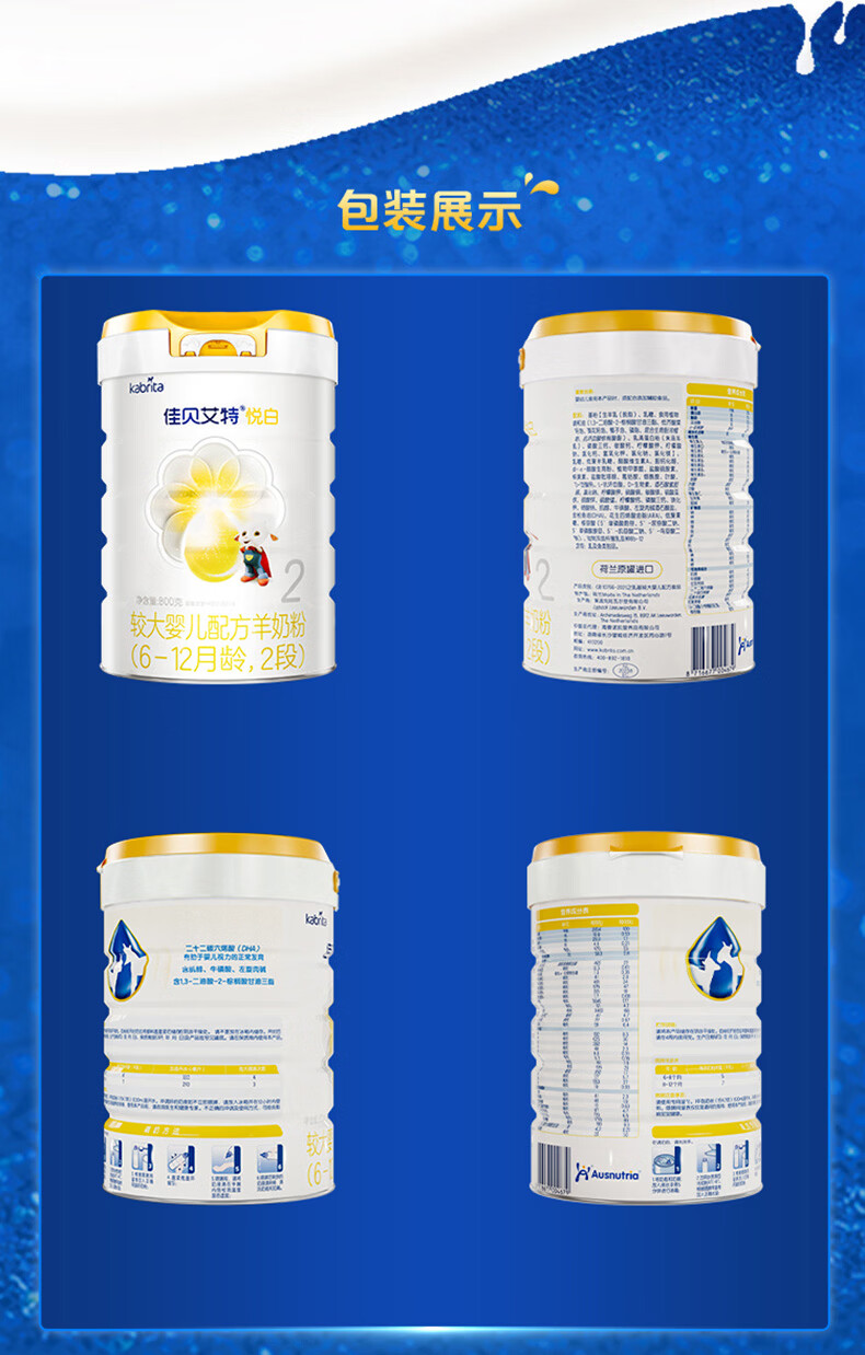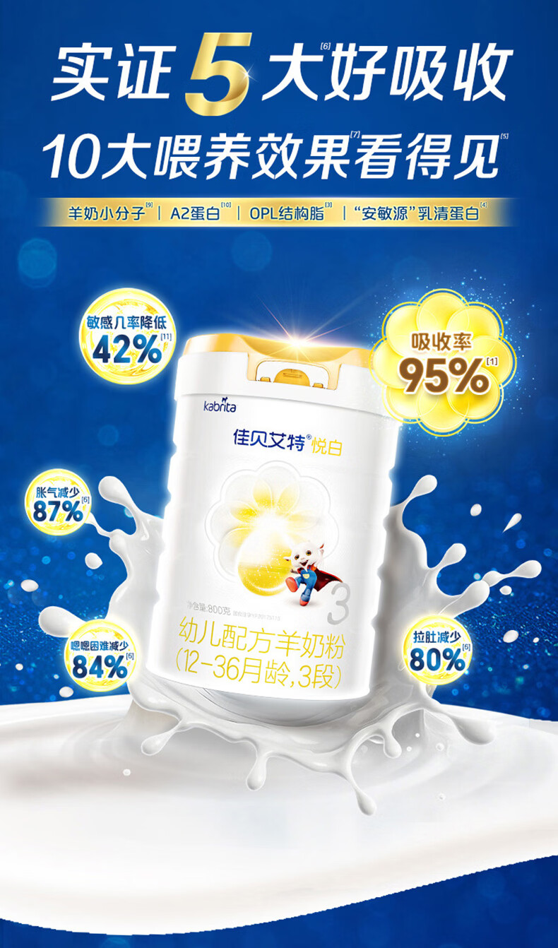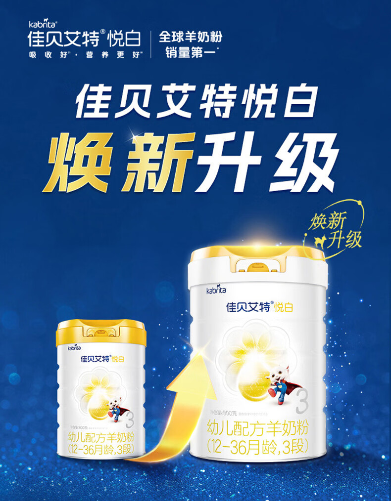 佳贝艾特(Kabrita)新国标羊奶粉悦白 荷兰原装原罐进口【新升级】 3段 800g 6罐