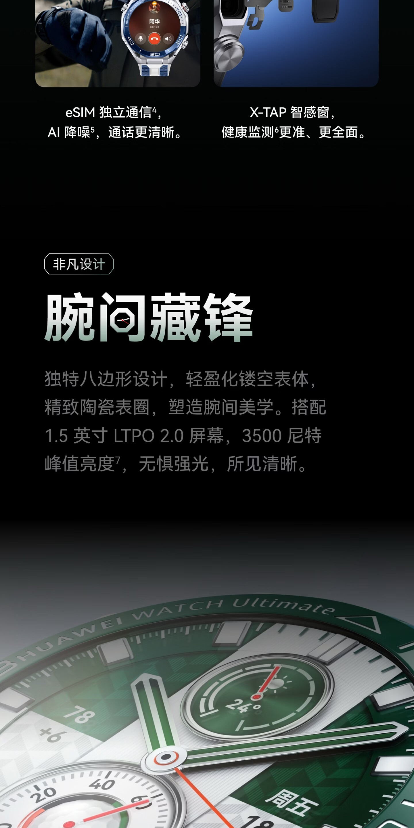 HUAWEI WATCH Ultimate 2 非凡探索 旷野绿华为智能手表 专业高尔夫 海豚声呐通信北斗卫星语音消息