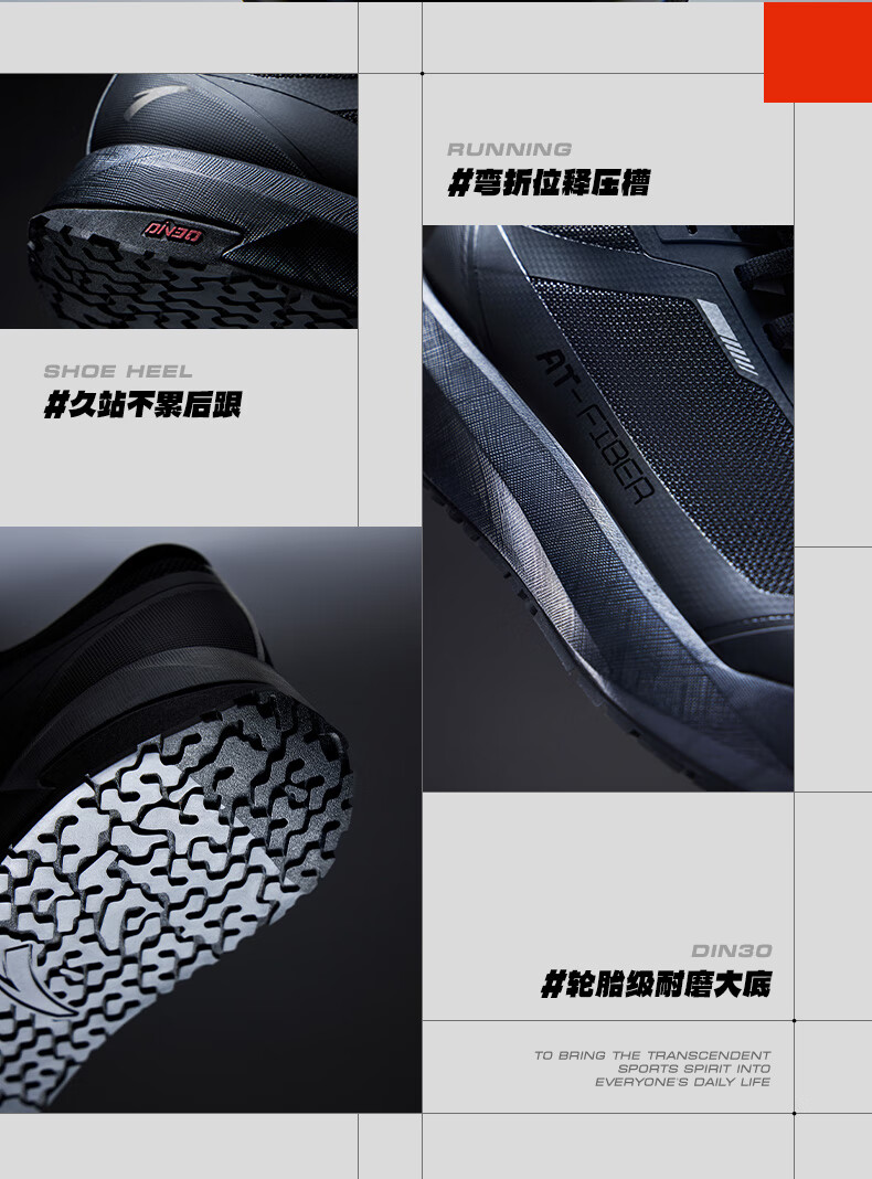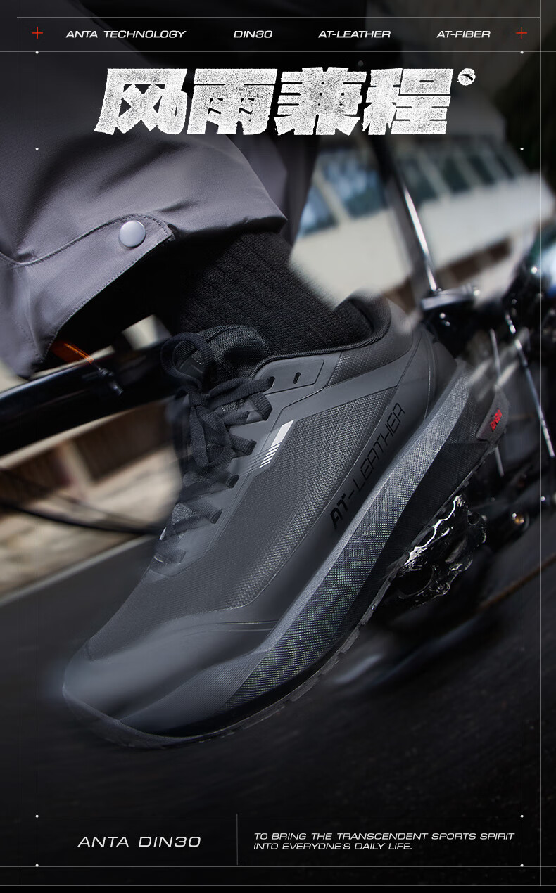 安踏风雨兼程【Z哥同款】Din30橡胶防滑耐磨跑步鞋通勤运动鞋男户外鞋 【京东独享色】基础黑-2 43 (男9.5)