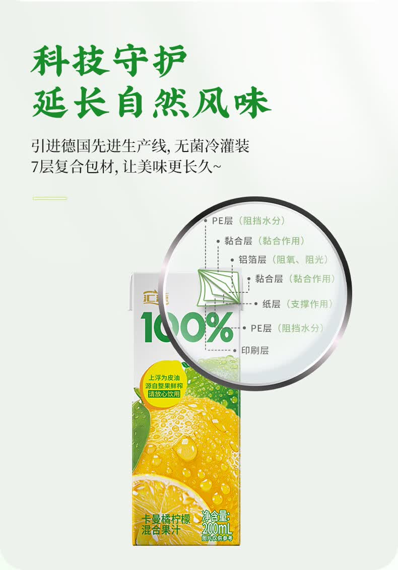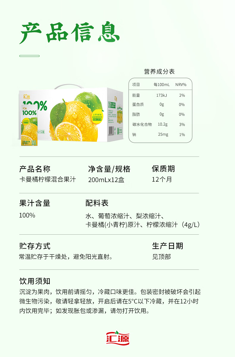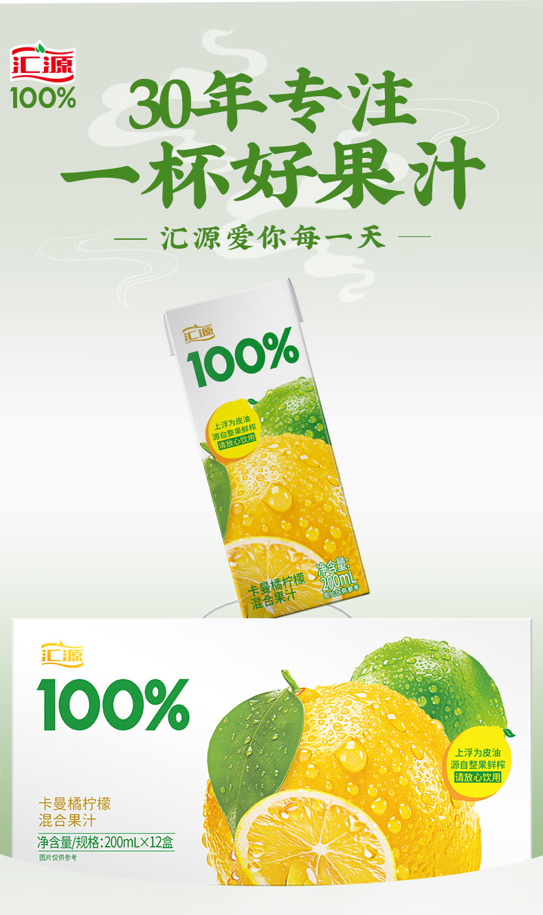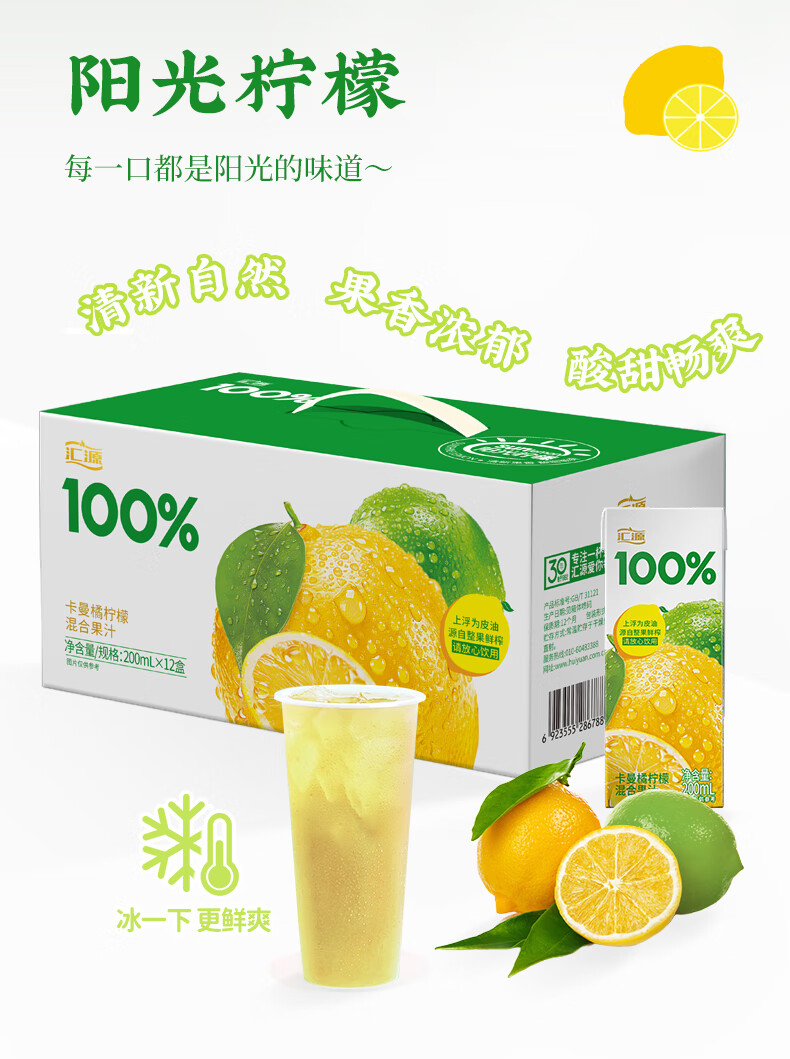 汇源100%阳光柠檬混合果汁礼盒装饮料200ml*12盒节日送礼宴请