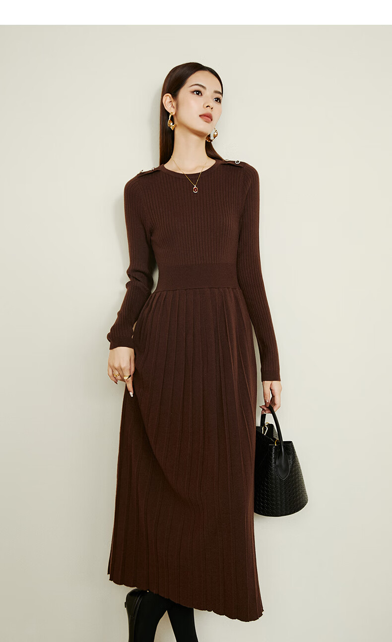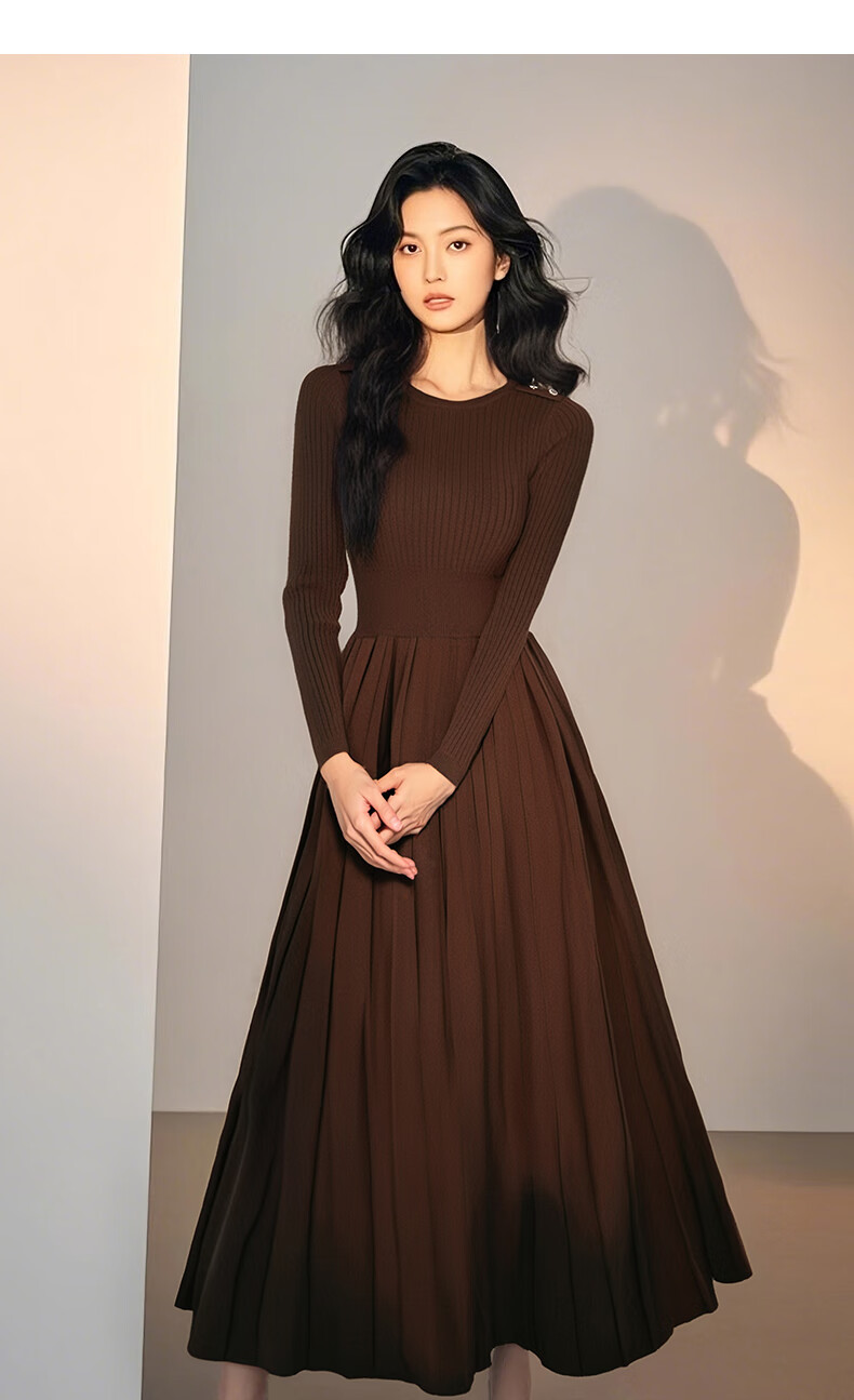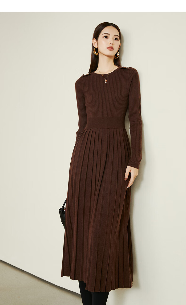晚白【断码清仓】2026春款修身裙子羊毛百搭气质针织打底连衣裙 深褐色 M